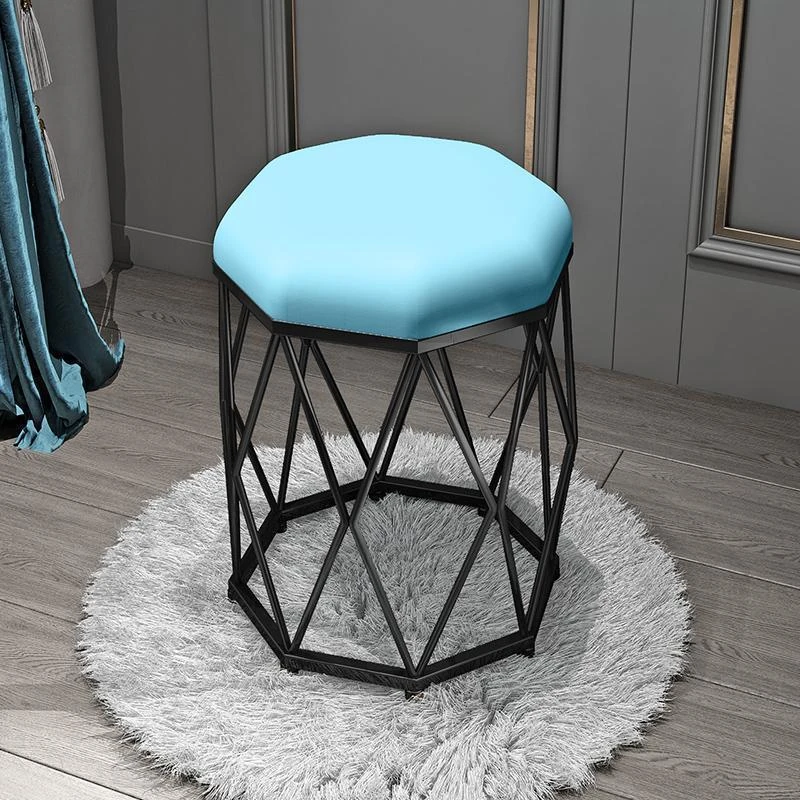 ライトブルーのフリース+黒の八角スツール