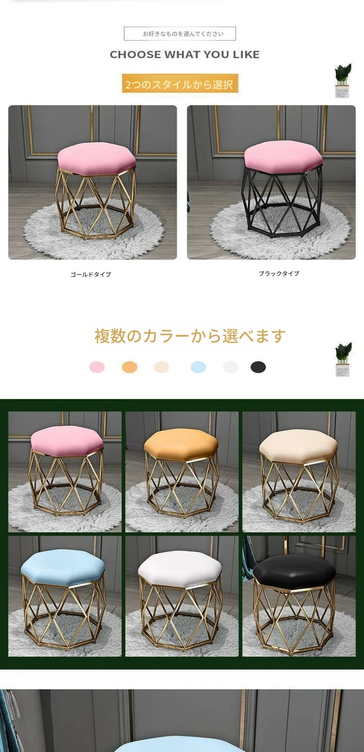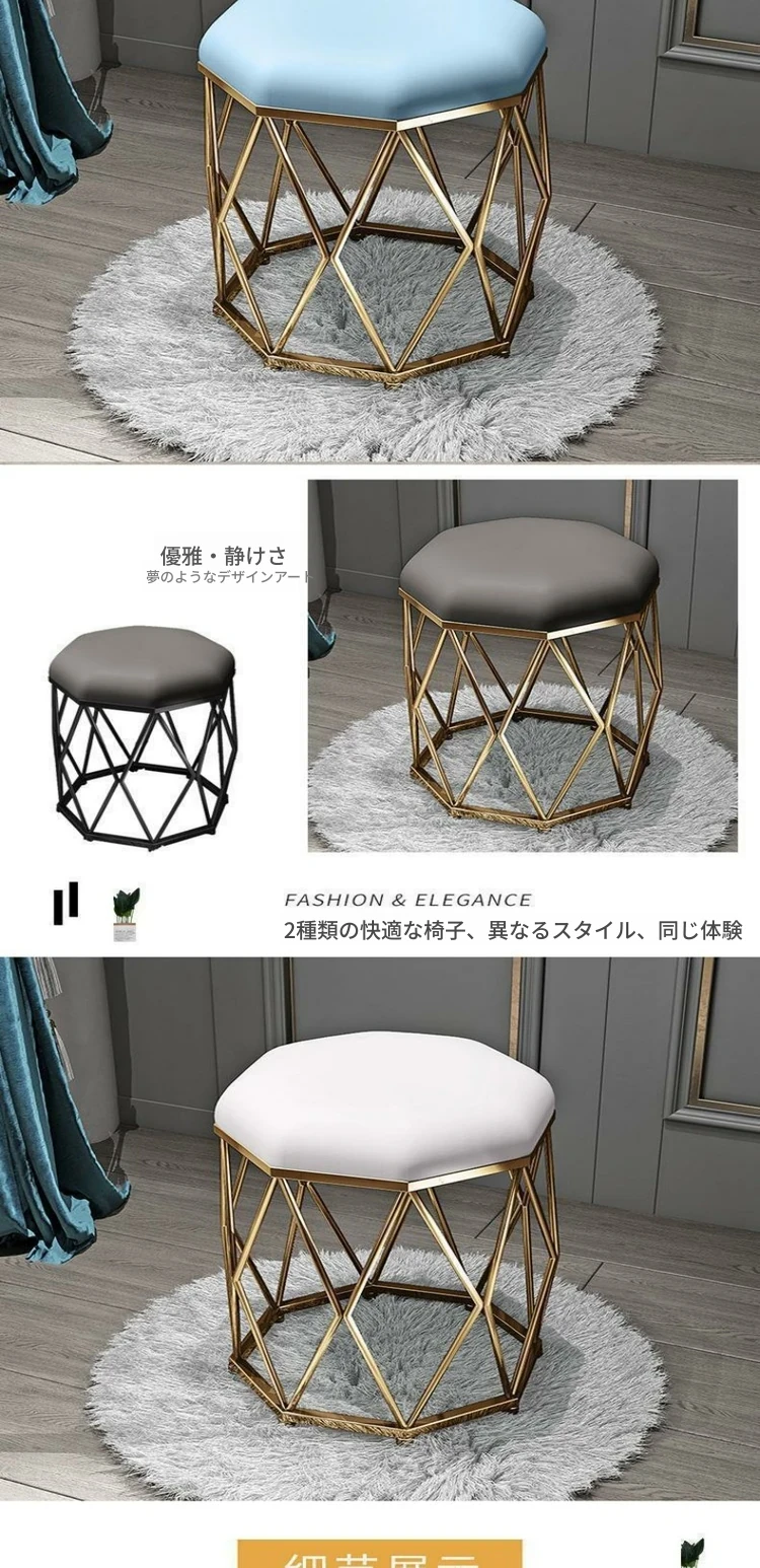 豪華金のフリース+金色の八角スツール