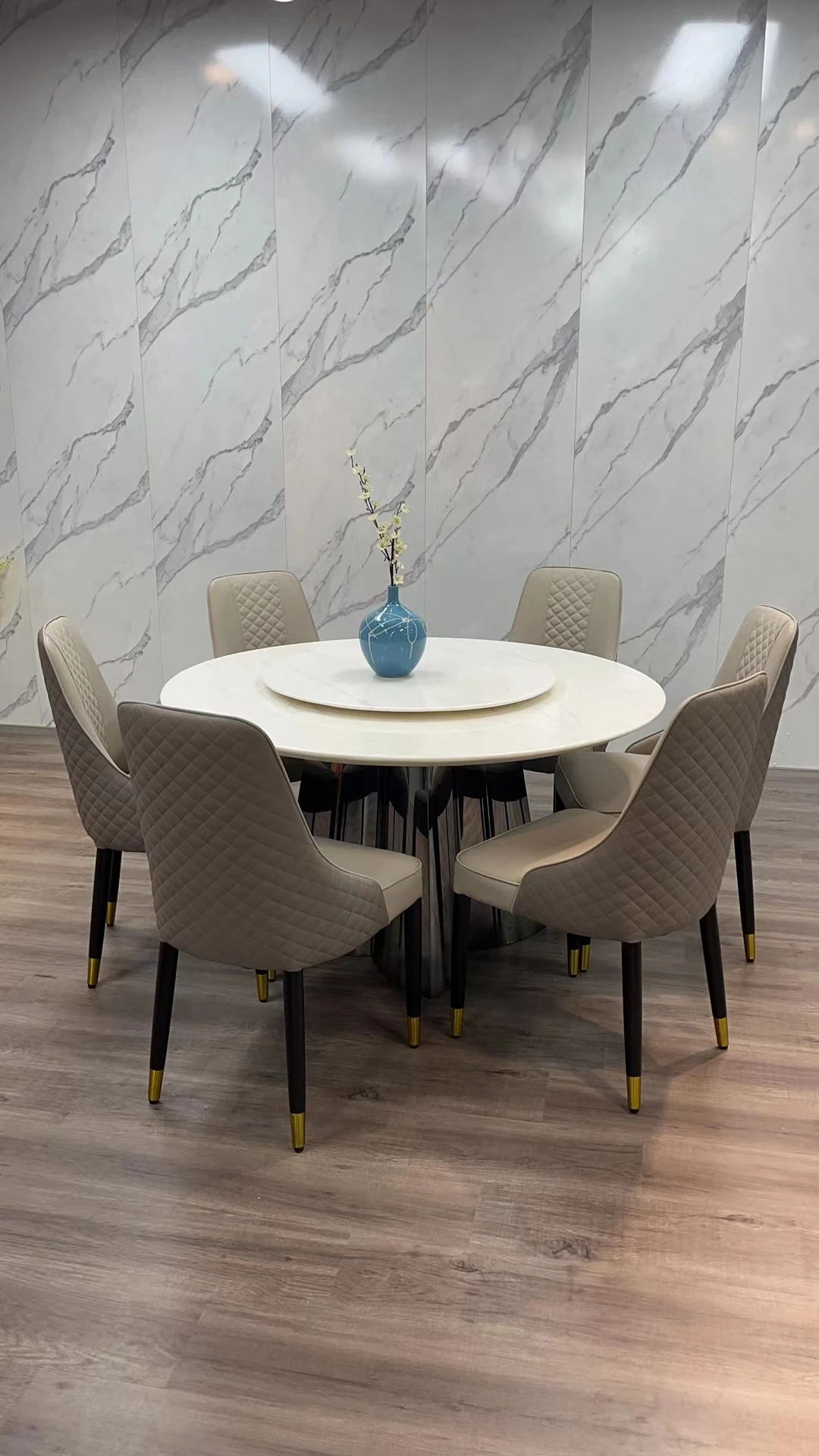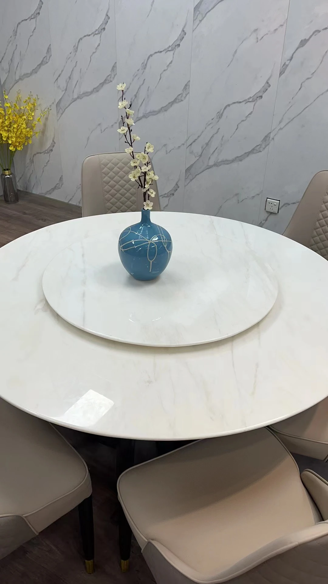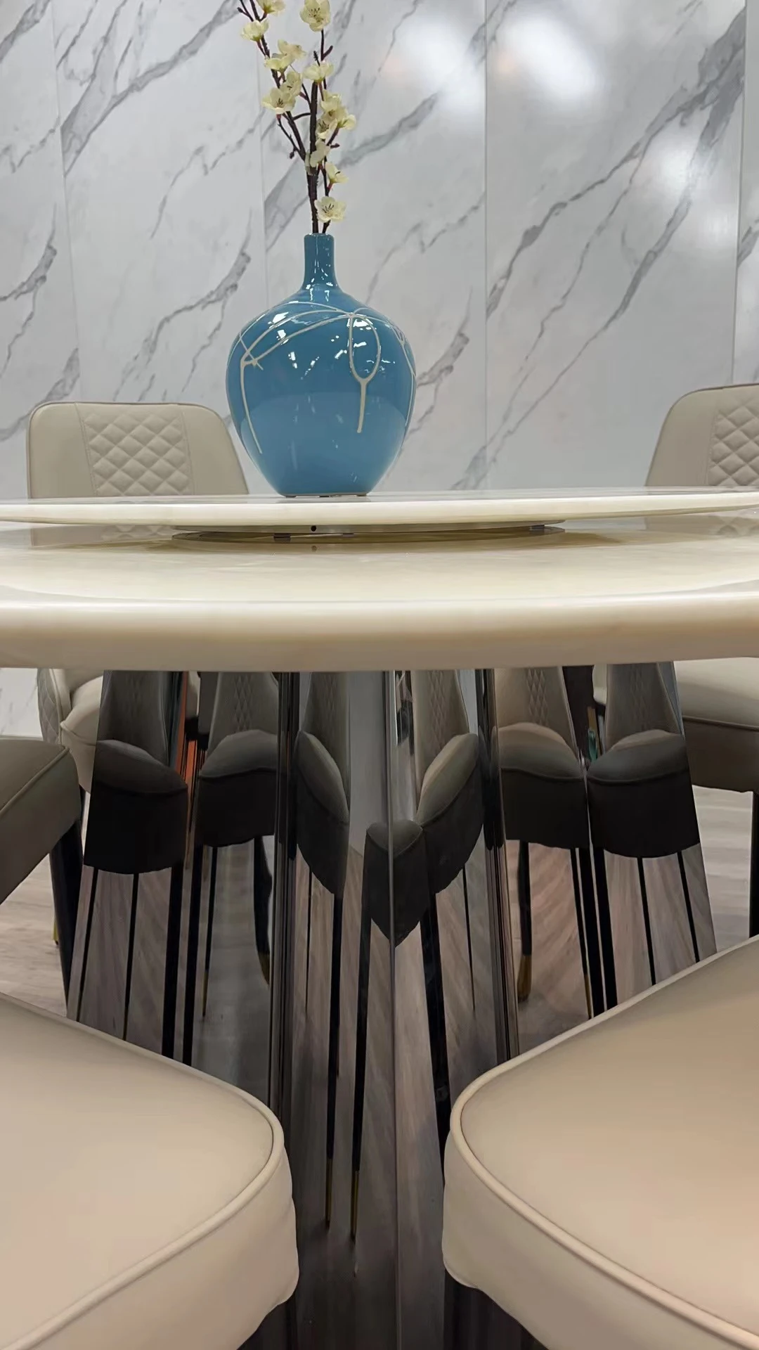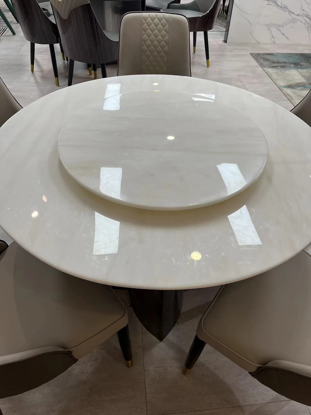 モダンミニマリスト カリビアンアイスジェード 丸型ダイニングテーブルセット 回転式 大理石仕上げ 家庭用 大きな円形テーブルで食事を楽しむ!