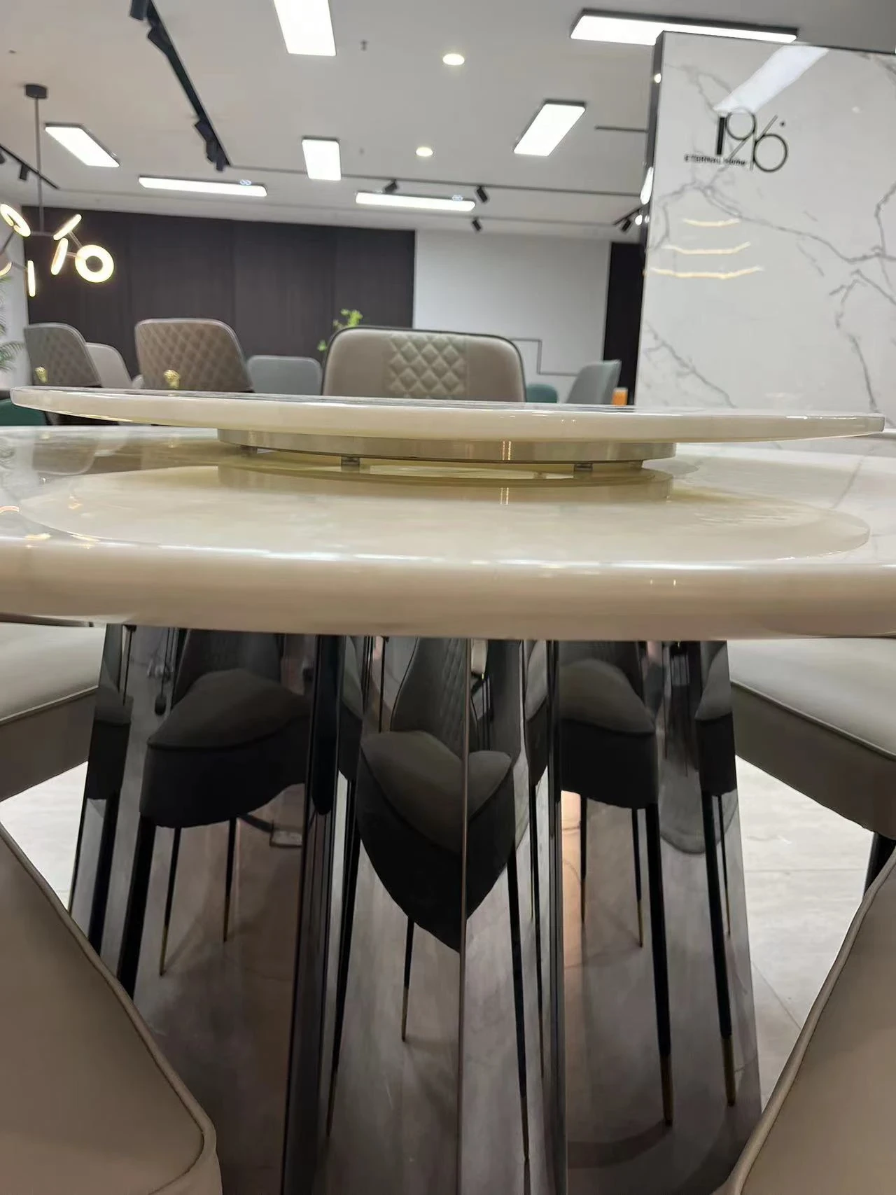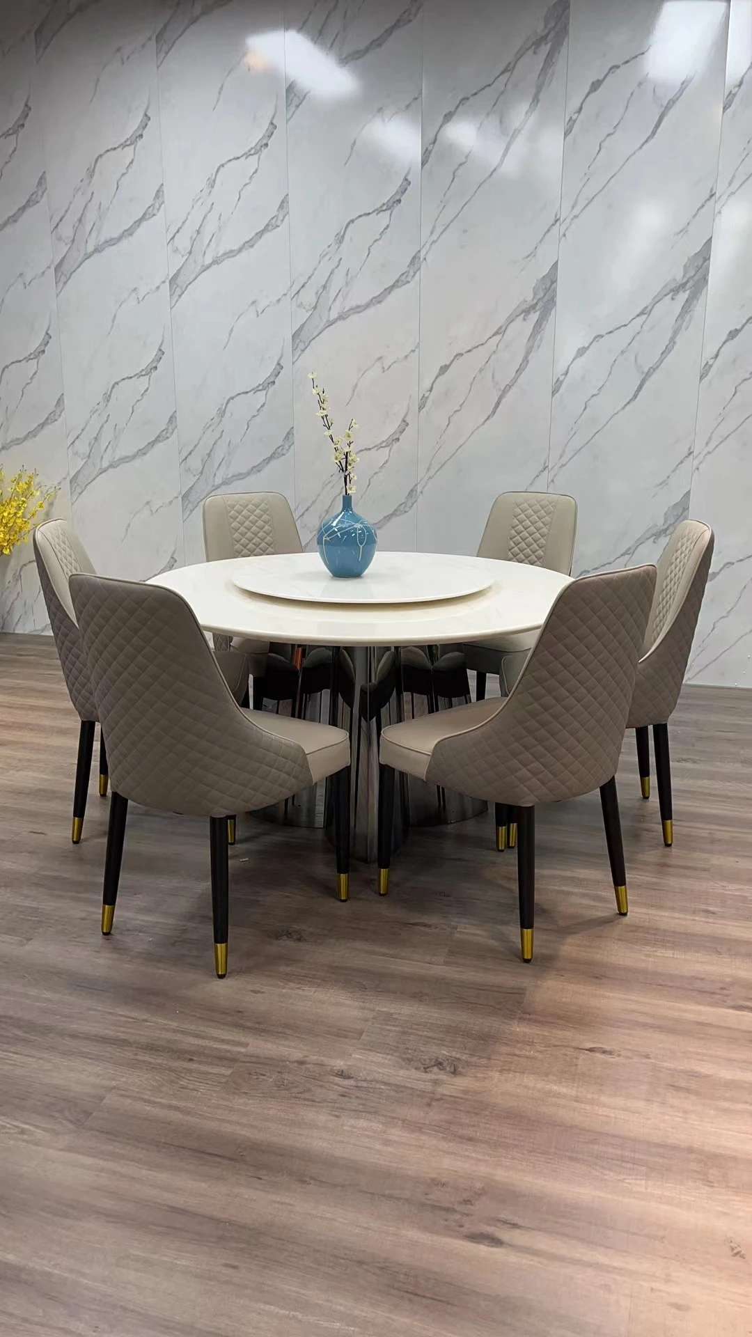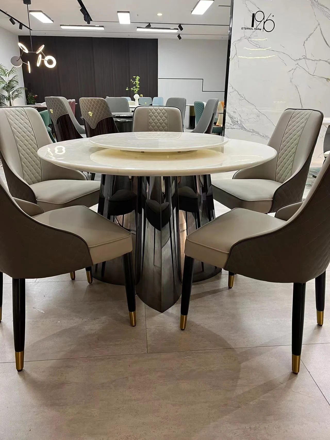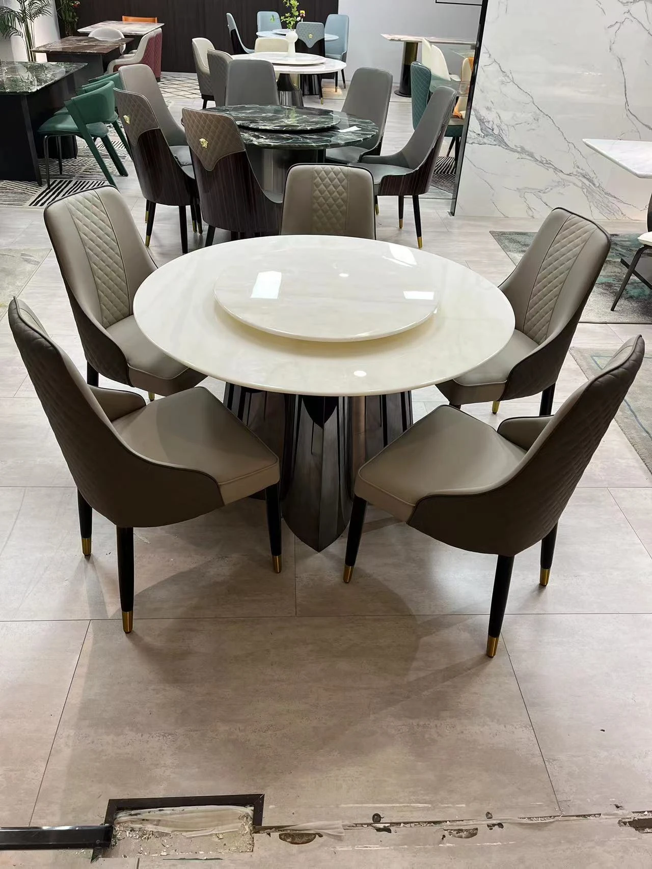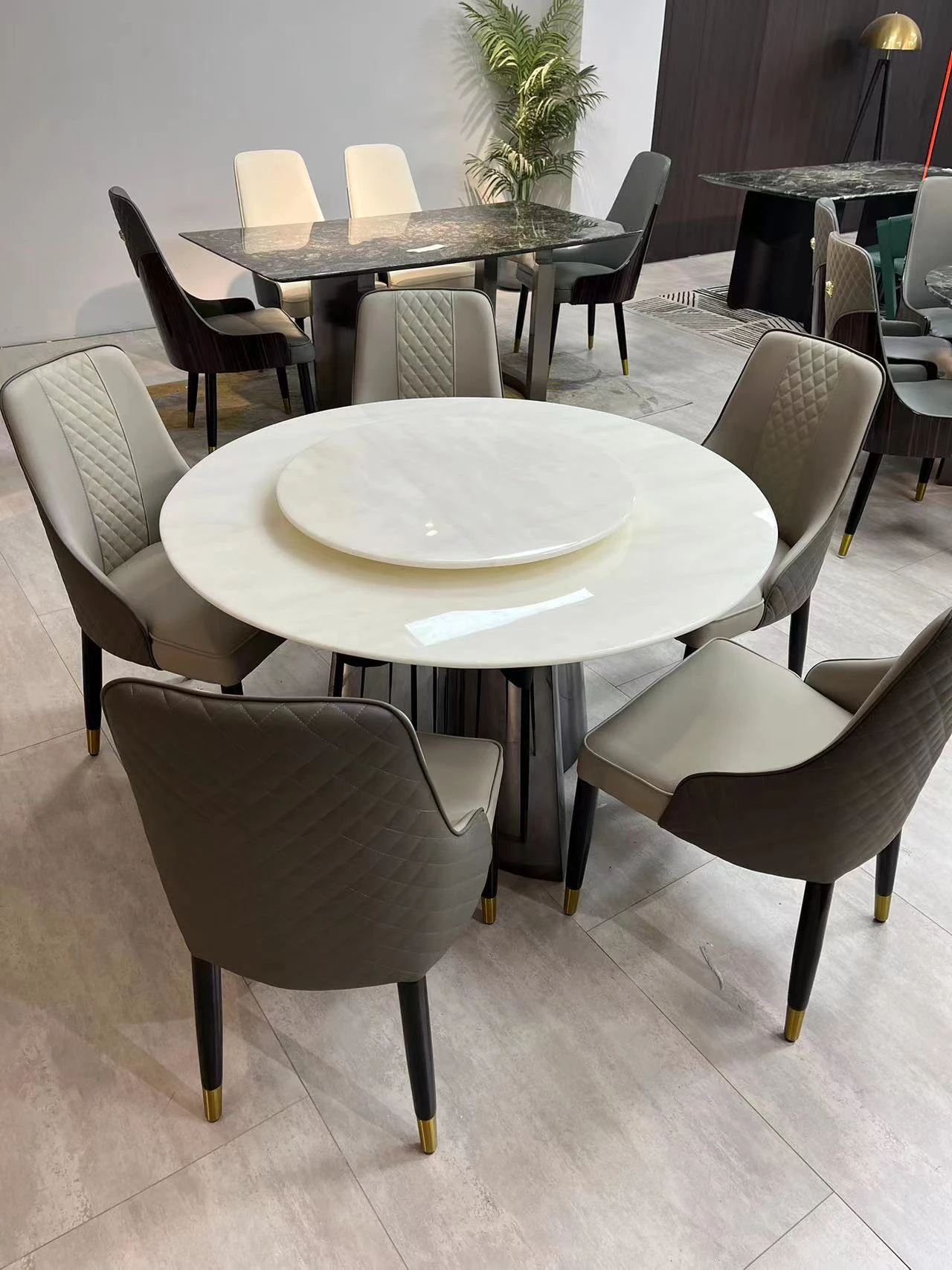 モダンミニマリスト カリビアンアイスジェード 丸型ダイニングテーブルセット 回転式 大理石仕上げ 家庭用 大きな円形テーブルで食事を楽しむ!