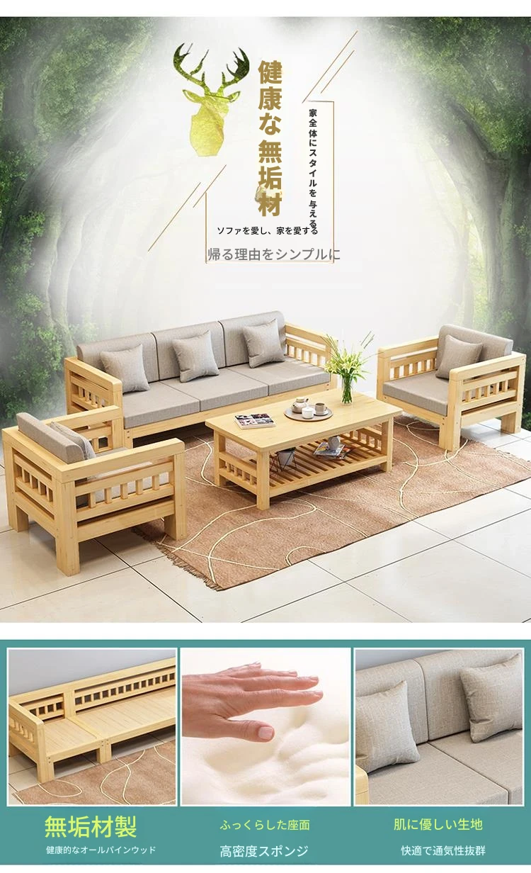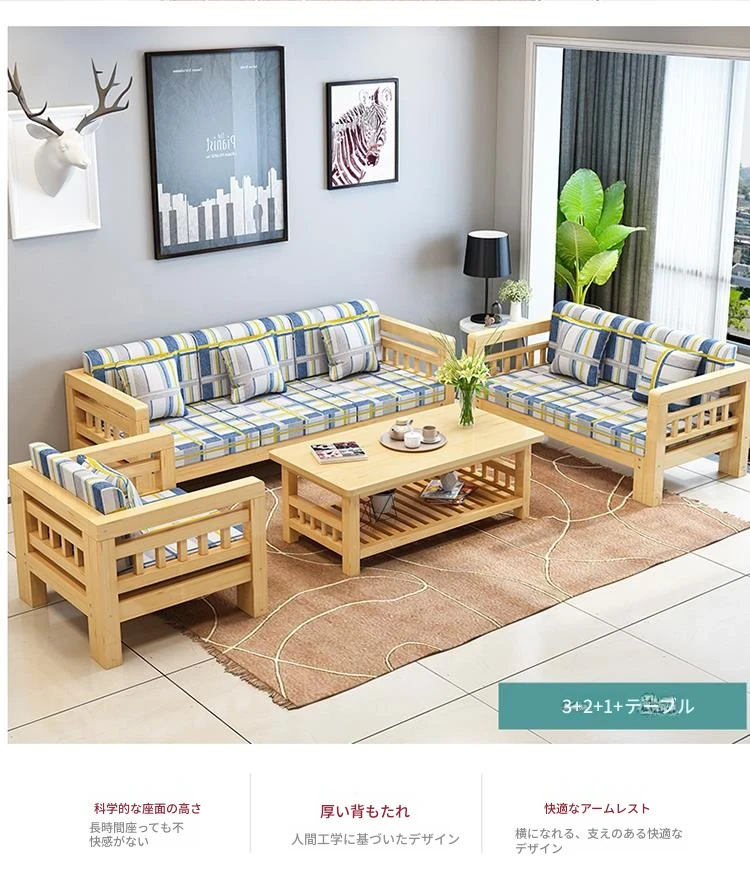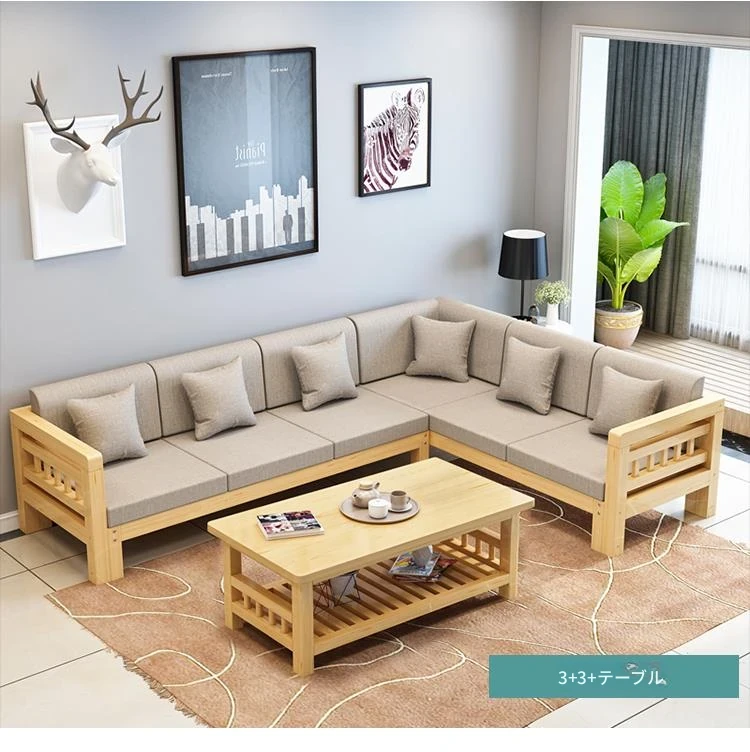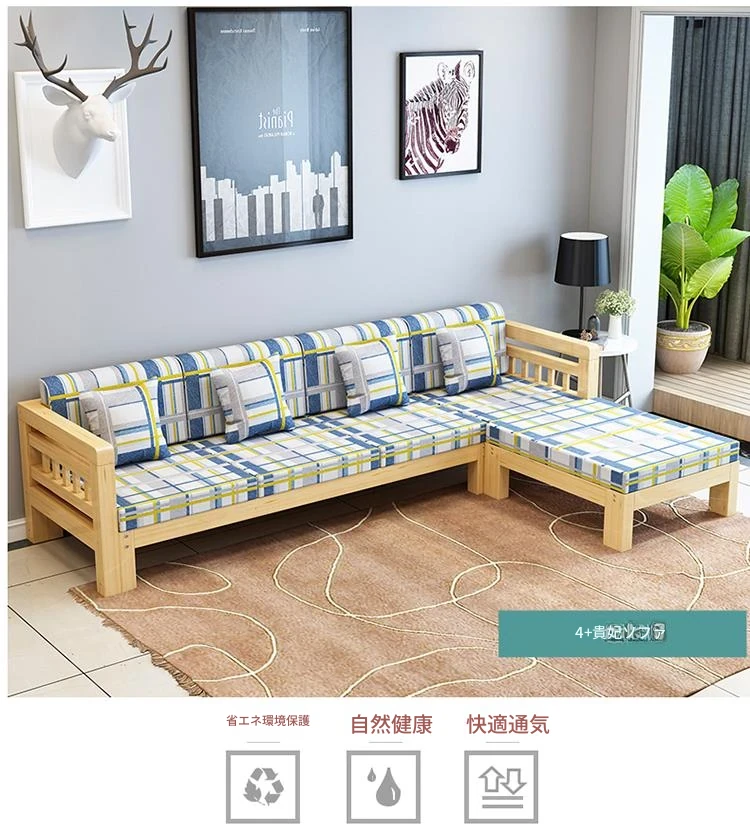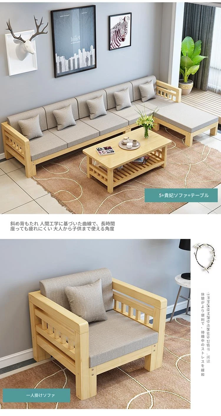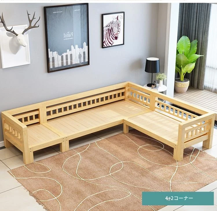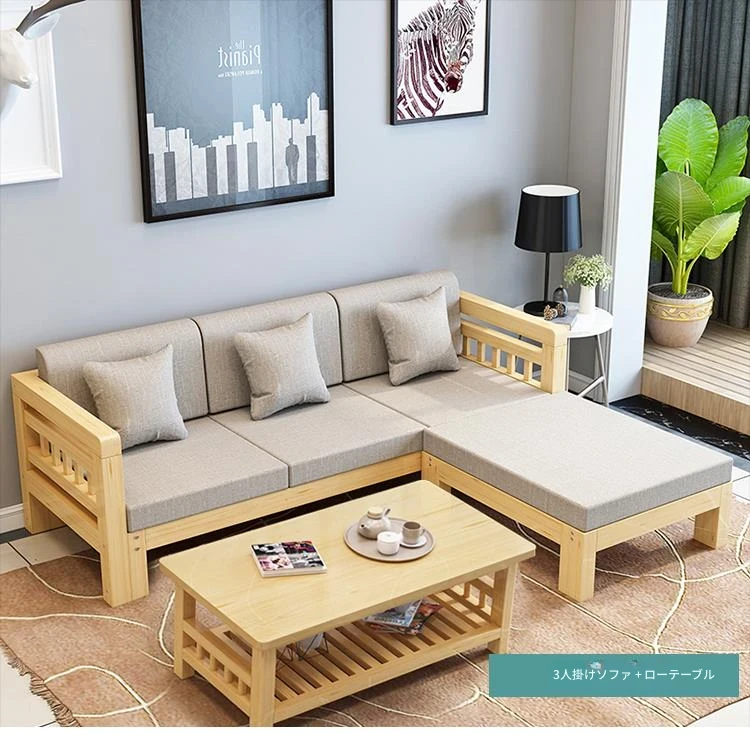 現代的シンプルな全木製ソファセット、小型リビングに最適なL字型コーナーソファ。松の木を使用した中華スタイルの3人掛け。快適さとスタイルを兼ね備えた理想のインテリア!