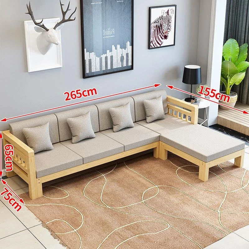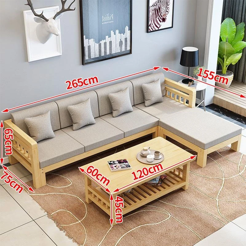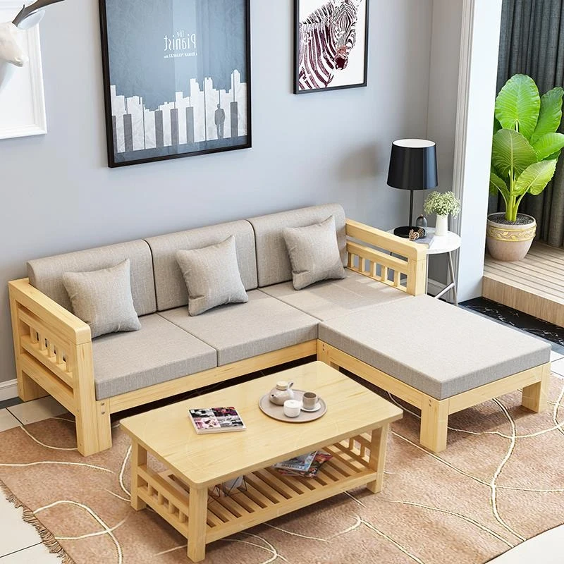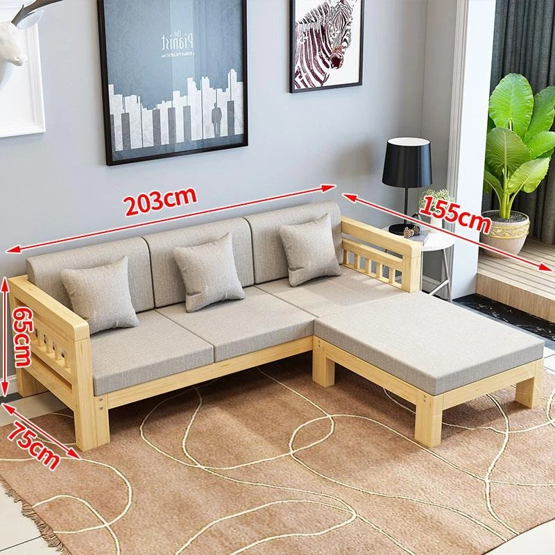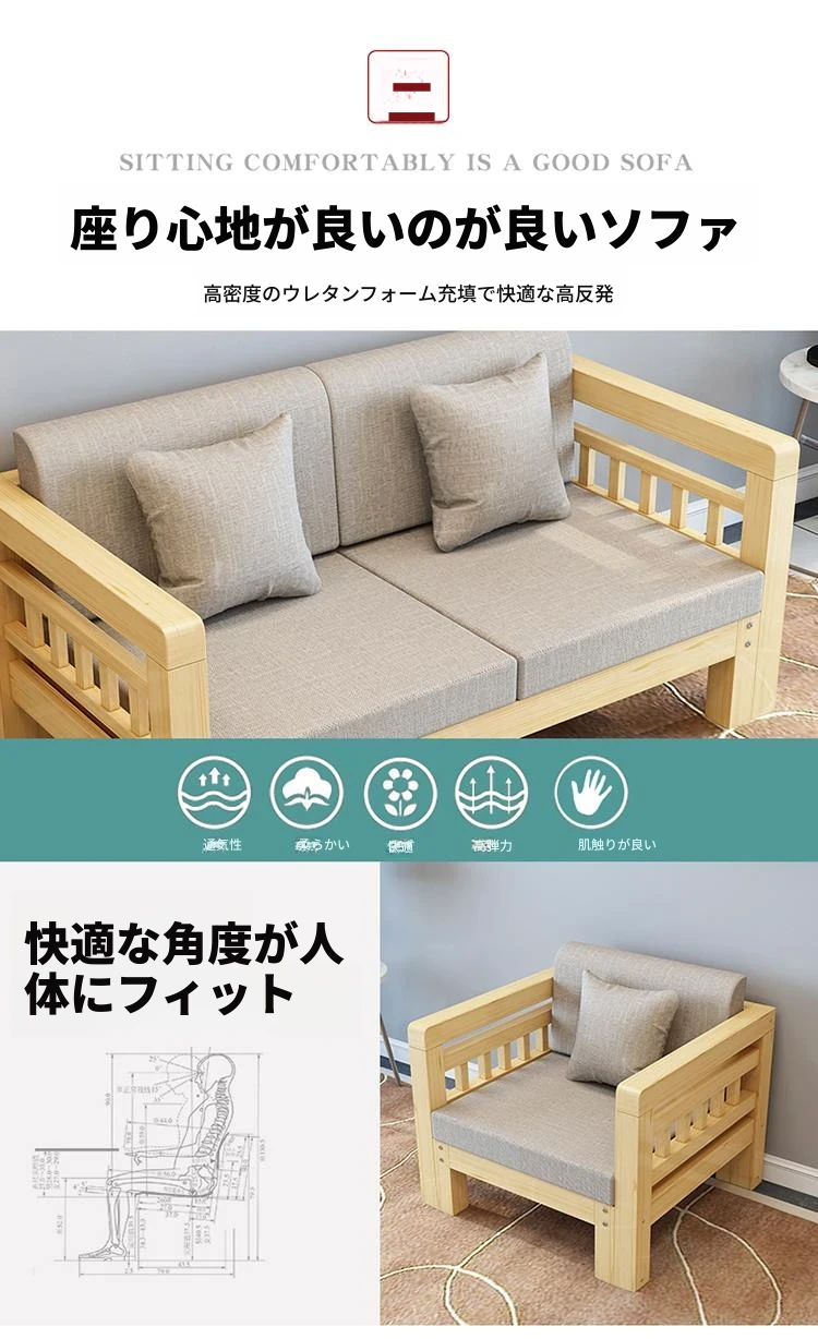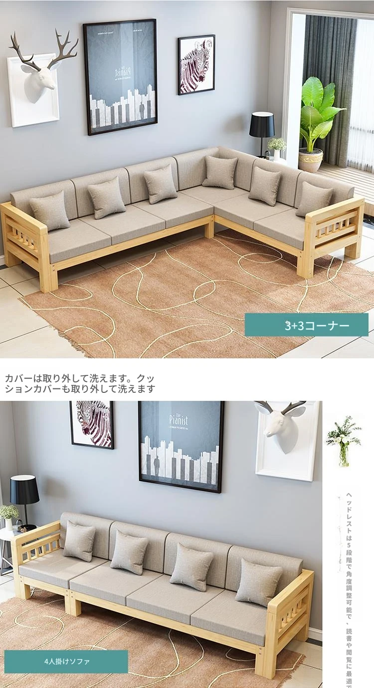 現代的シンプルな全木製ソファセット、小型リビングに最適なL字型コーナーソファ。松の木を使用した中華スタイルの3人掛け。快適さとスタイルを兼ね備えた理想のインテリア!