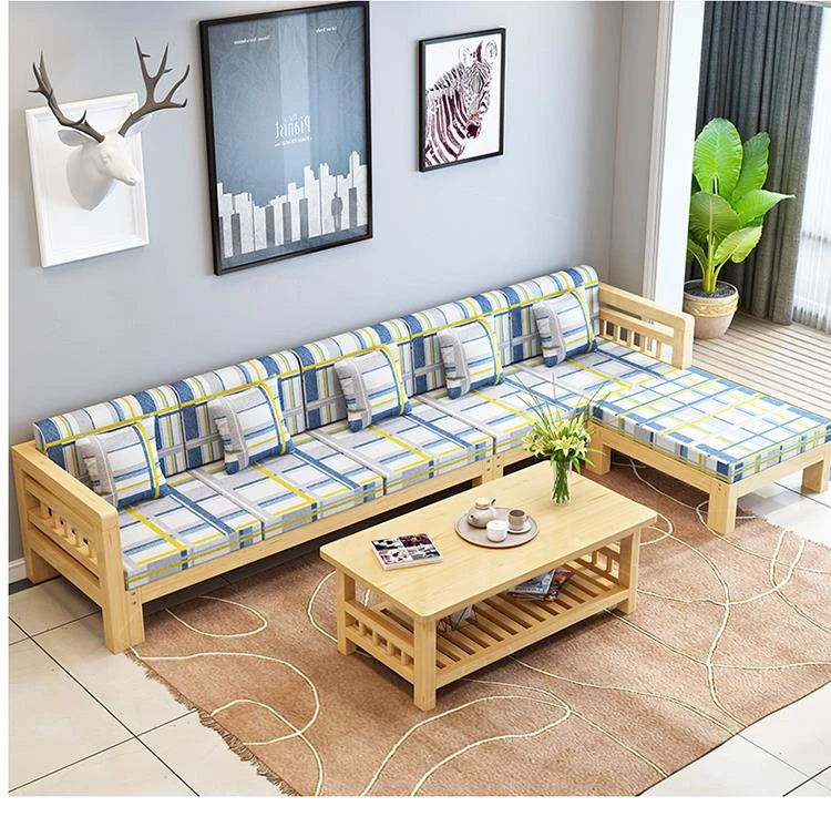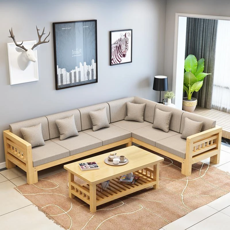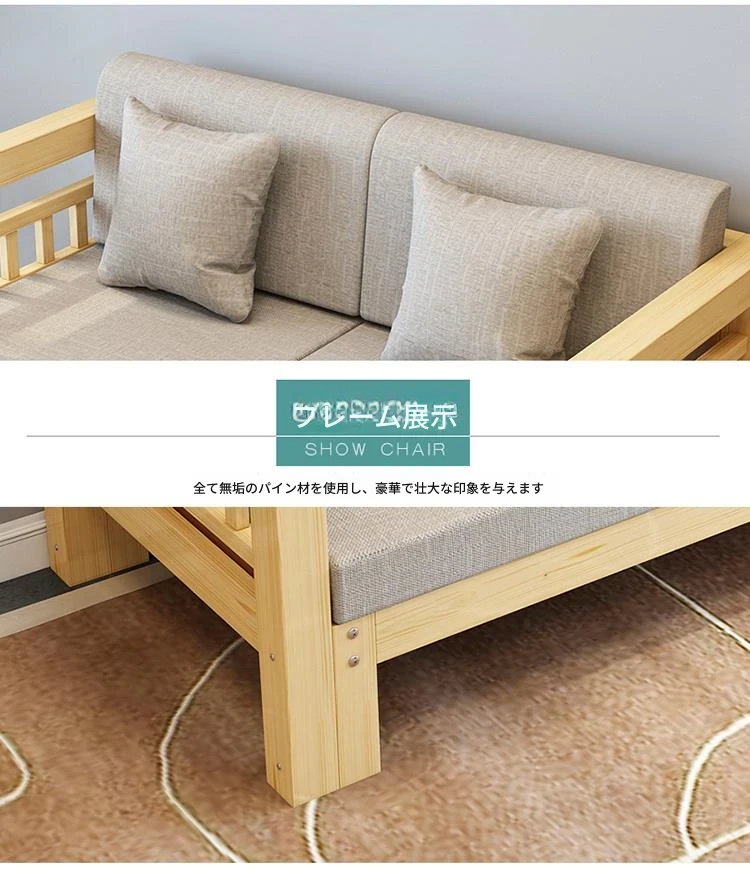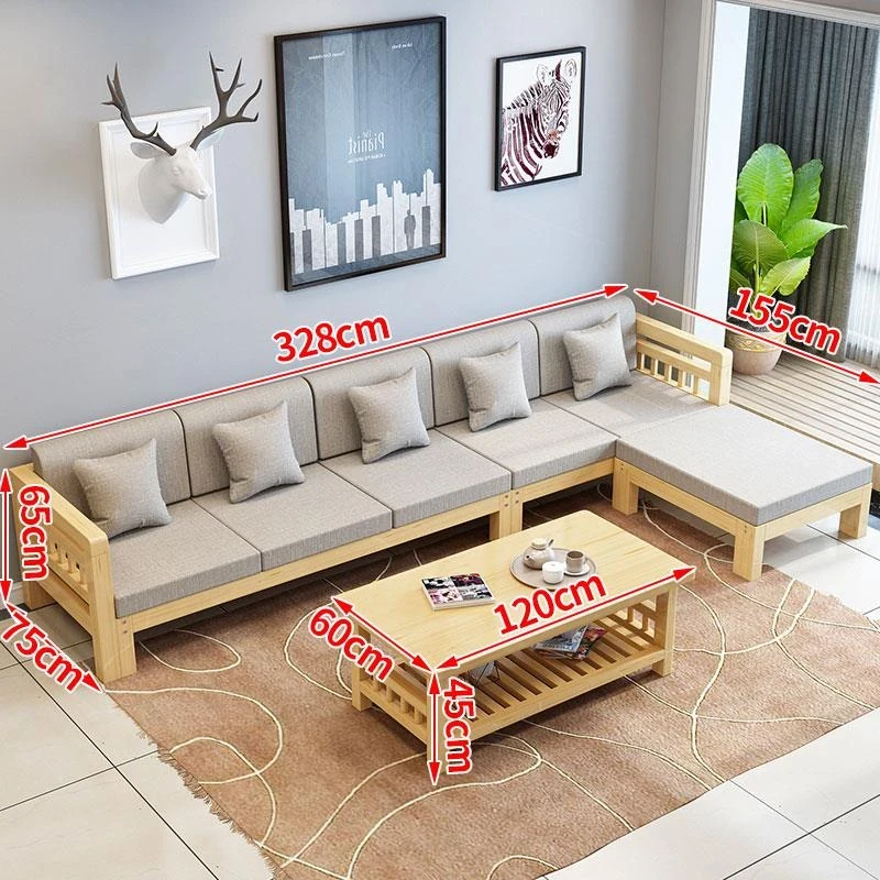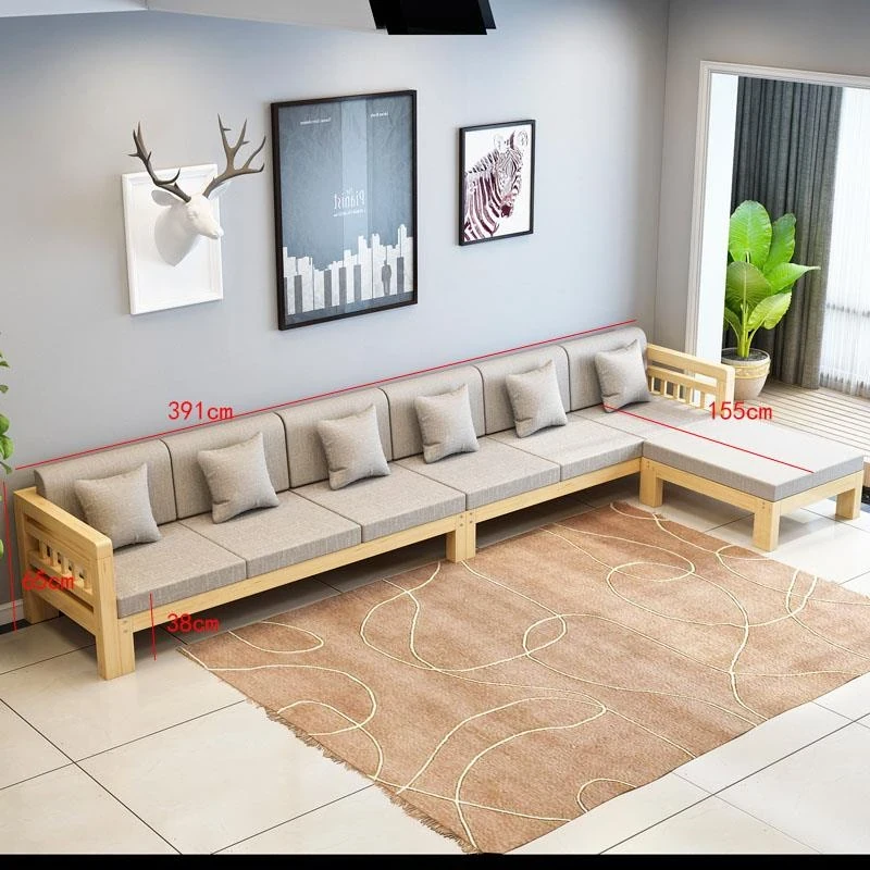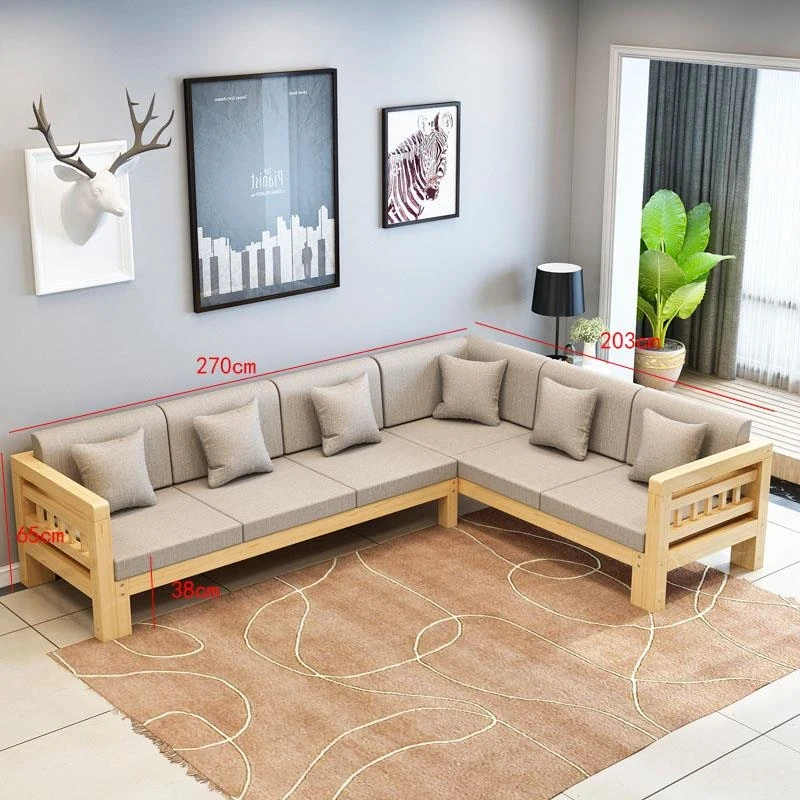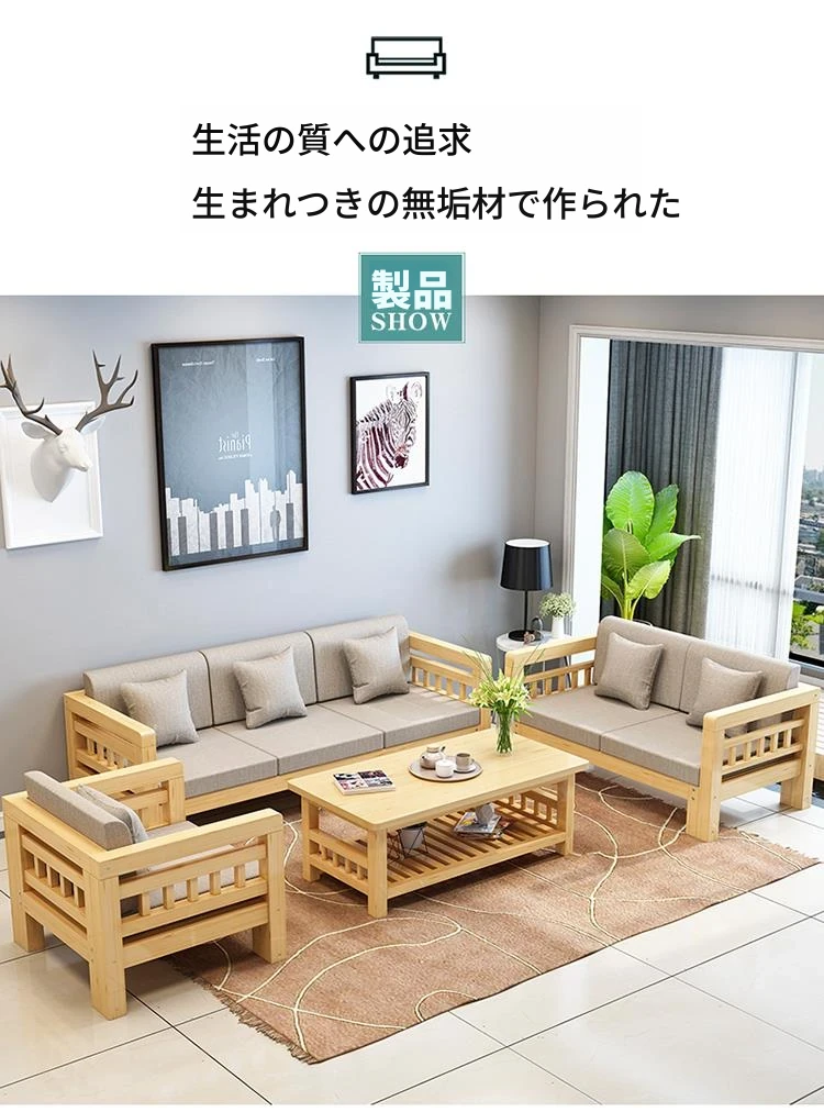 現代的シンプルな全木製ソファセット、小型リビングに最適なL字型コーナーソファ。松の木を使用した中華スタイルの3人掛け。快適さとスタイルを兼ね備えた理想のインテリア!