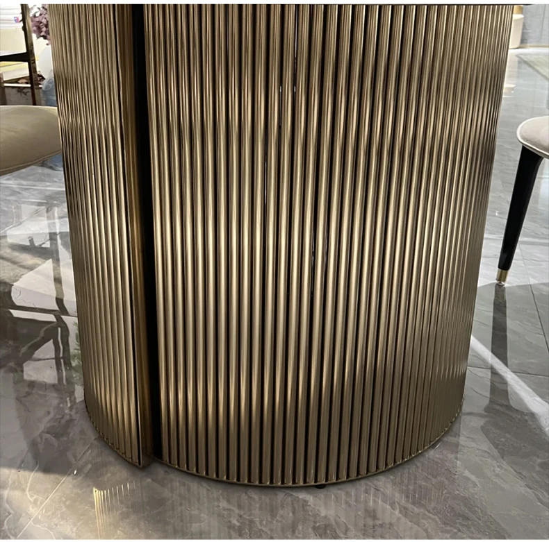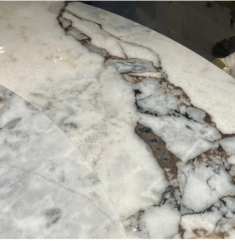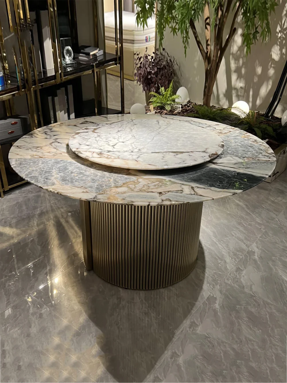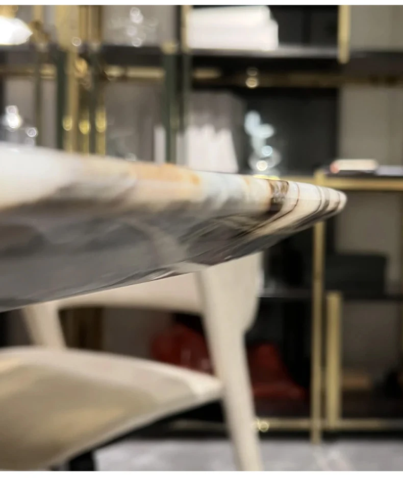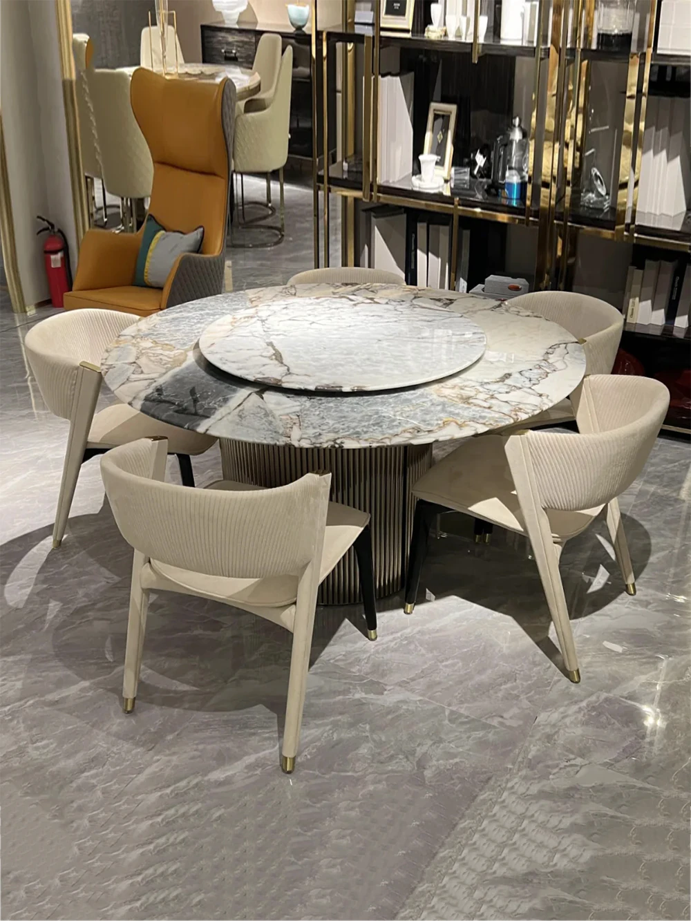 天然のエレファントホワイト大理石ダイニングテーブル - 高級感あふれるデザイナーズヴィラ向け、上質な家用円形テーブルで特別な食卓を演出。