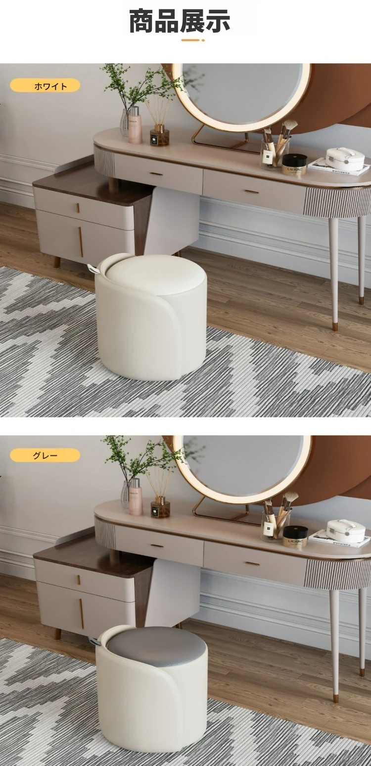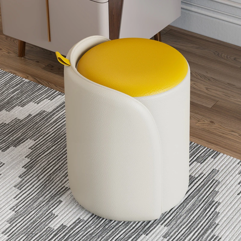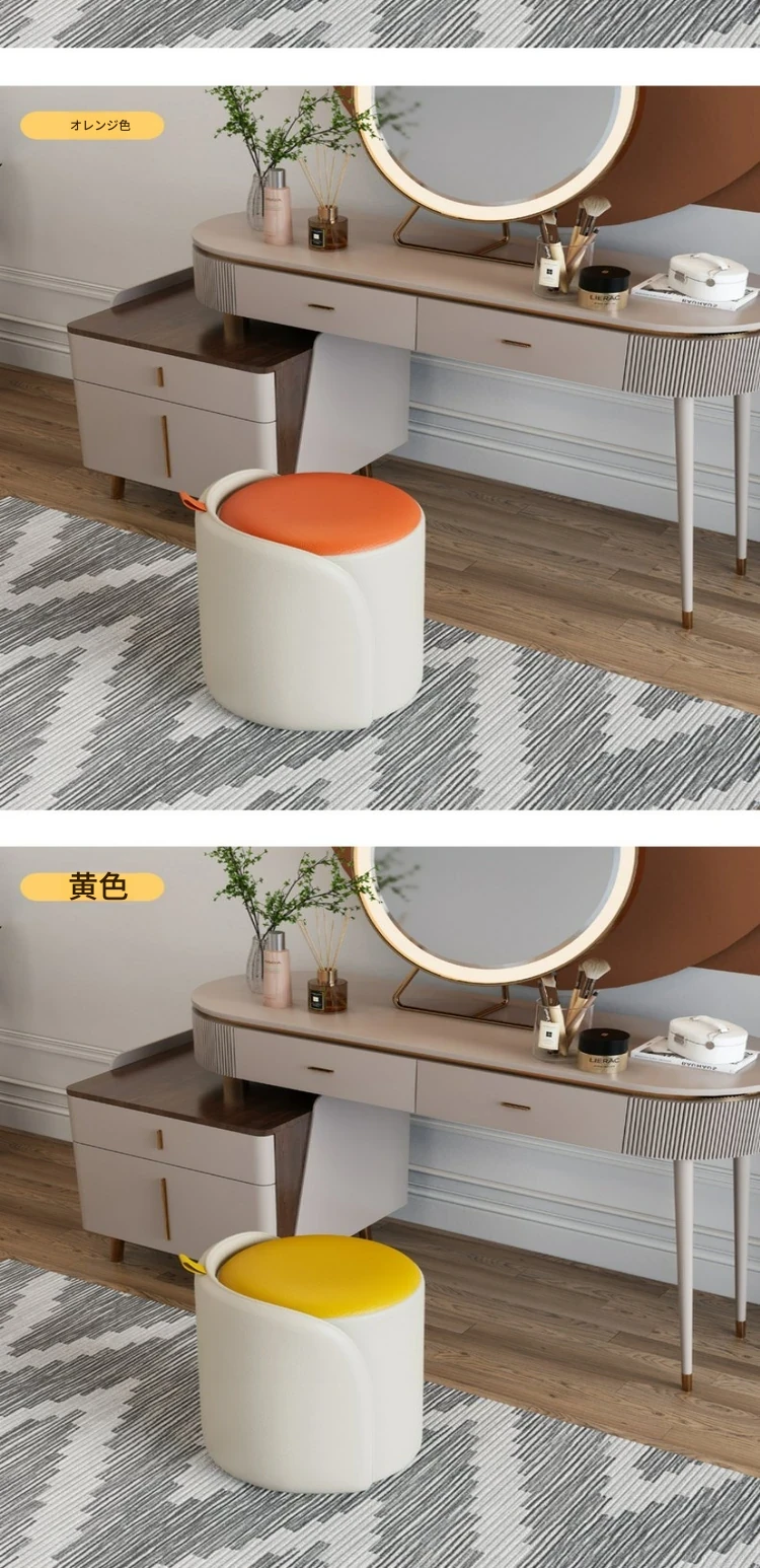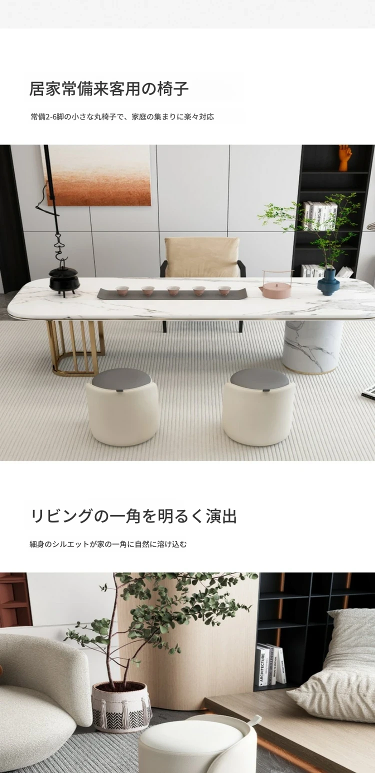 新作!軽やかでスタイリッシュな家用スツール - おしゃれな化粧椅子としても使えるミニマルデザインのラウンドレザー椅子。寝室やリビングのコーヒーテーブルの脇にぴったり!快適さとエレガンスを両立させた一品。