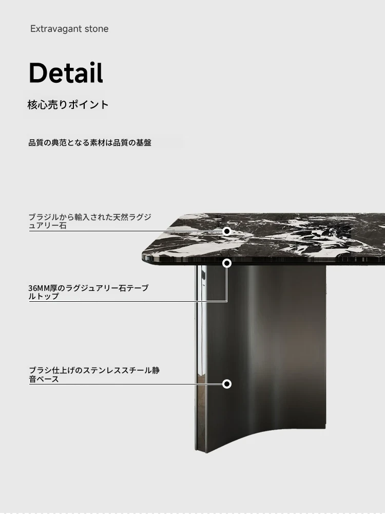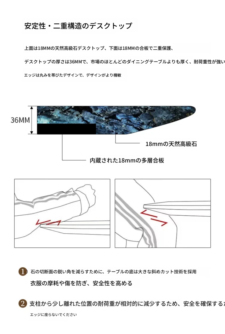 天然奢石宝格丽黒【単一ダイニングテーブル】36mm厚