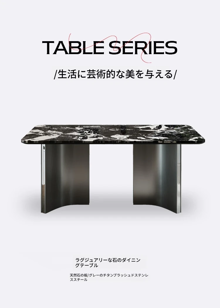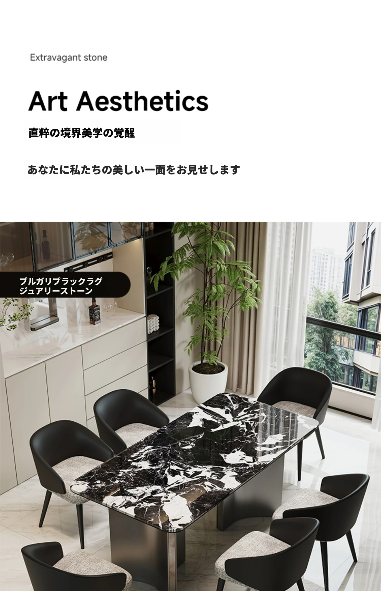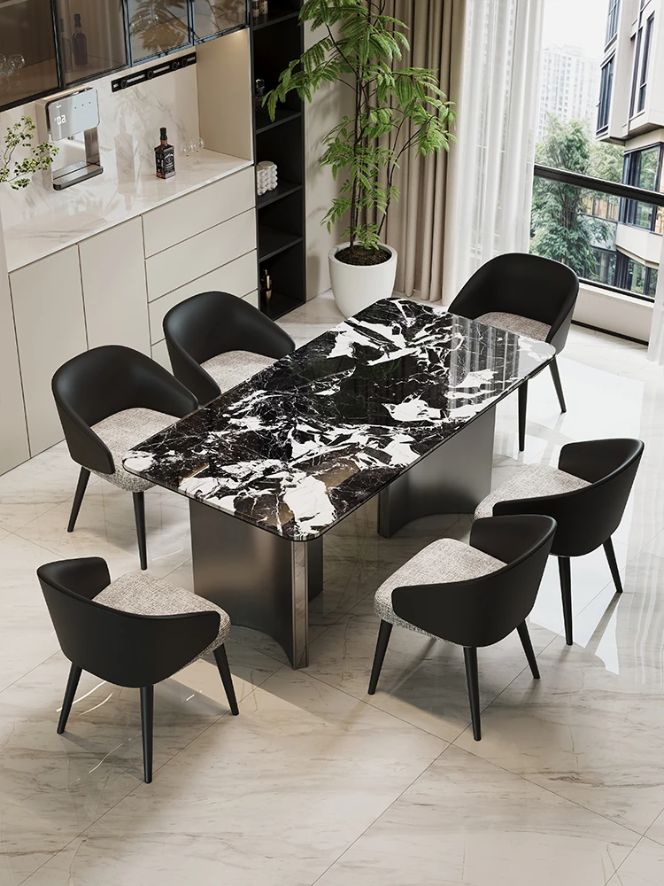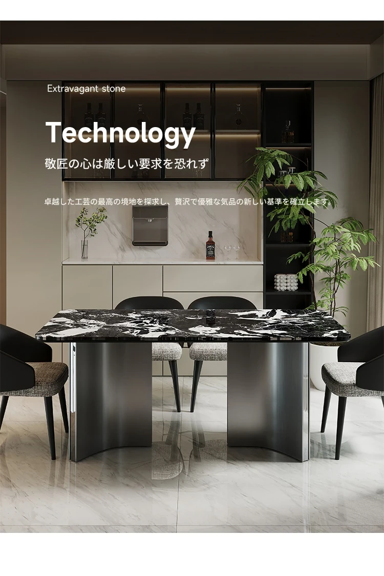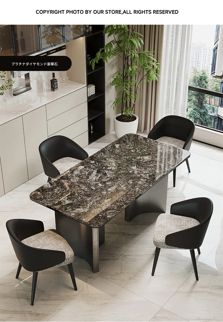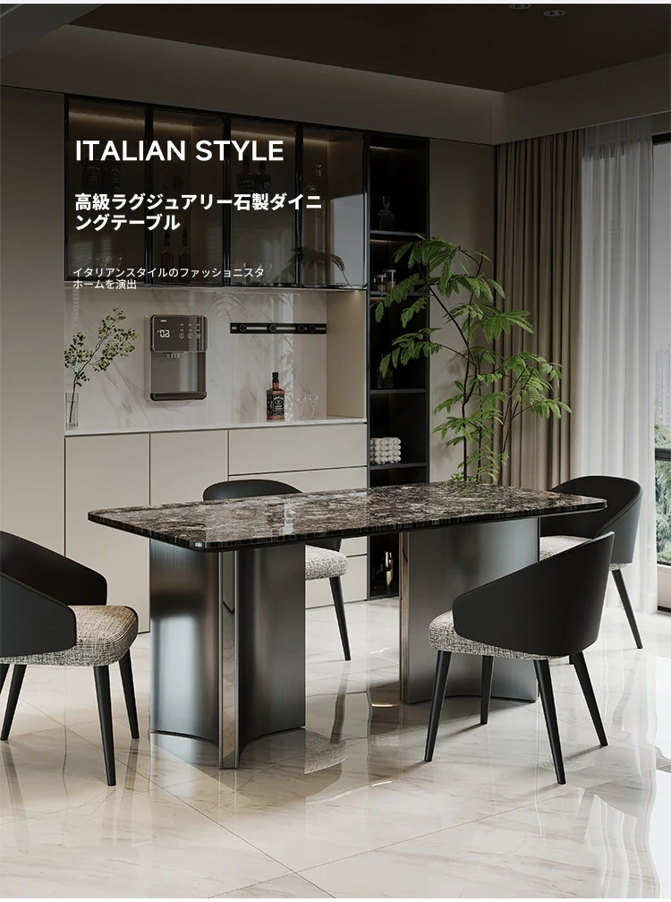 新作!ブラック・バルガリの長方形ダイニングテーブル - イタリアンラグジュアリー大理石使用、モダンな高級別荘スタイルの食卓!おしゃれで洗練された空間を演出します。