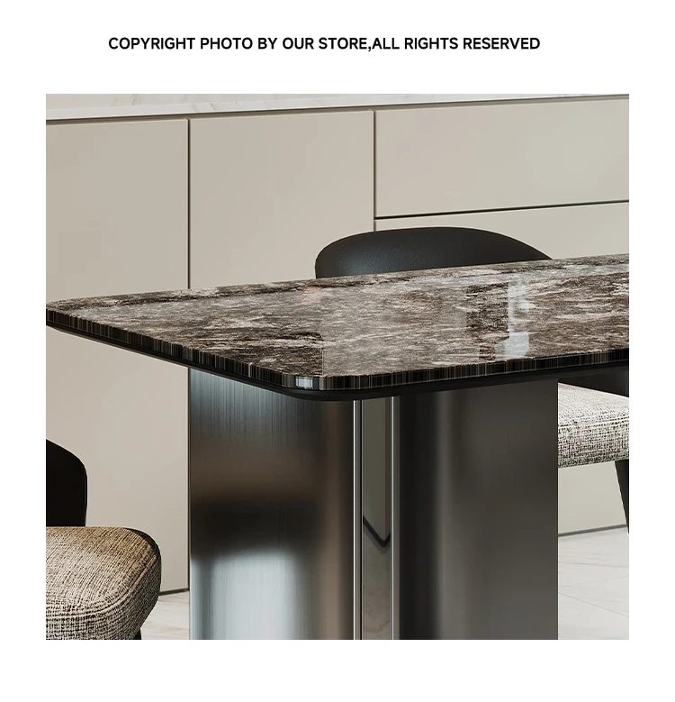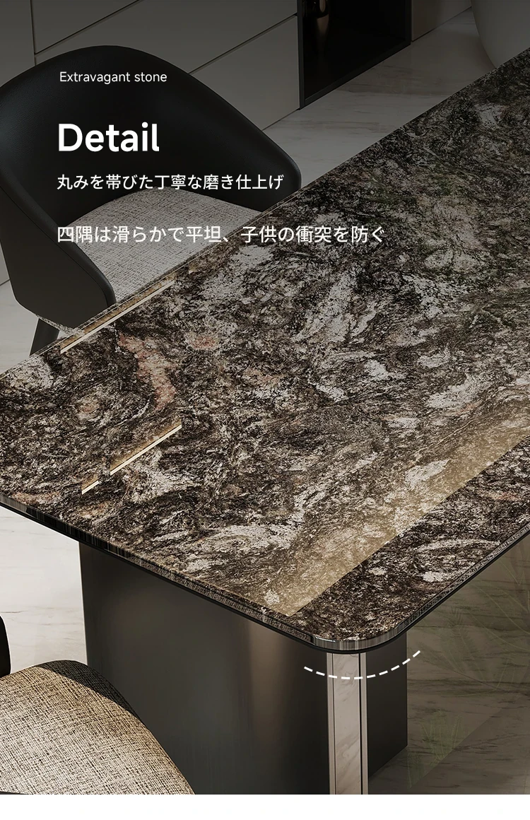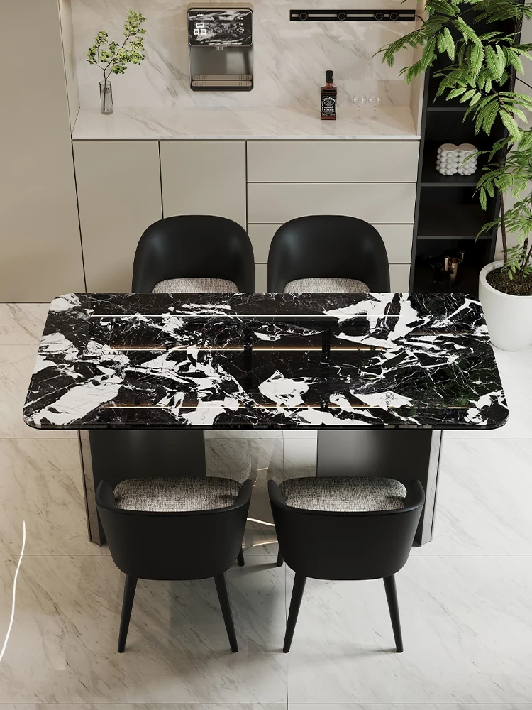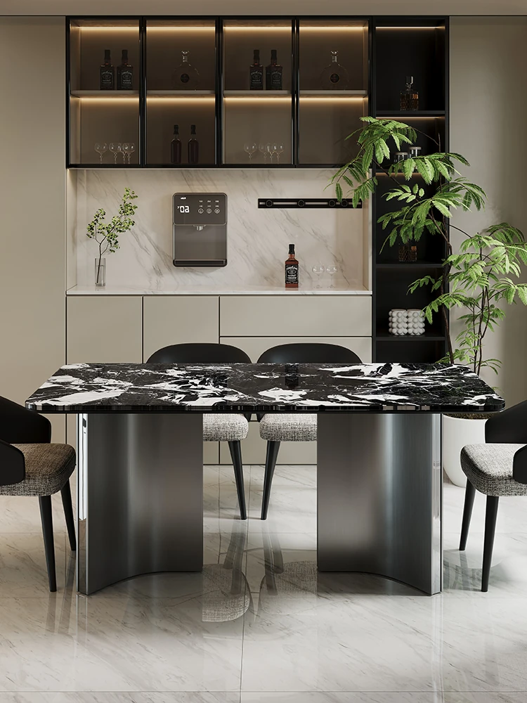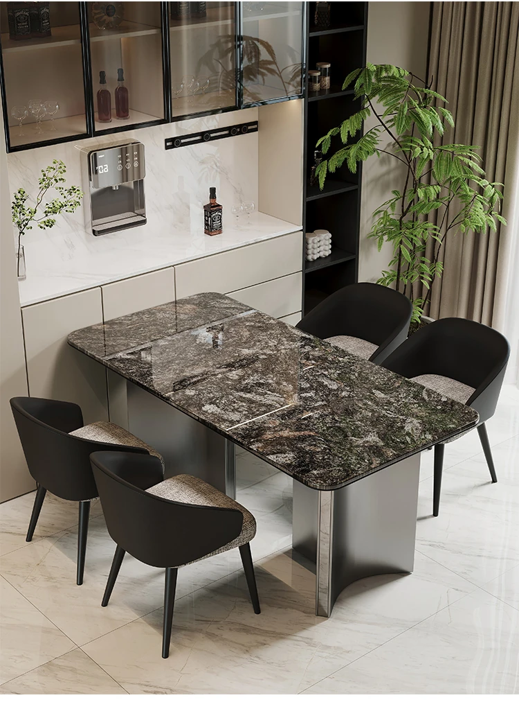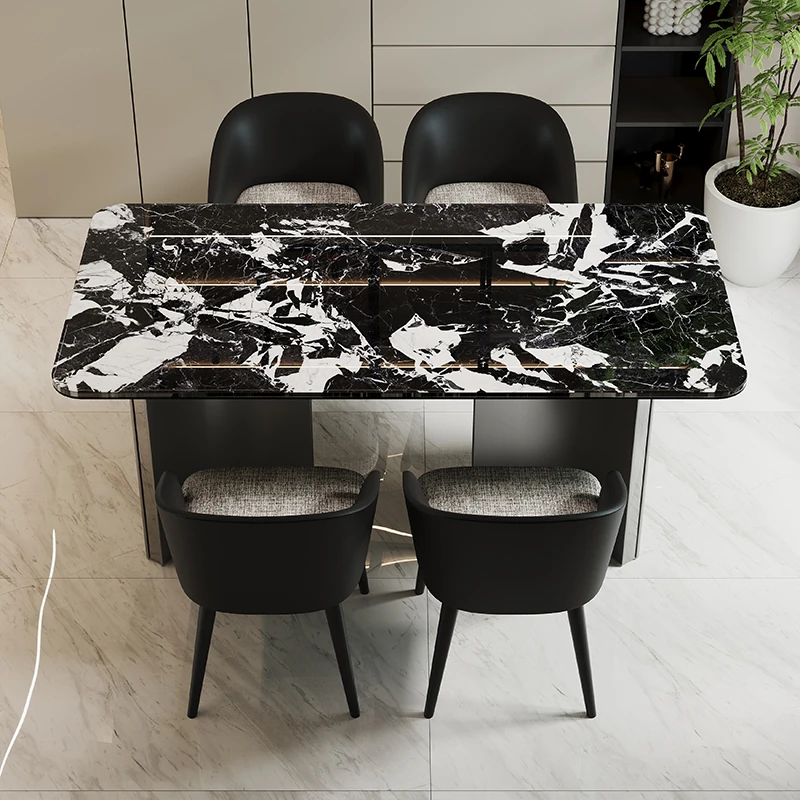 新作!ブラック・バルガリの長方形ダイニングテーブル - イタリアンラグジュアリー大理石使用、モダンな高級別荘スタイルの食卓!おしゃれで洗練された空間を演出します。