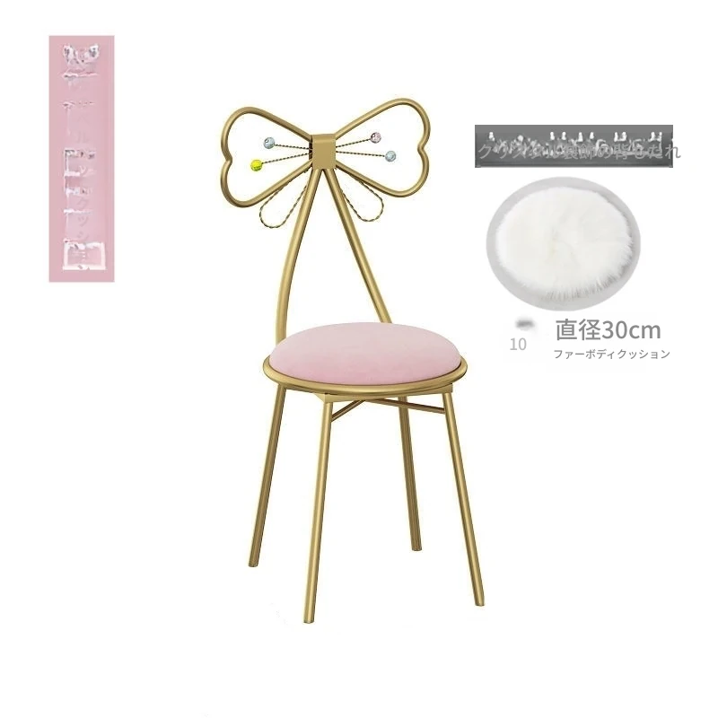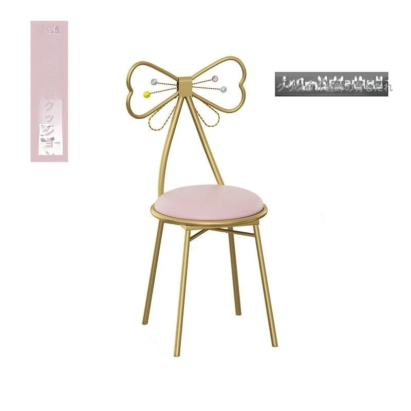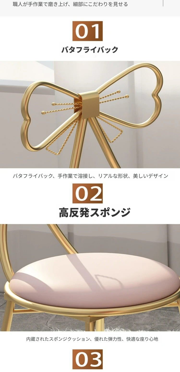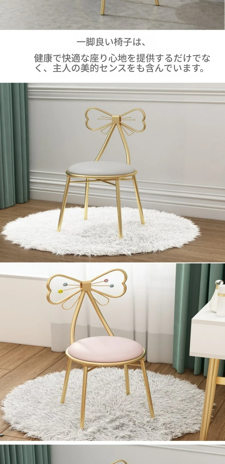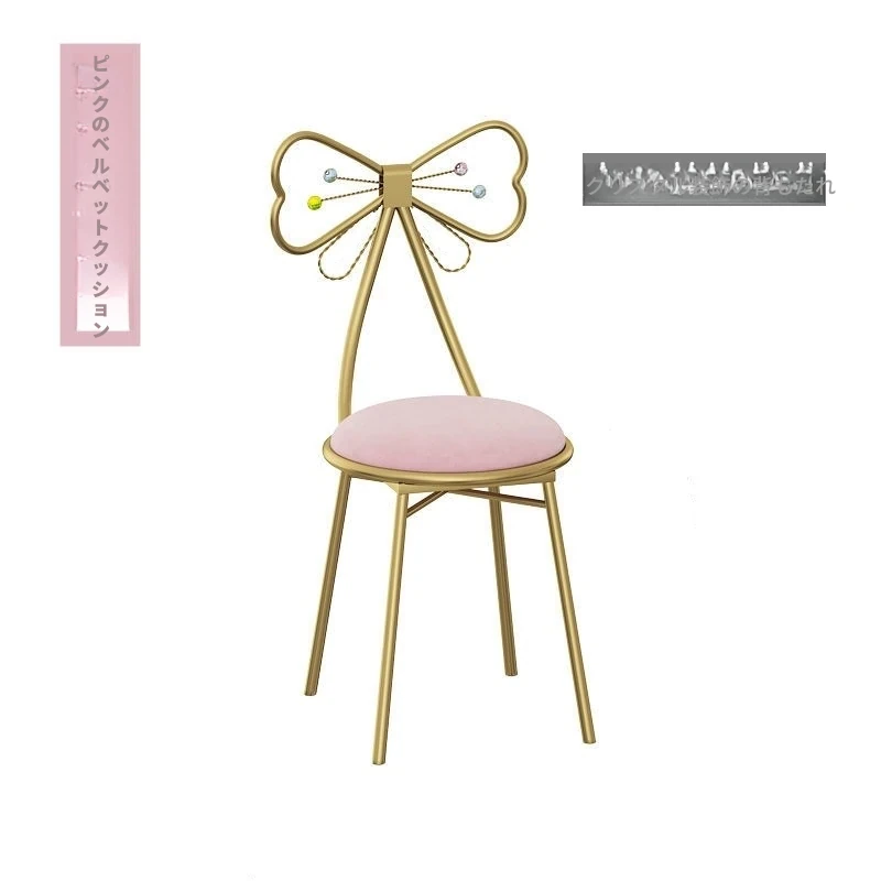 新作!少女心満点の小型寝室用プリンセスバタフライメイクアップチェア - 人気の脱着式背もたれ付き、美しさを引き立てるアイテム!