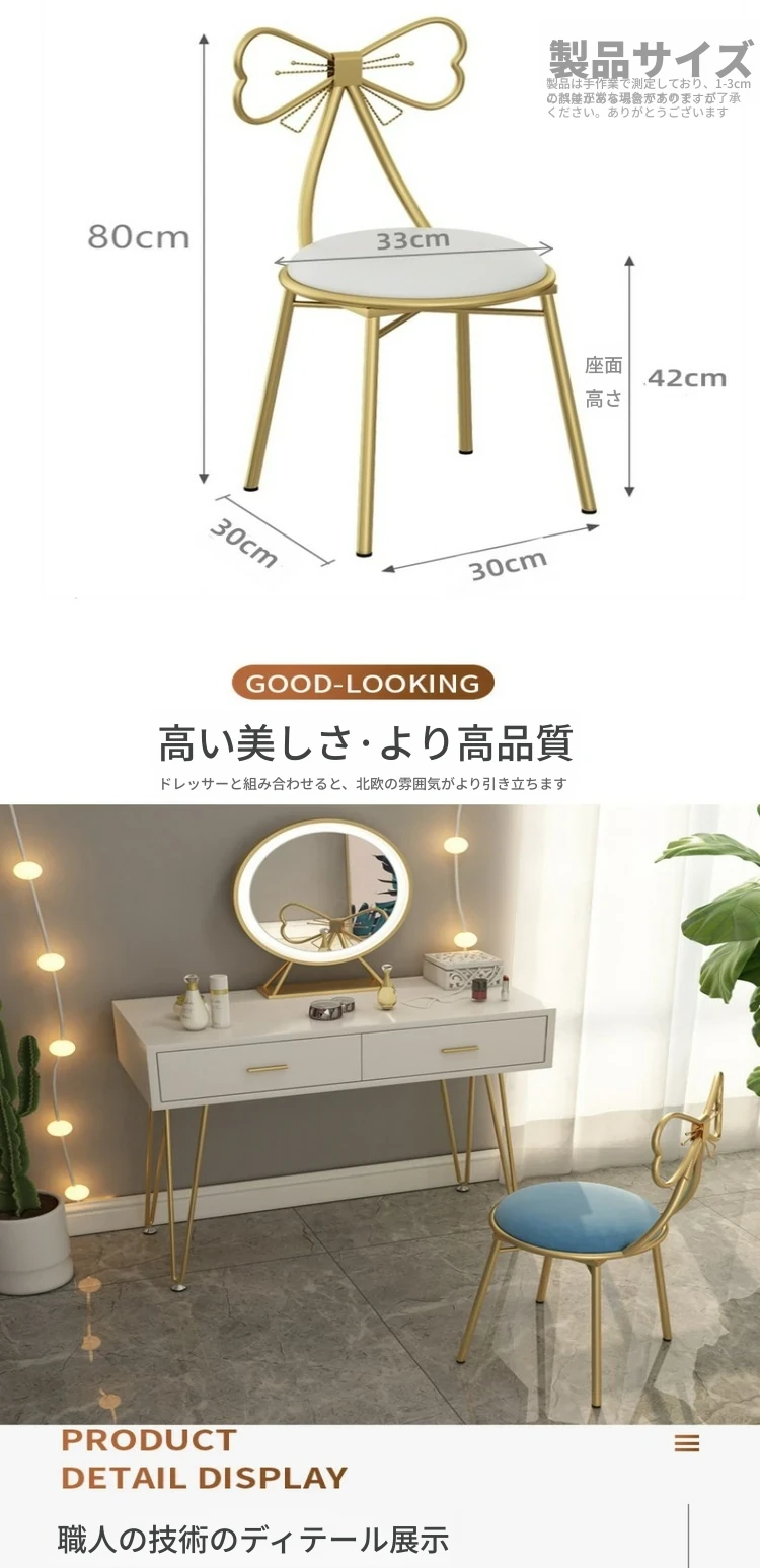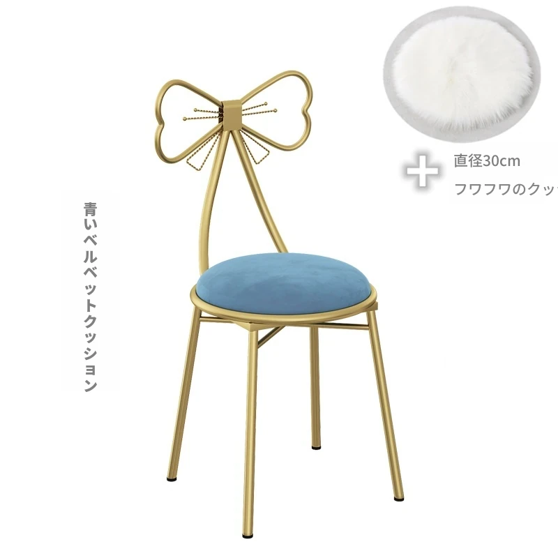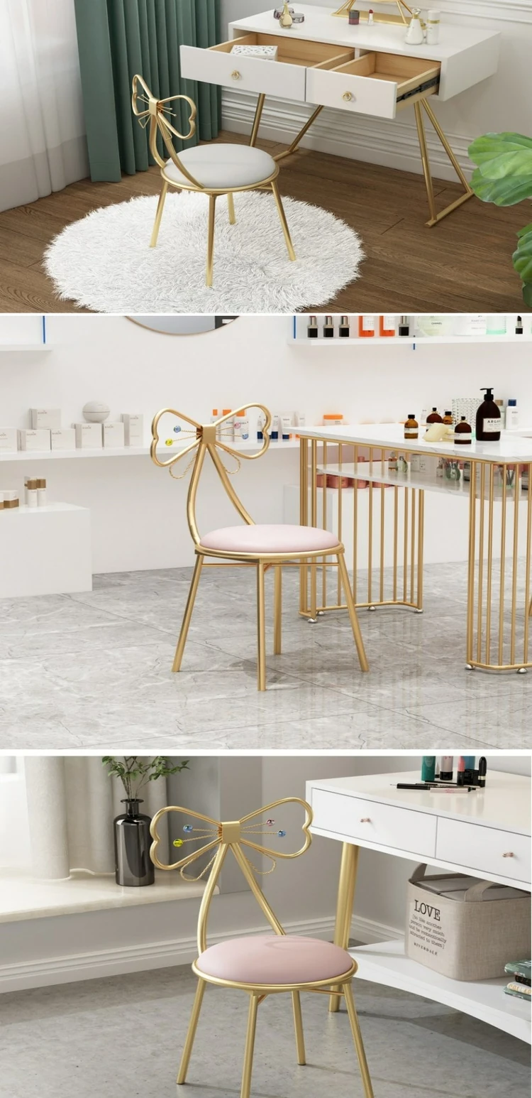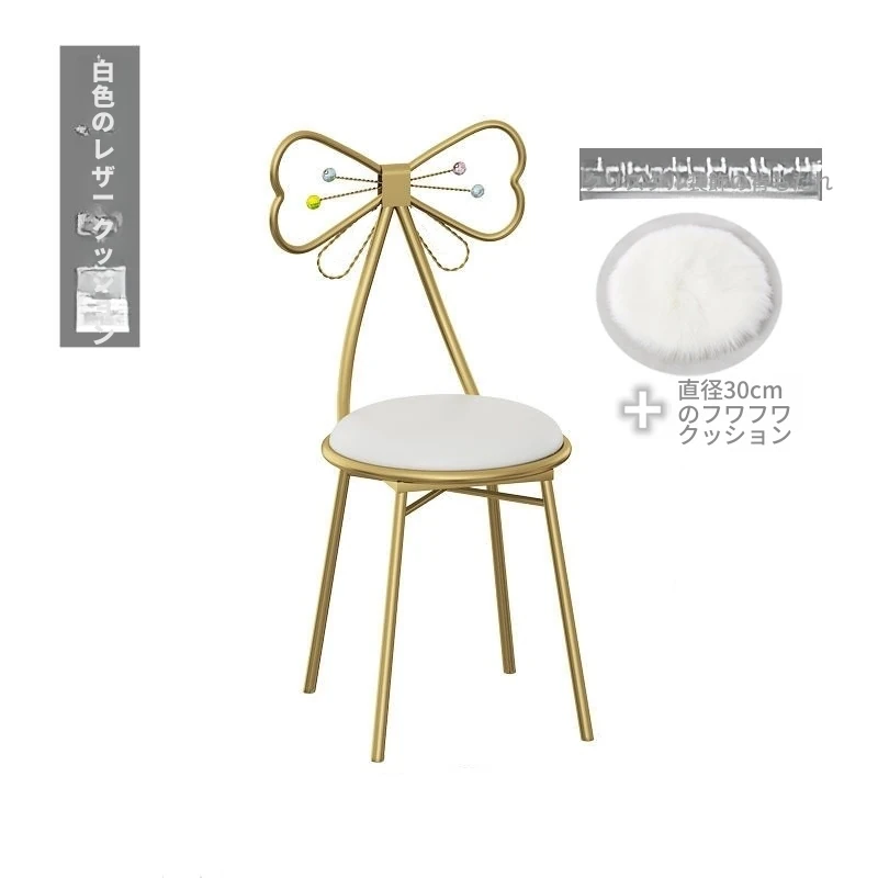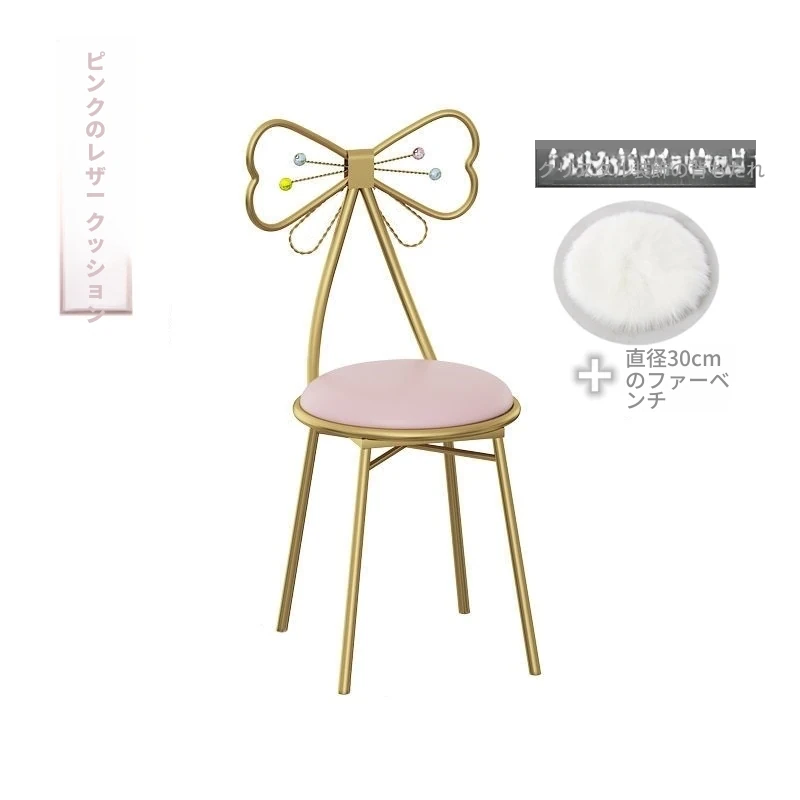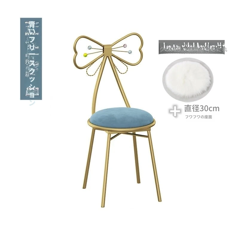 新作!少女心満点の小型寝室用プリンセスバタフライメイクアップチェア - 人気の脱着式背もたれ付き、美しさを引き立てるアイテム!