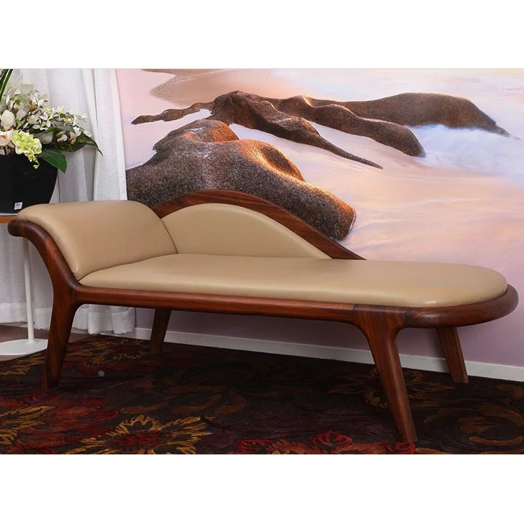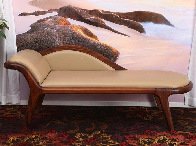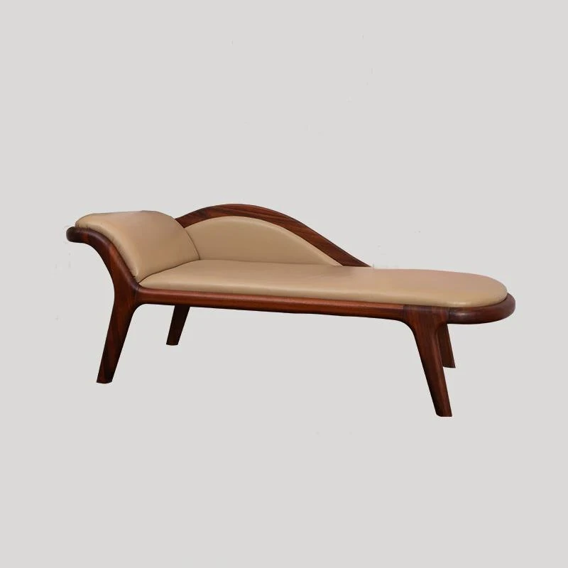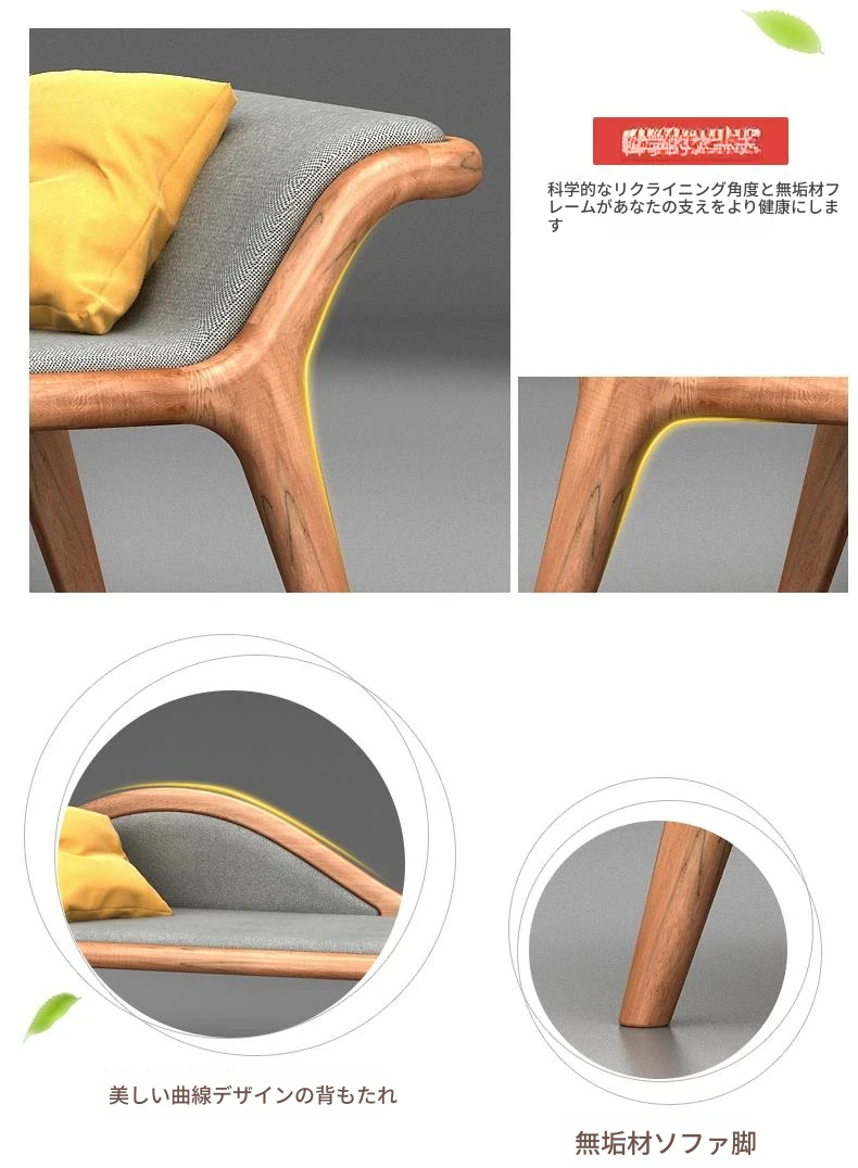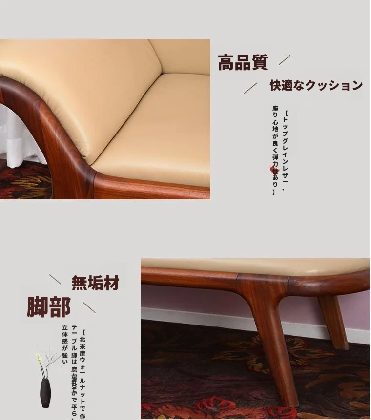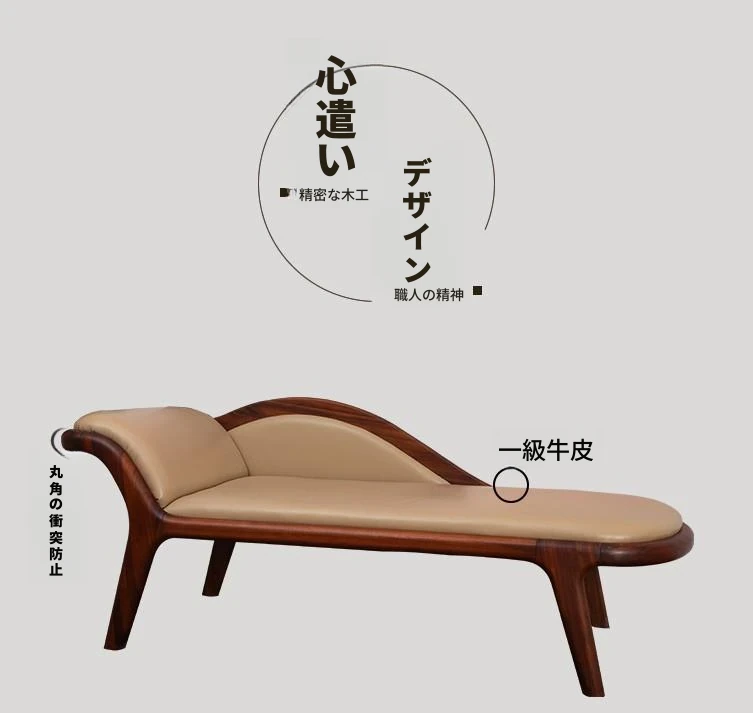 北欧シンプルモダンスタイルのウォールナット無垢材使用!高級レザーの美しいデザイン、リラックスできるコーナーソファベッド。バルコニーや寝室にぴったりの贅沢な美人ソファ。