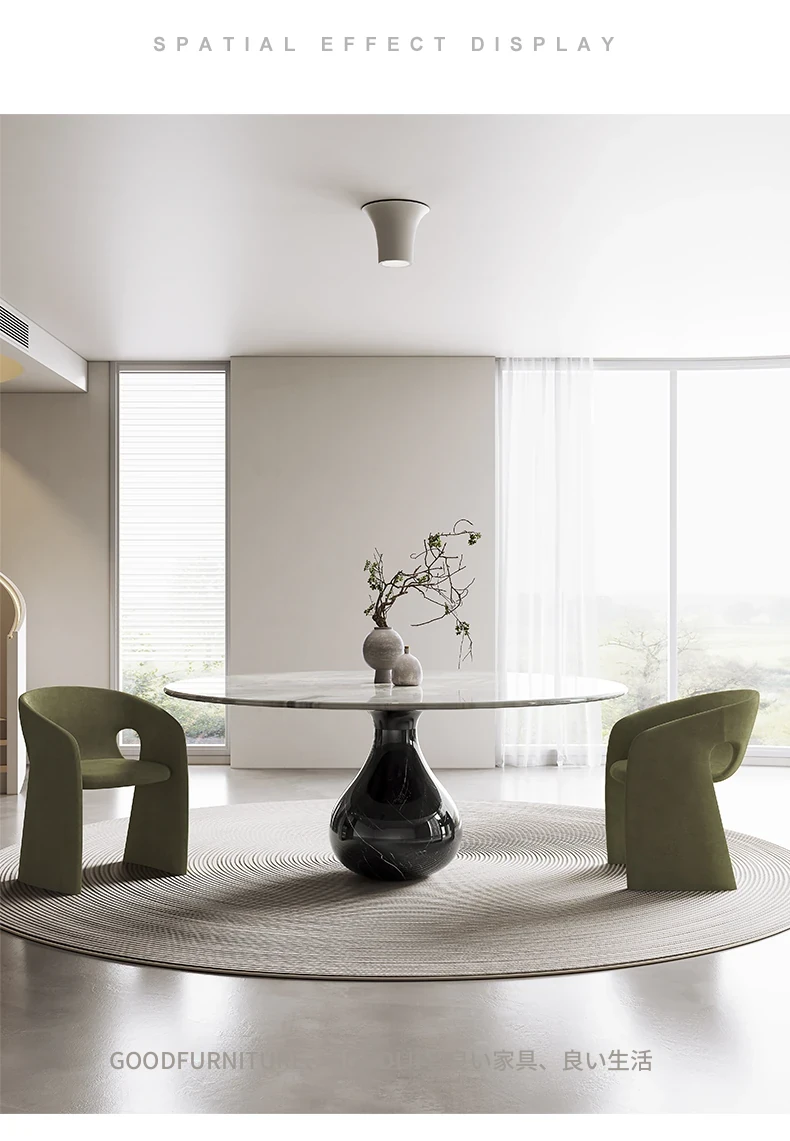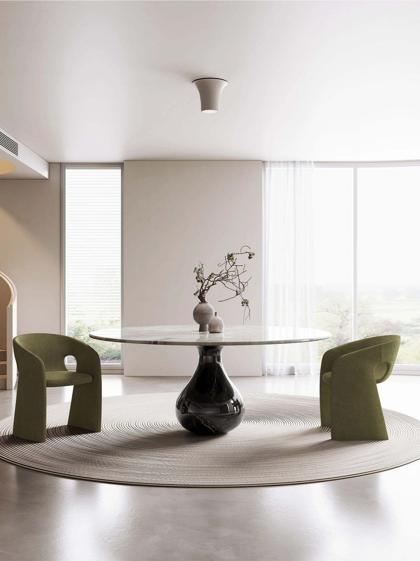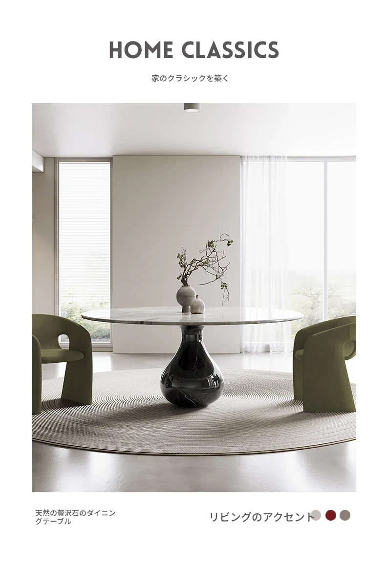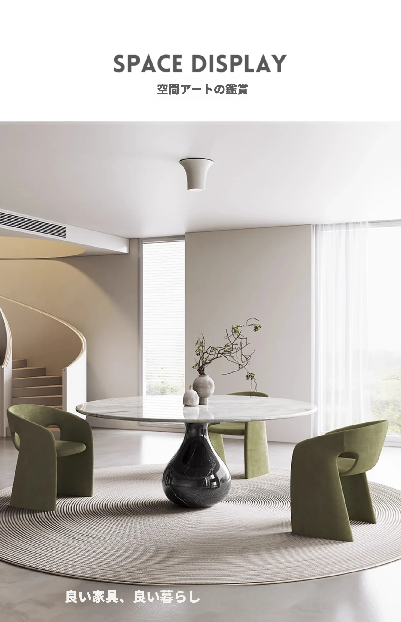 彼愛芬迪 ホワイト ナチュラル ラグジュアリー ストーン サークル ダイニングテーブル フレンチクリームスタイル 輸入大理石 デザイナー 高級ダイニングテーブル