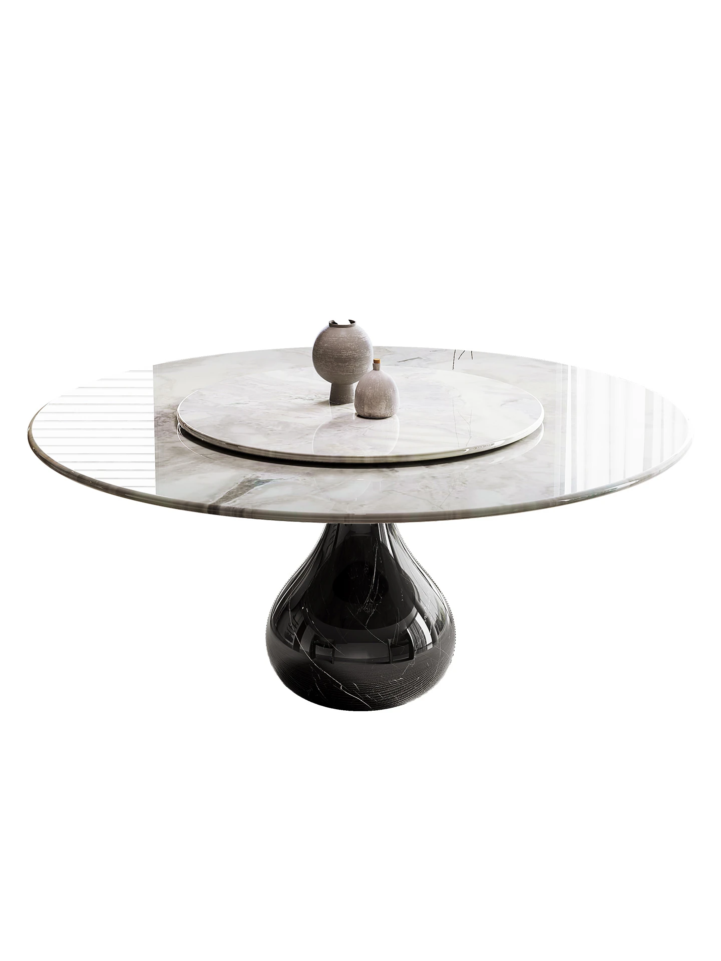 100%輸入天然ラグジュアリー石【フェンディホワイト】160CM円形ダイニングテーブル/100CM回転台付き