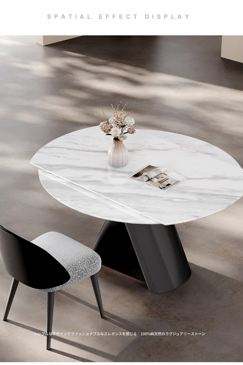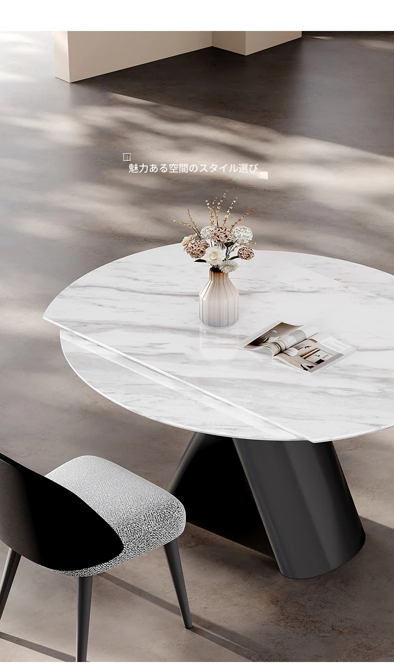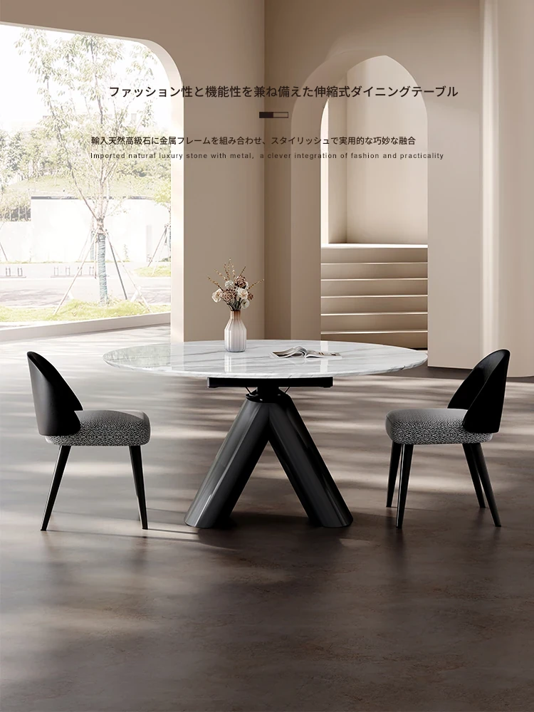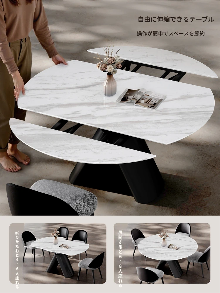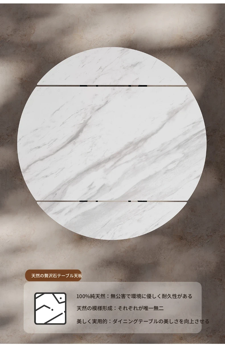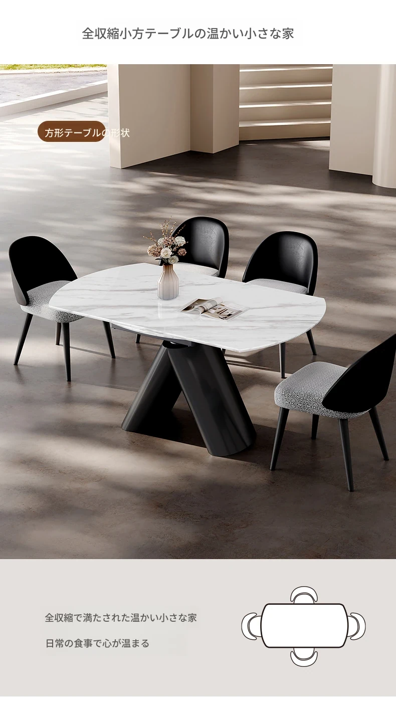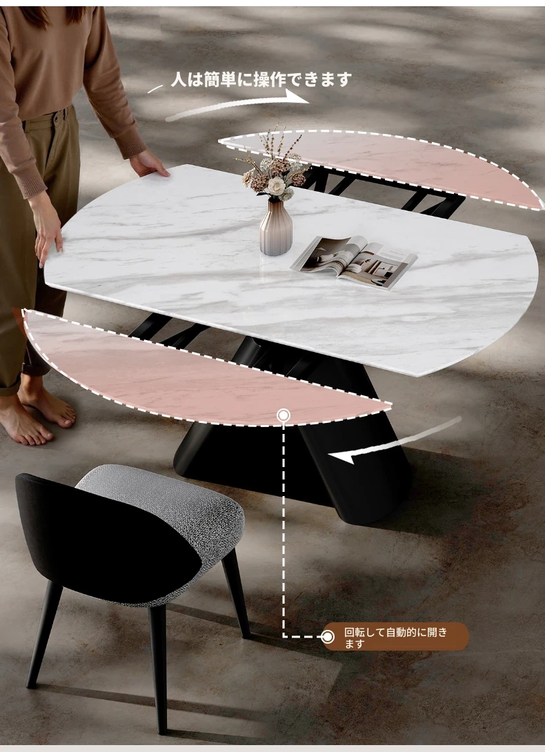 彼愛の天然ラグジュアリーストーン伸縮ダイニングテーブル - モダンでシンプル、軽やかな高級感!小型住宅にぴったりの回転折りたたみ式、四角から丸へ変身するテーブルで、スペースを有効活用!