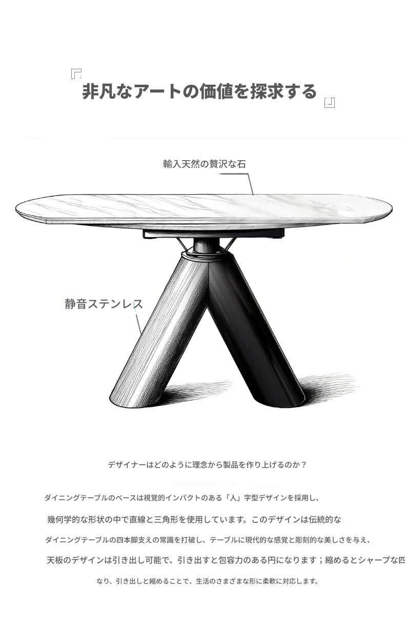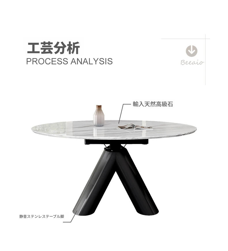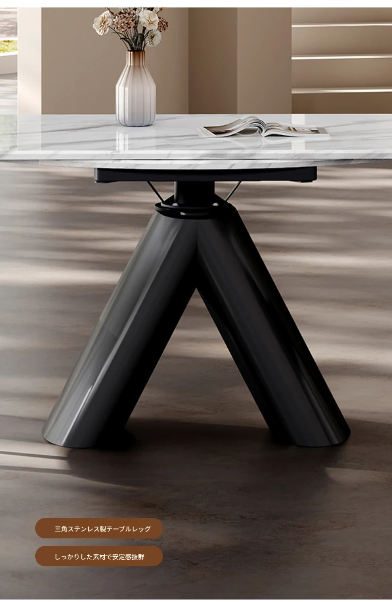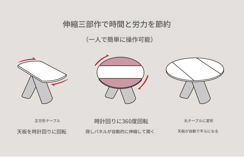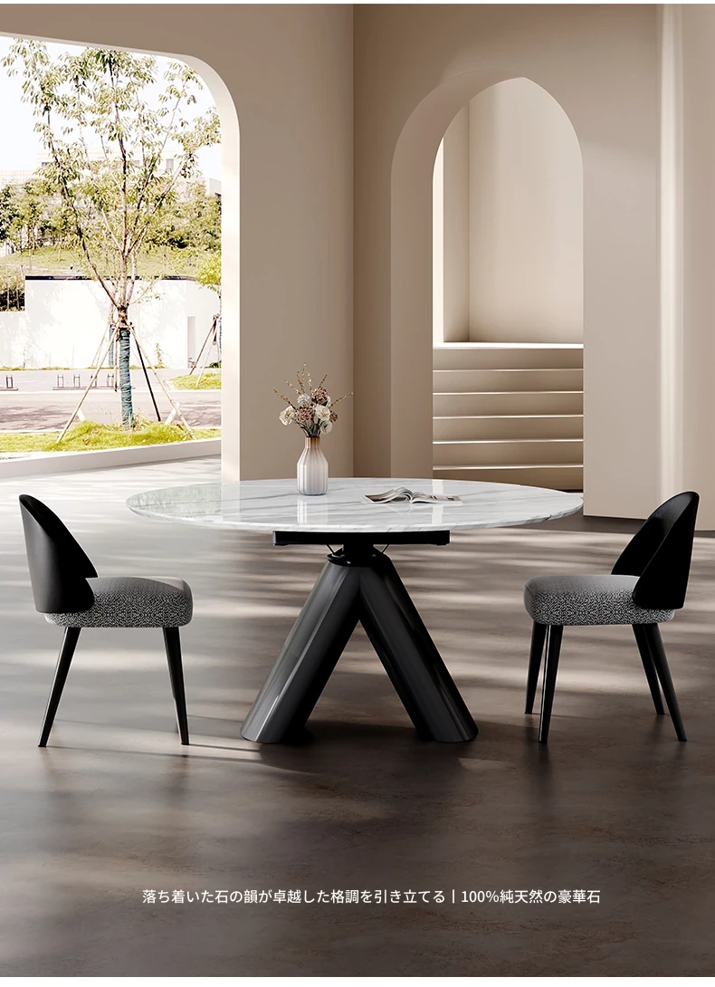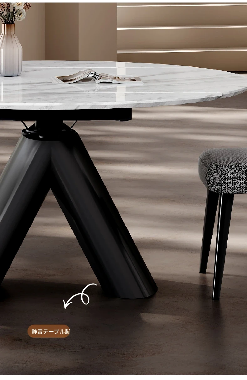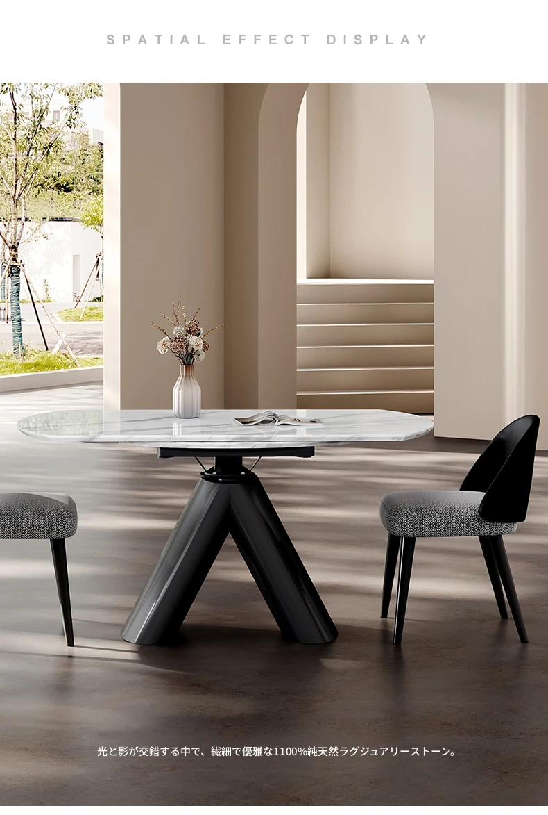 彼愛の天然ラグジュアリーストーン伸縮ダイニングテーブル - モダンでシンプル、軽やかな高級感!小型住宅にぴったりの回転折りたたみ式、四角から丸へ変身するテーブルで、スペースを有効活用!