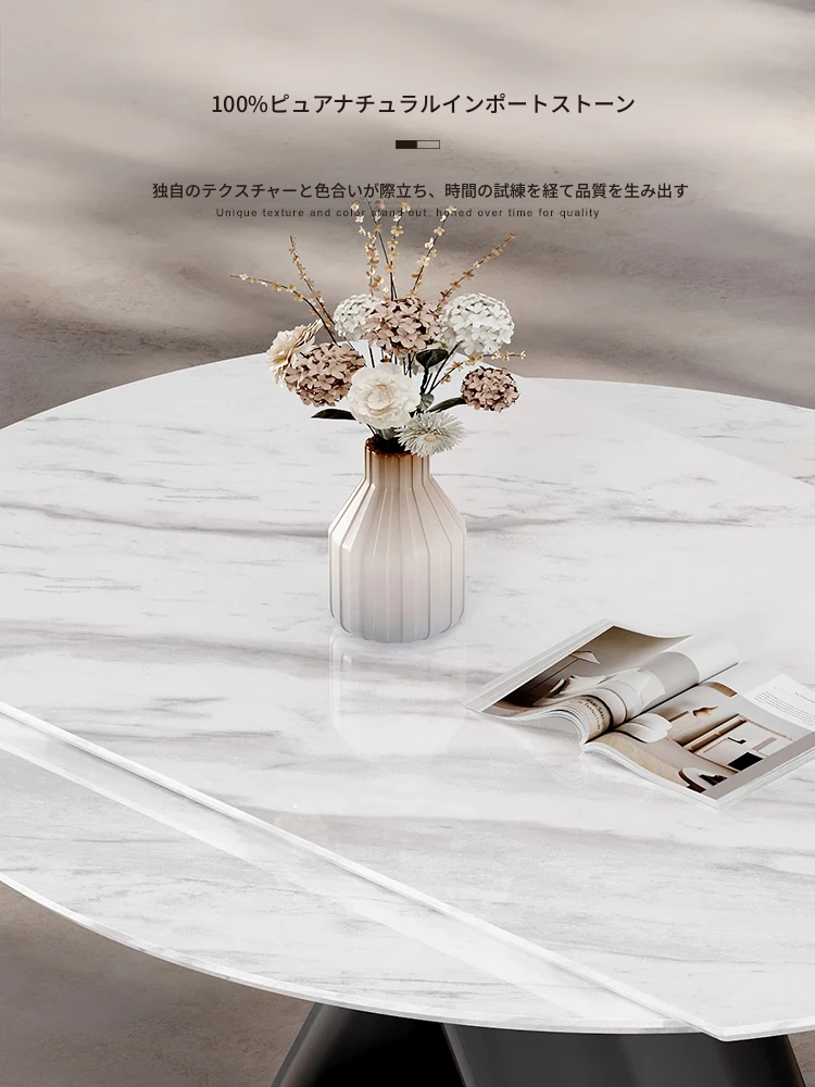 140cm角型から円型に変わるダイニングテーブル/100%天然素材のラグジュアリー石【ジャズホワイト】