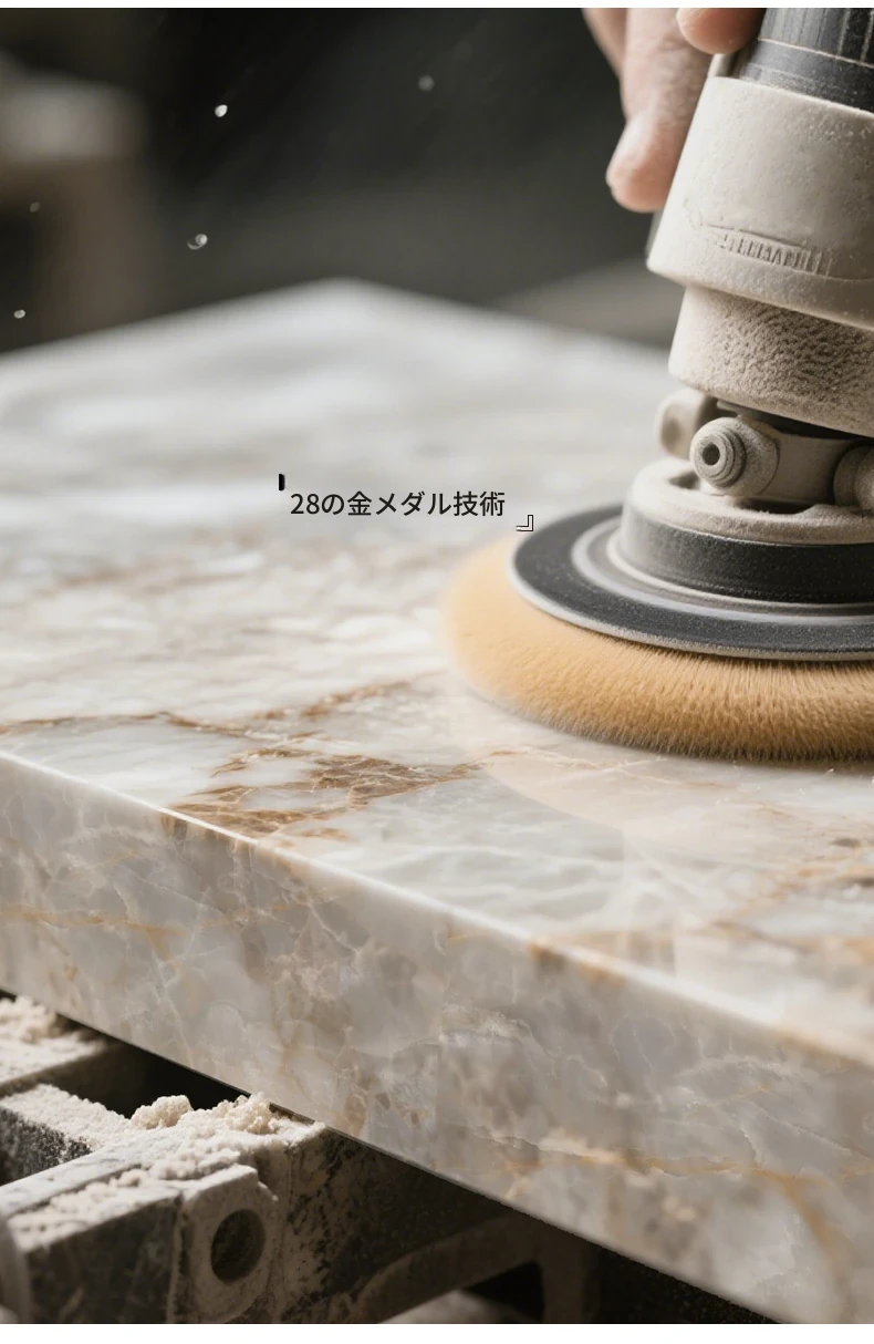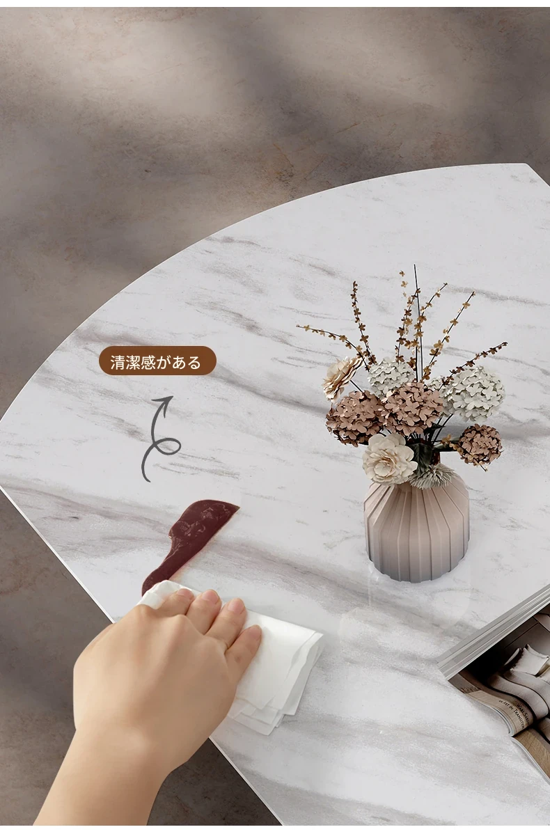 130cm角型から円型に変わるダイニングテーブル/100%天然素材のラグジュアリー石【ジャズホワイト】