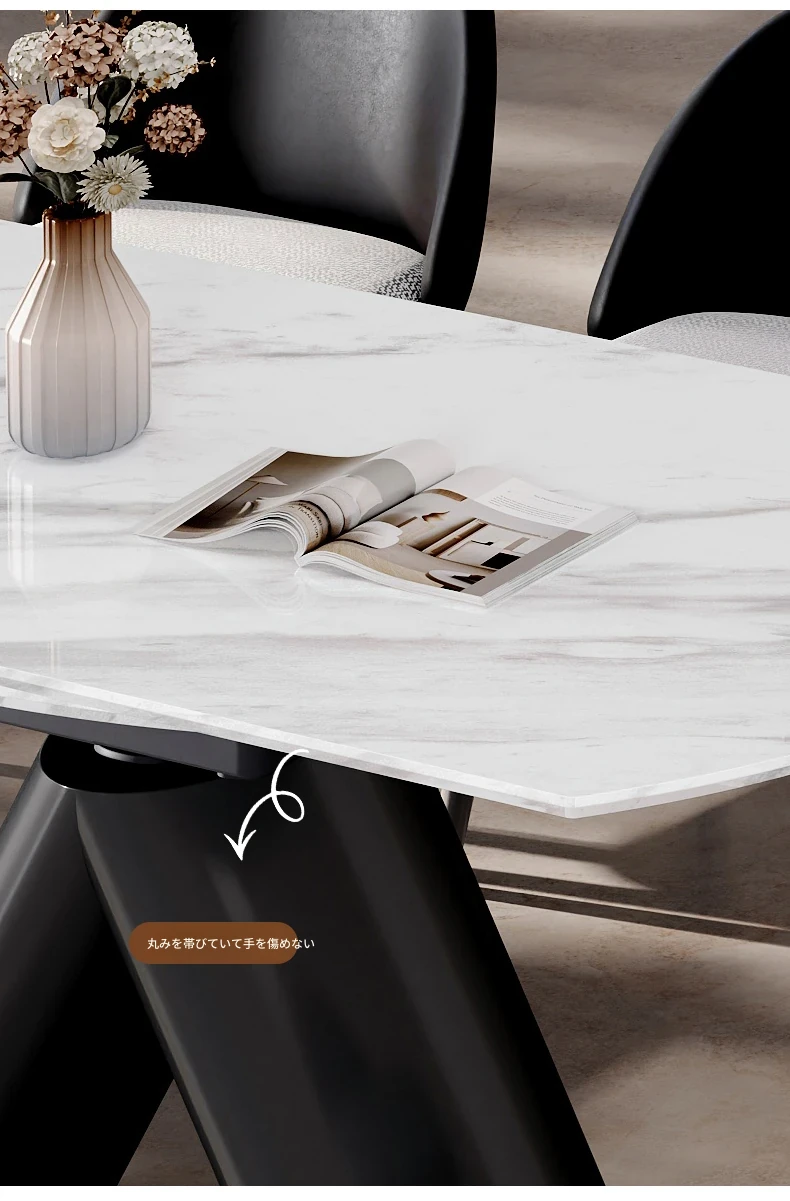130cm角型から円型に変わるダイニングテーブル/100%天然素材のラグジュアリー石【ジャズホワイト】+セットの椅子*6