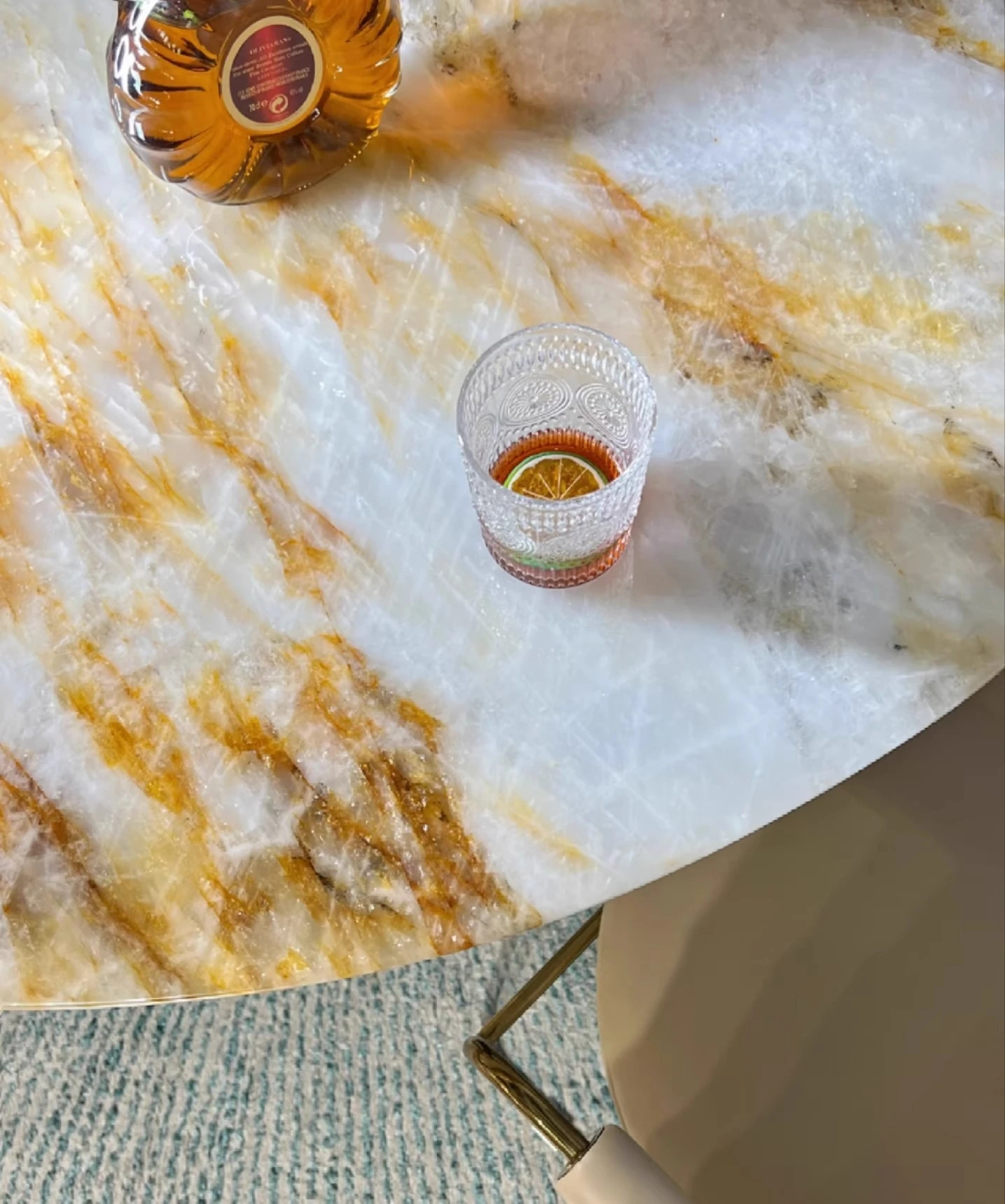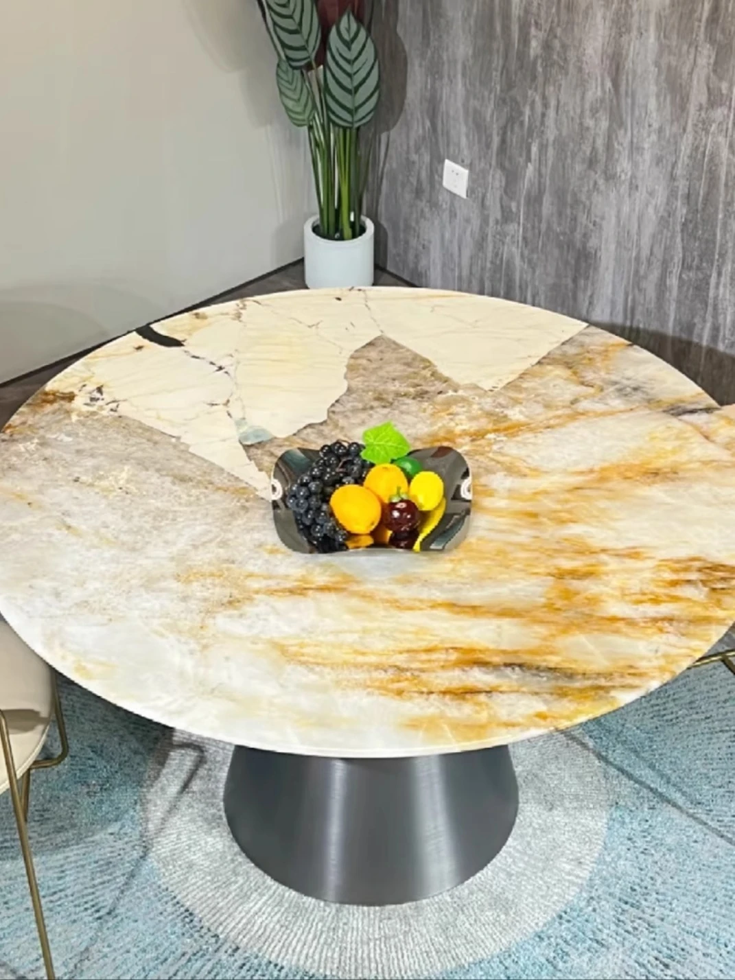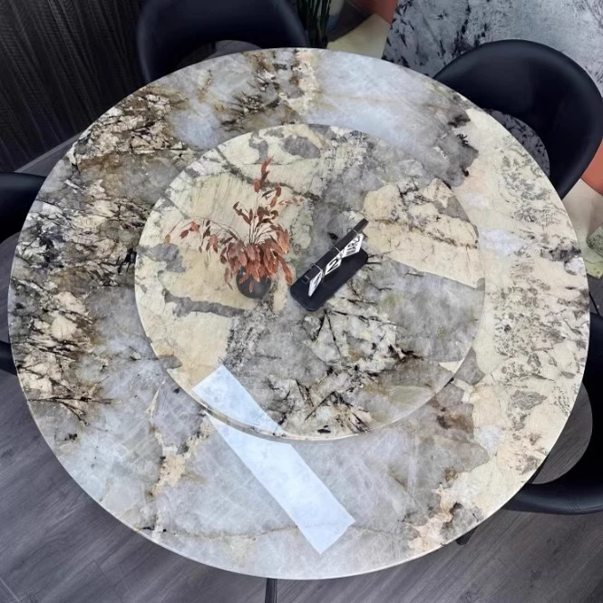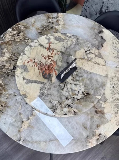 純天然ブラジル輸入のラグジュアリー石製ラウンドテーブル|モダンミニマルデザイン|イエローベース|パンドラ別荘向けの広々とした大サイズ卓|高級感あふれる空間を演出!