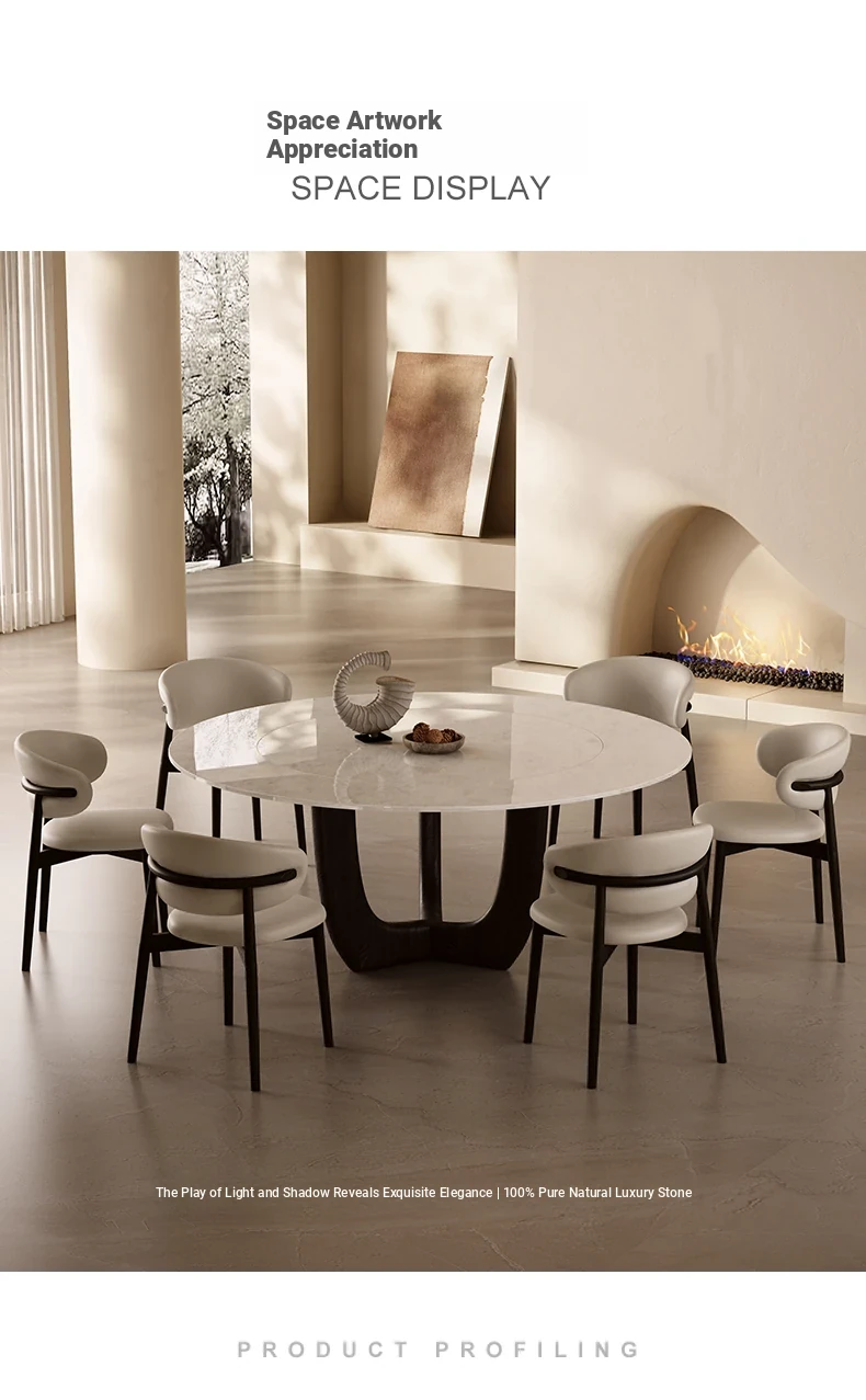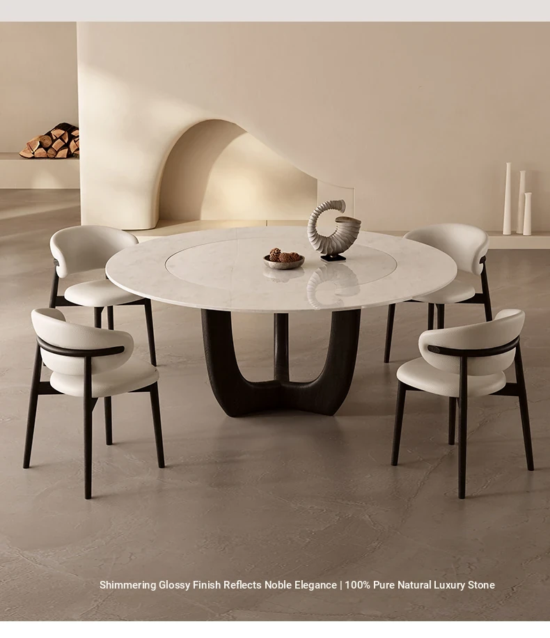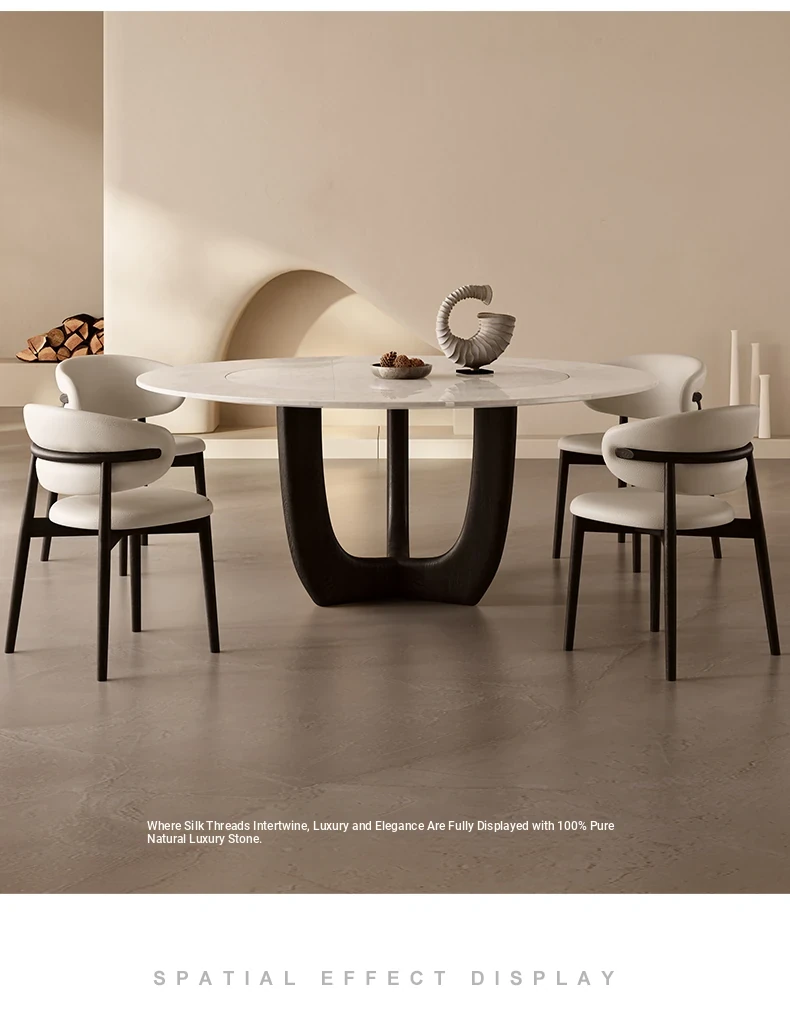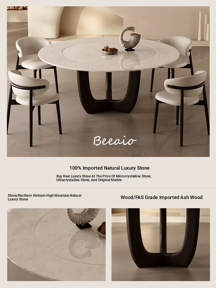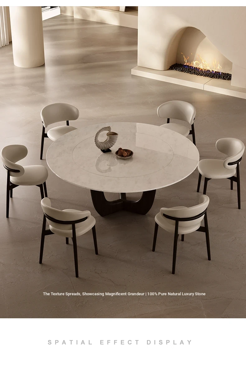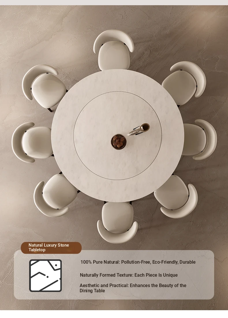 Pure Natural Luxury Stone Embedded Turntable Vintage Solid Wood Round Table - Modern Minimalist Light Luxury Marble Dining Table with Premium Feel