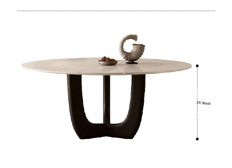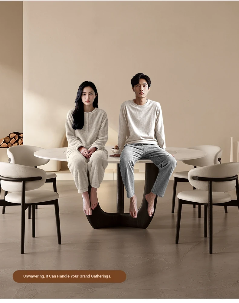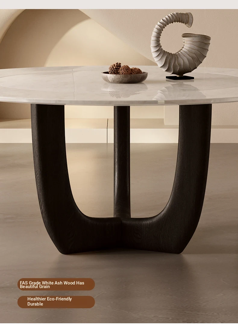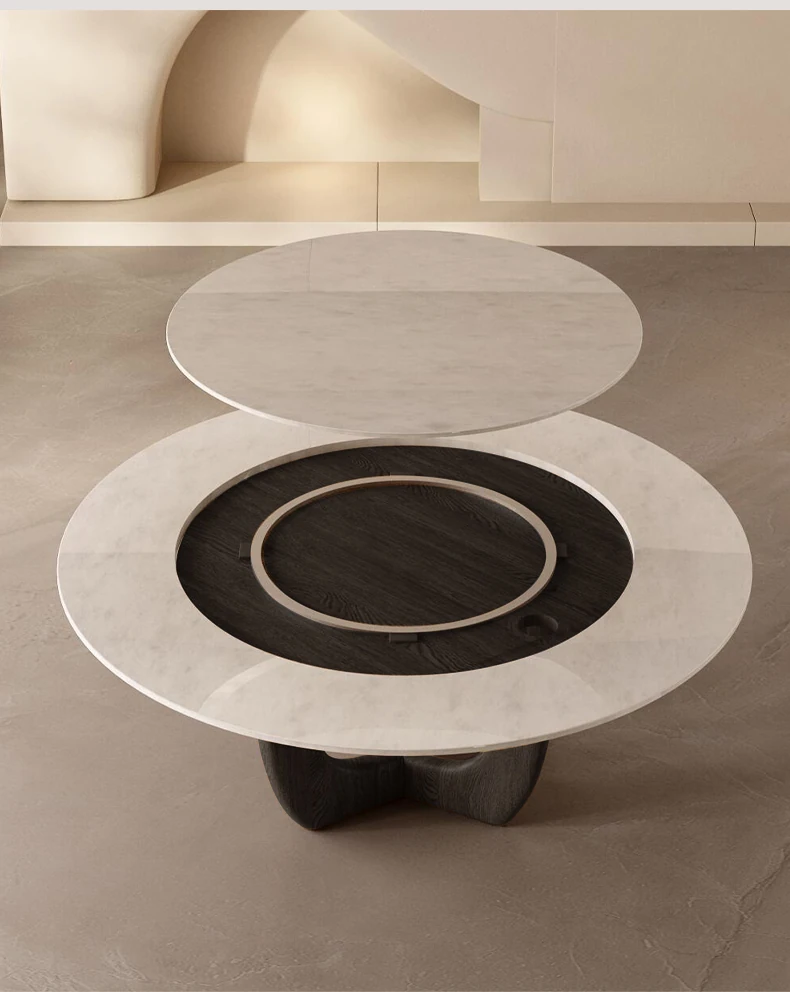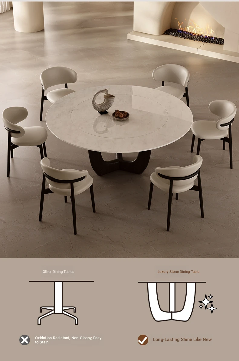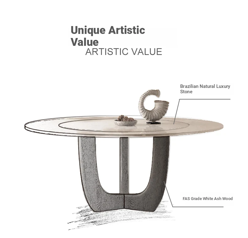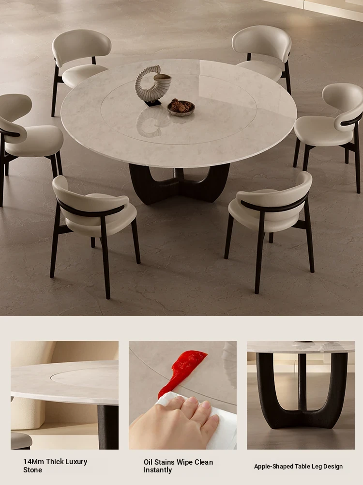Pure Natural Luxury Stone Embedded Turntable Vintage Solid Wood Round Table - Modern Minimalist Light Luxury Marble Dining Table with Premium Feel