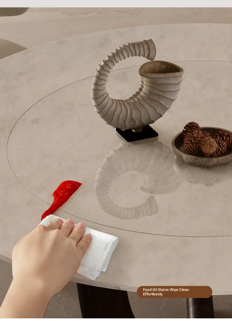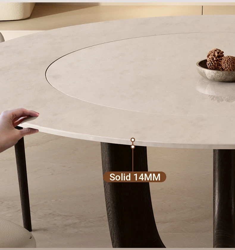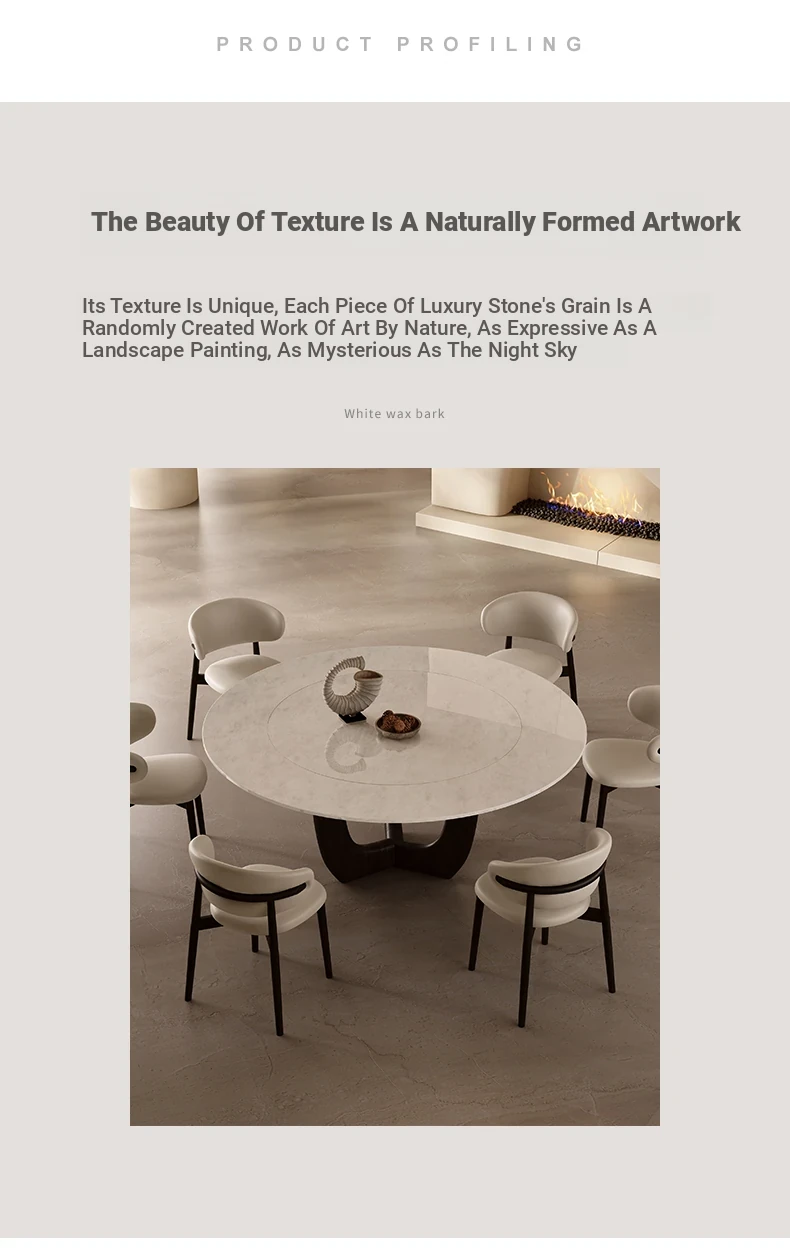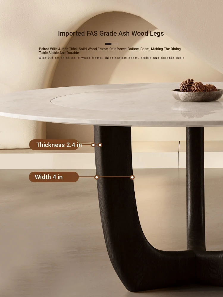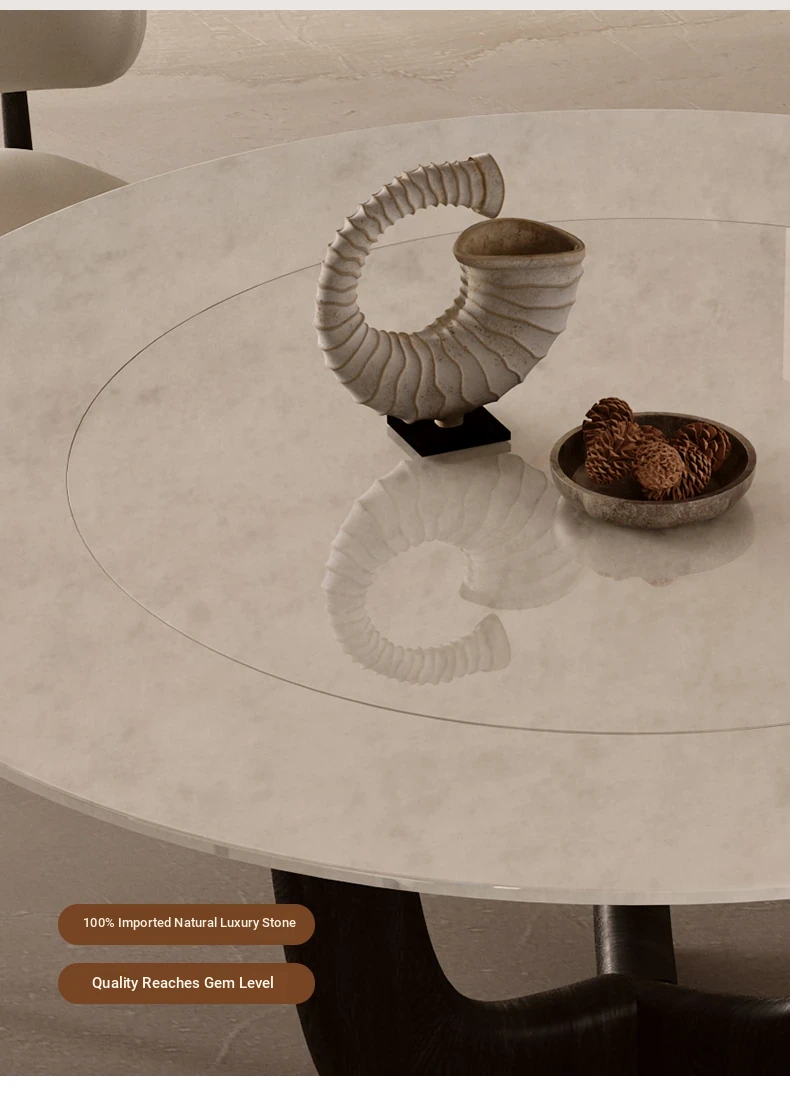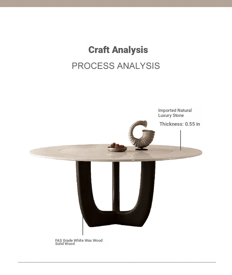 Pure Natural Luxury Stone Embedded Turntable Vintage Solid Wood Round Table - Modern Minimalist Light Luxury Marble Dining Table with Premium Feel