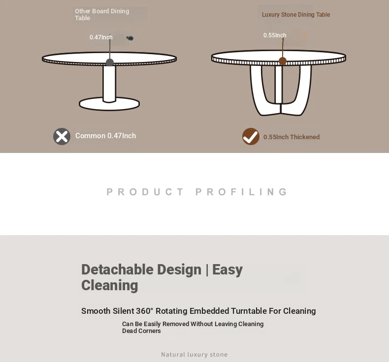 100% Import natural luxury stone [Diamond White]/59.06in dining table (embedded 35.43in turntable)