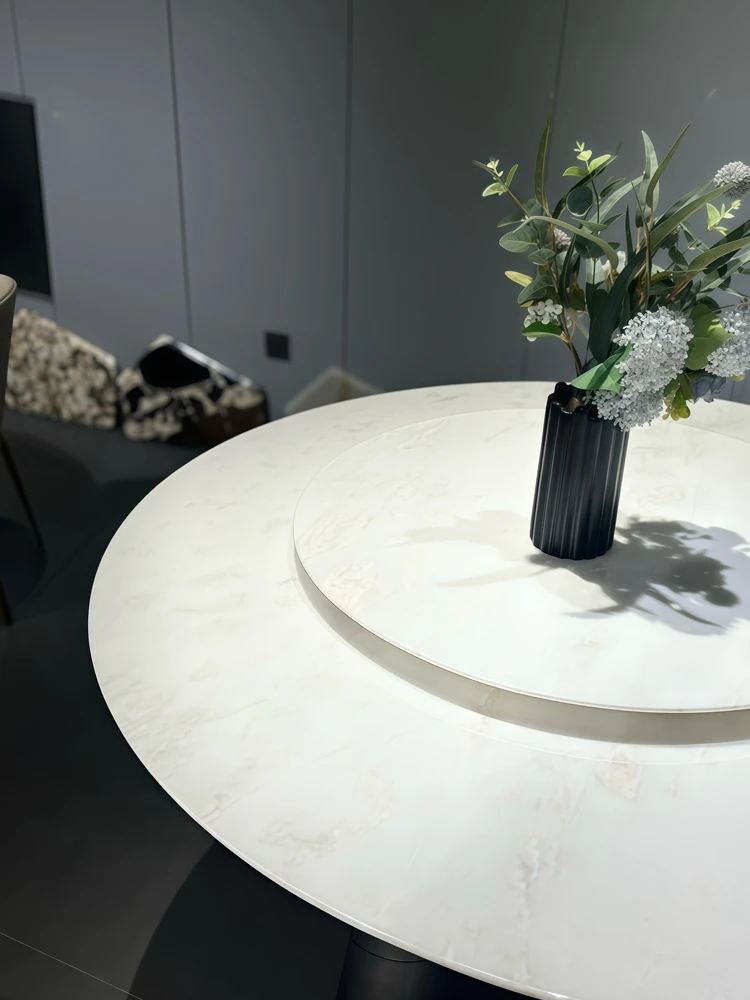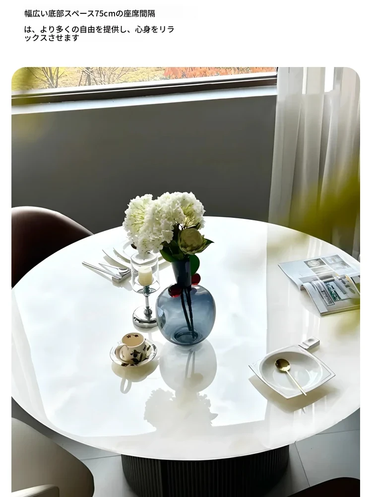 ロイヤルホワイトジェイド豪華石製ダイニングテーブル|フィンディホワイト天然大理石のシンプルで洗練された家用テーブルセット|ラウンドデザインで、家族や友人との特別なひとときを演出します。