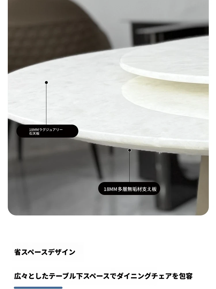 天然ロイヤルホワイトジェイドダイニングテーブル【回転台あり】+ラグジュアリーなダイニングチェア*6