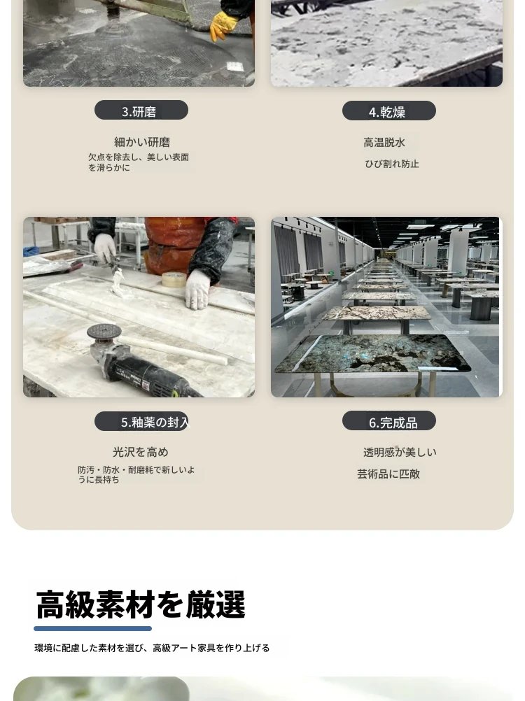 天然ロイヤルホワイトジェイド高級石製ダイニングテーブル【回転台なし】