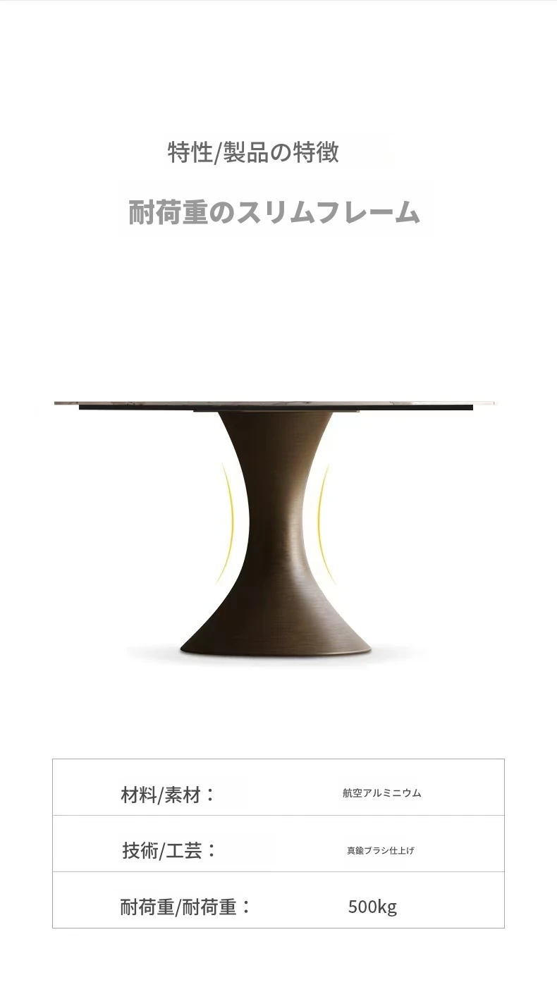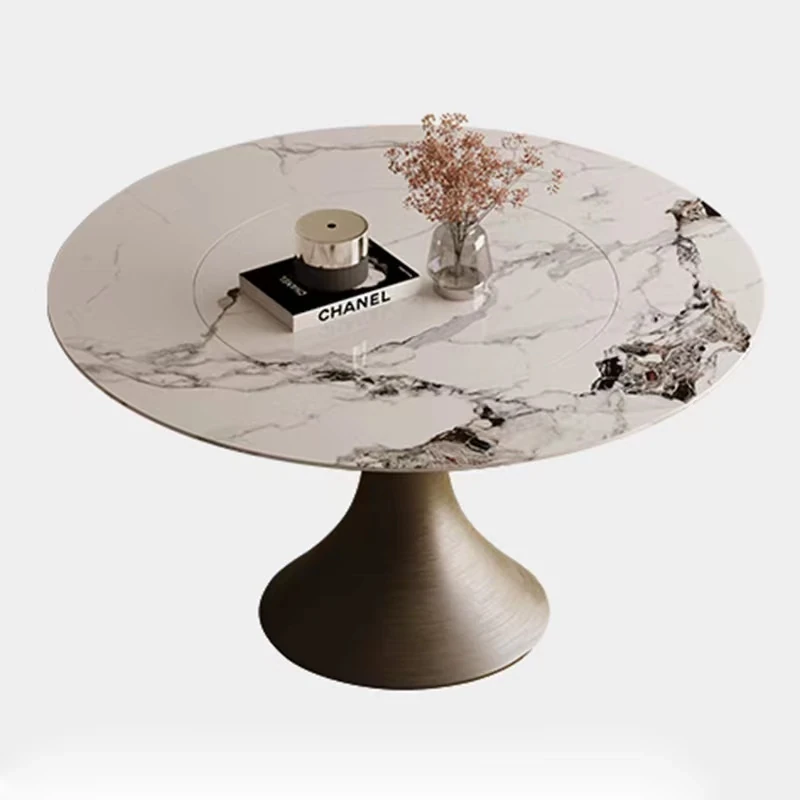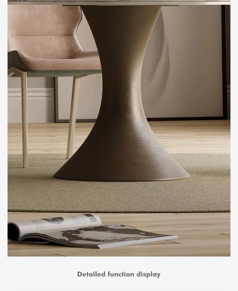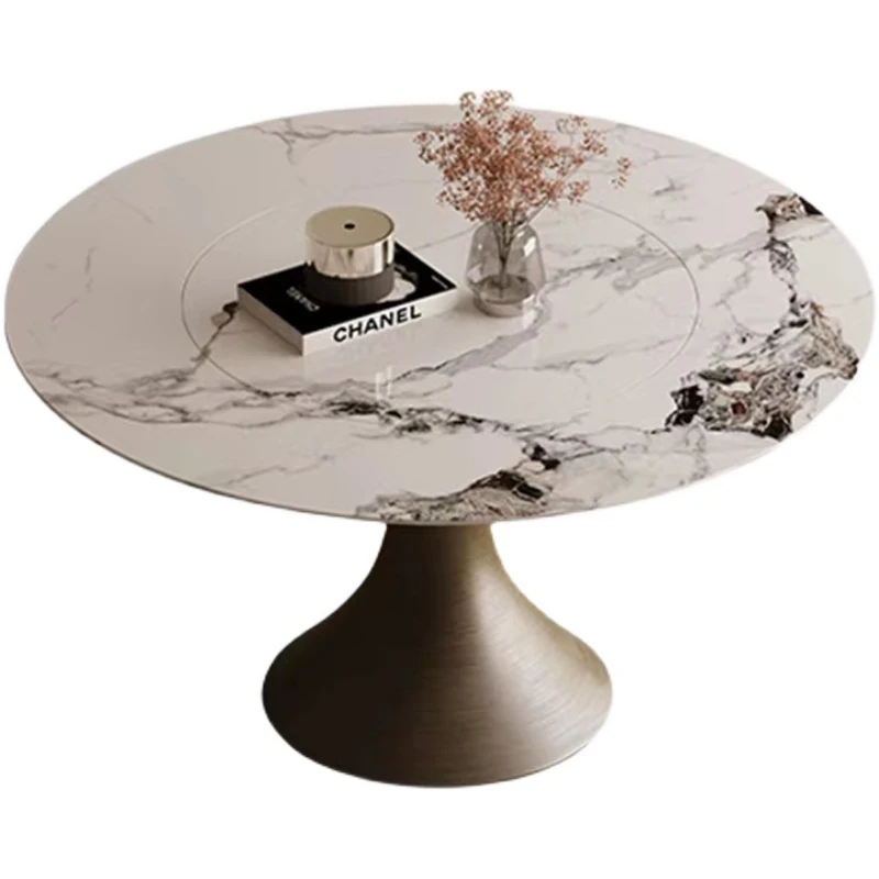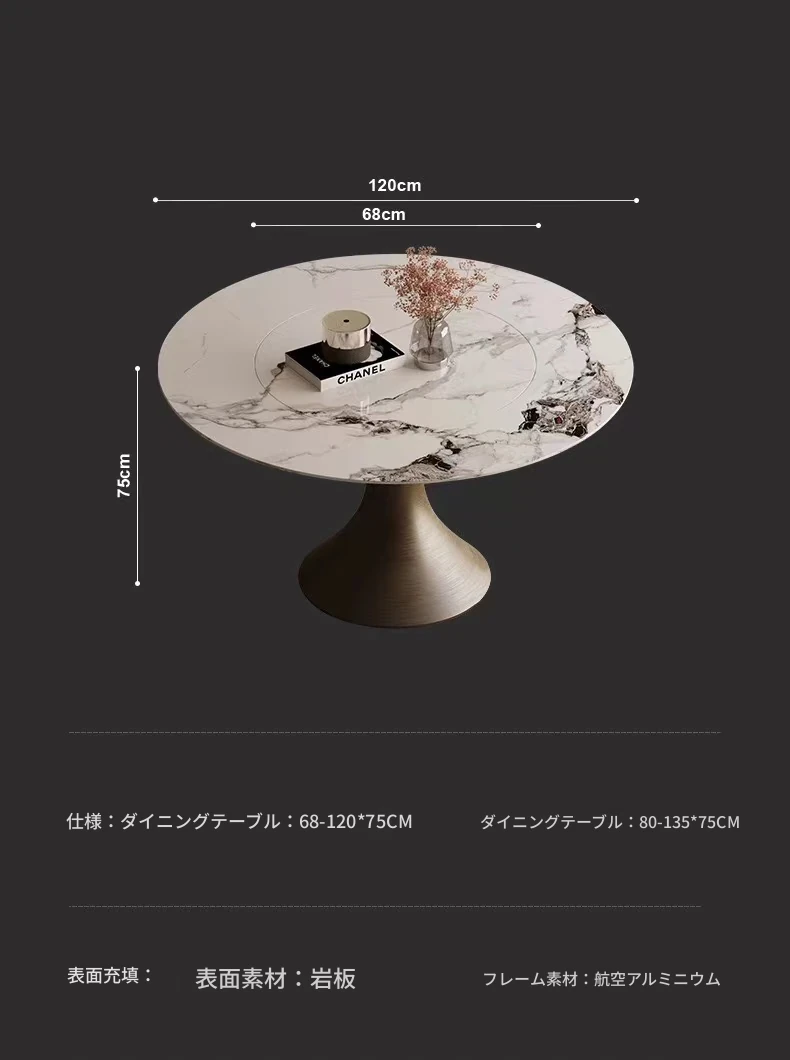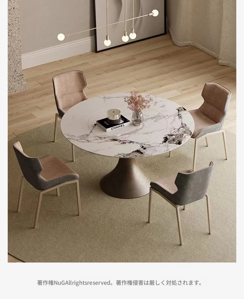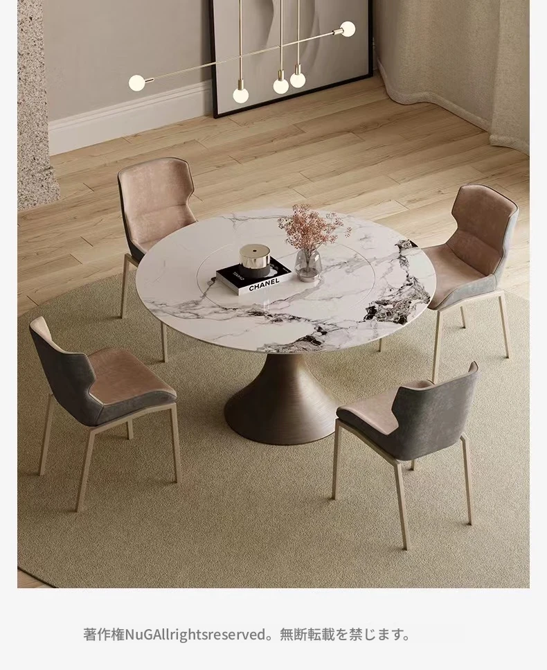 【SMILINGLY】高級感あふれるデザイナーズラウンドテーブル - スタイリッシュなウエストラインと内蔵回転盤で、食事の時間を特別に演出します。