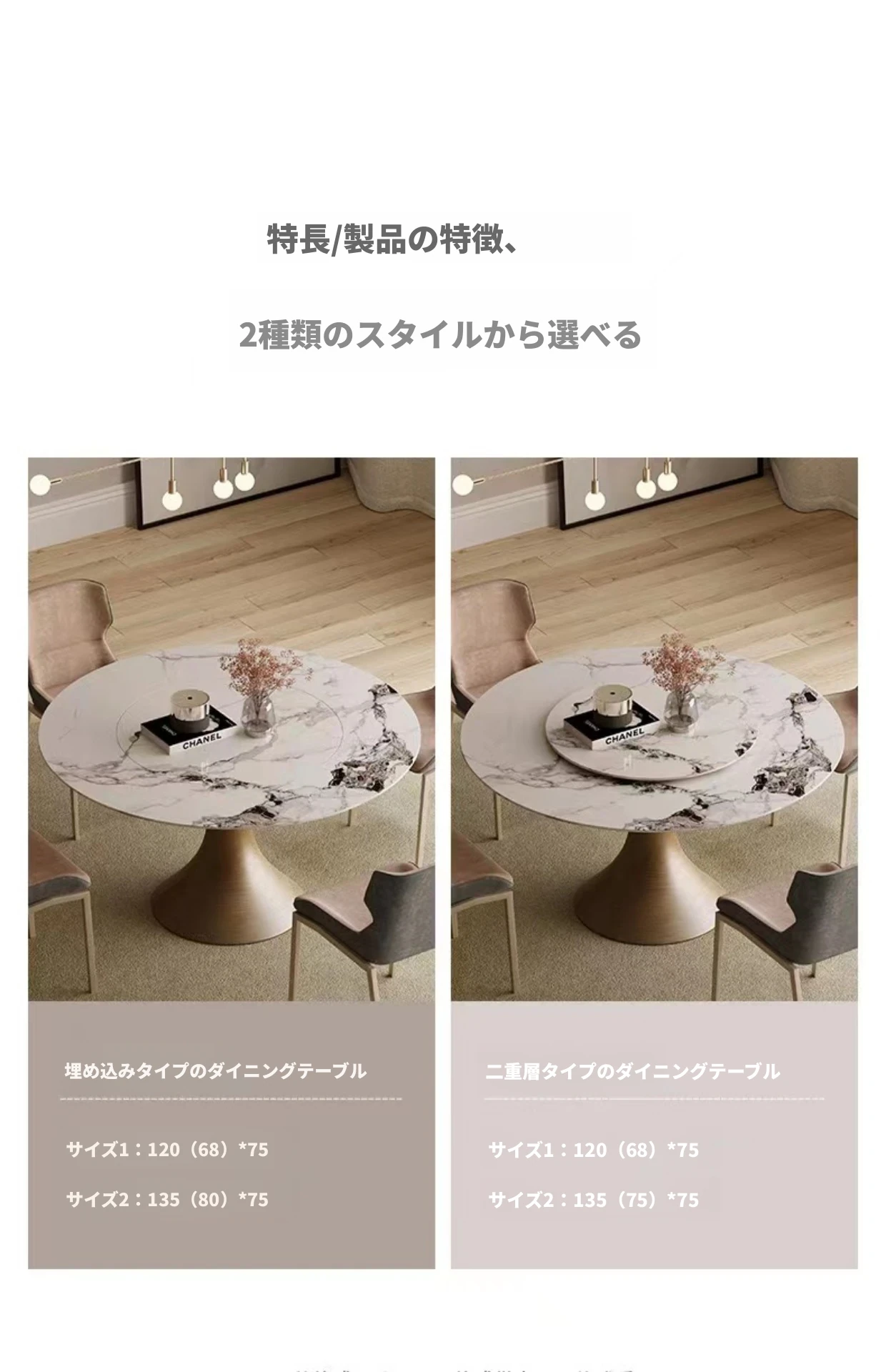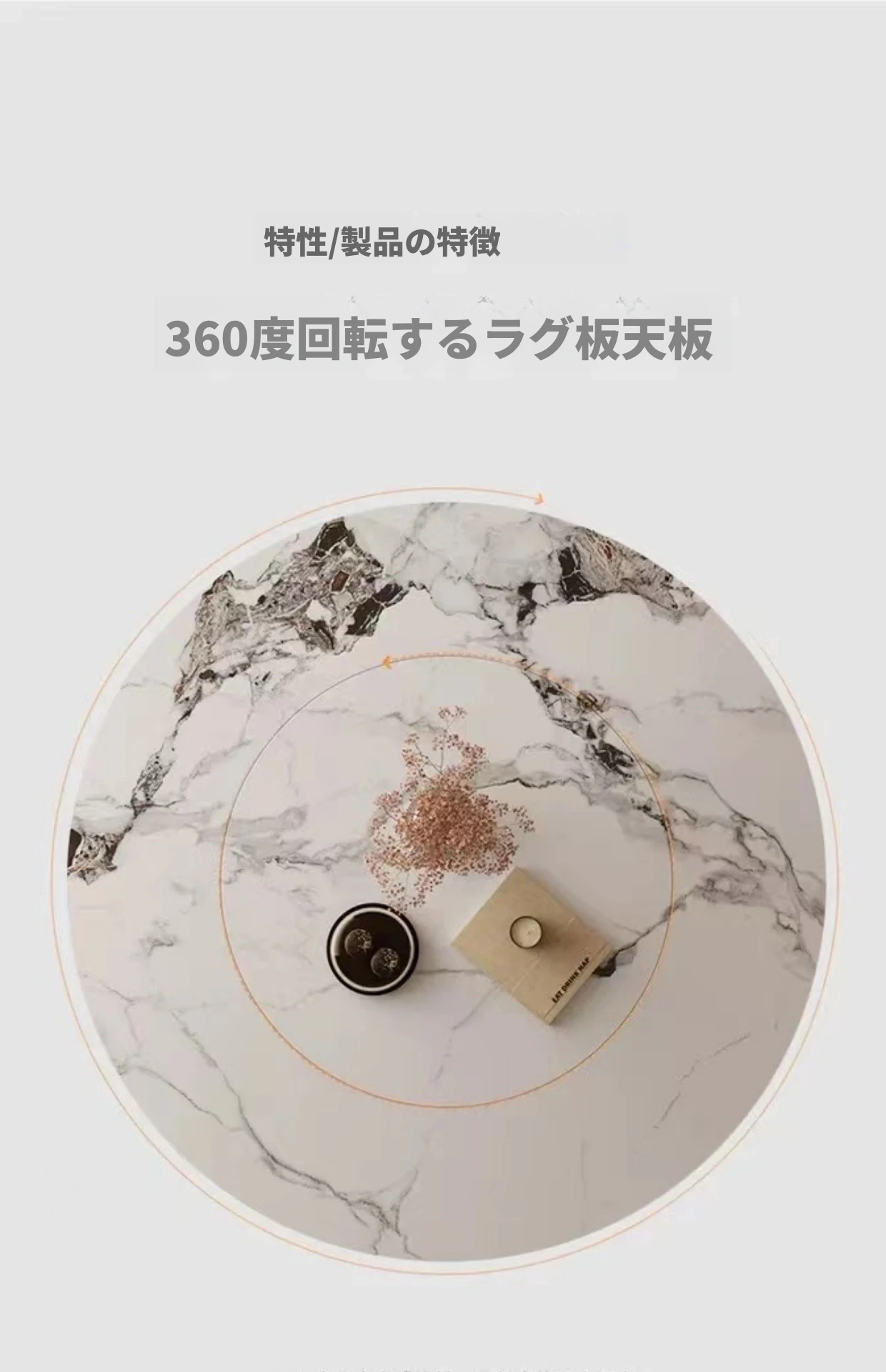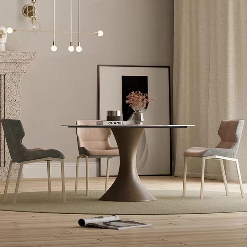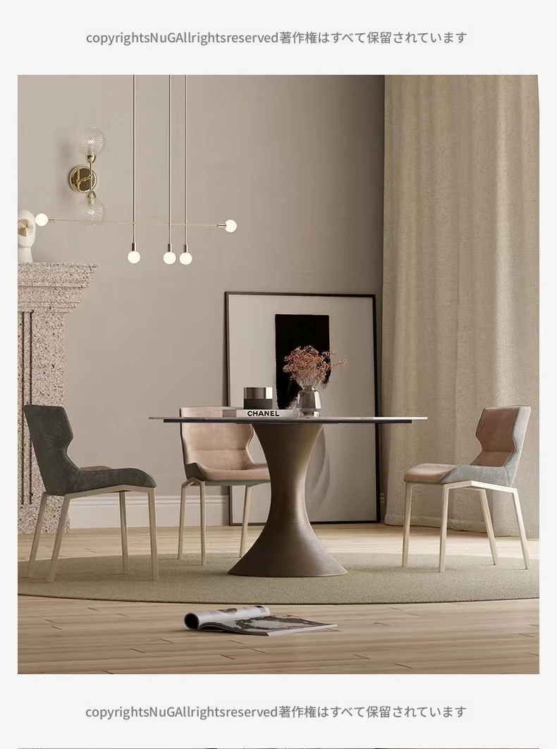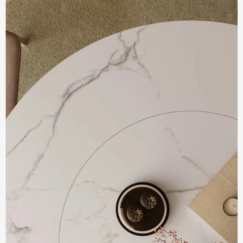 【SMILINGLY】高級感あふれるデザイナーズラウンドテーブル - スタイリッシュなウエストラインと内蔵回転盤で、食事の時間を特別に演出します。