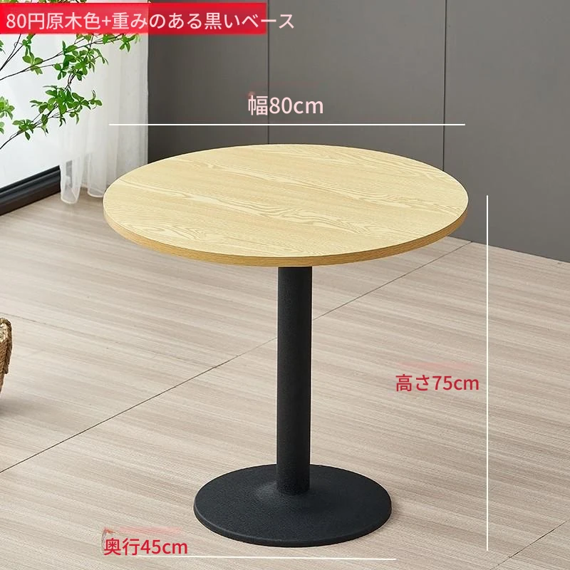 80cm円形ナチュラルウッド+全厚ブラック脚