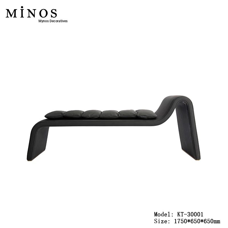 Nordic Minimalist Modern Black Walnut Solid Wood Chaise Lounge Corner Sofa Bed – Luxurious Leather Daybed for Balcony and Bedroom