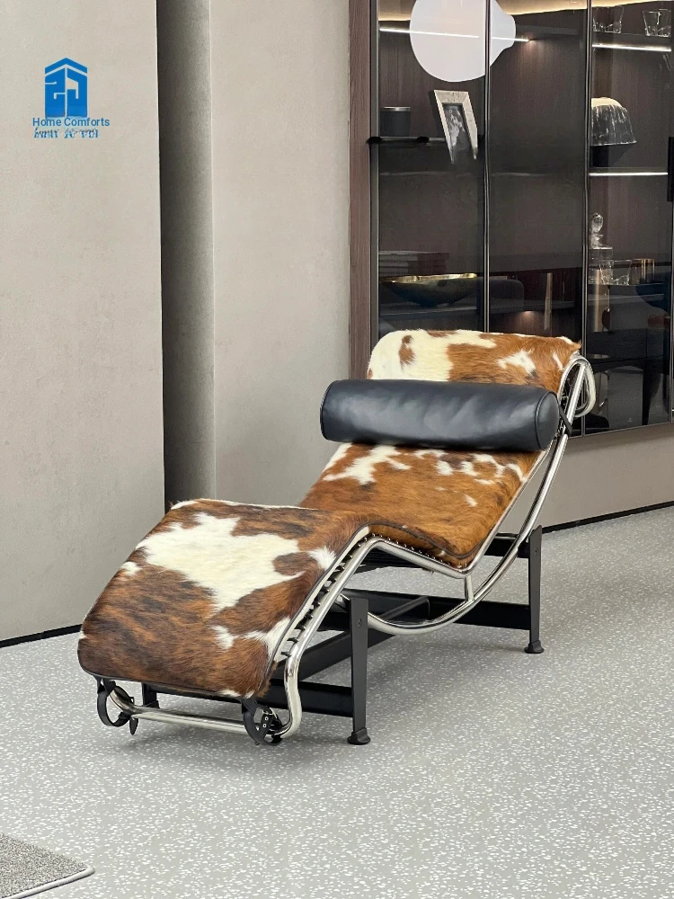 Italian Chic Vintage Designer Chaise Lounge Chair in Premium Cowhide - Luxury Relaxation Chair for High-End Villas & Mansions, Inspired by the Iconic LC4 Design