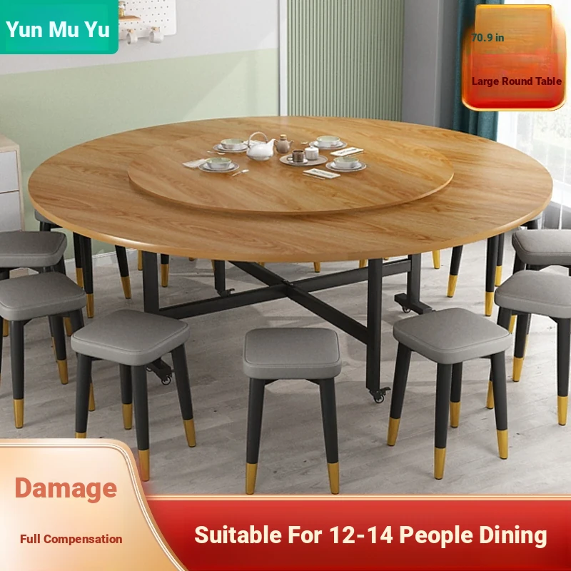Foldable Round Dining Table with Rotating Base - Space-Saving Design for Family Gatherings, Accommodates Up to 12 People, Perfect for Small Homes