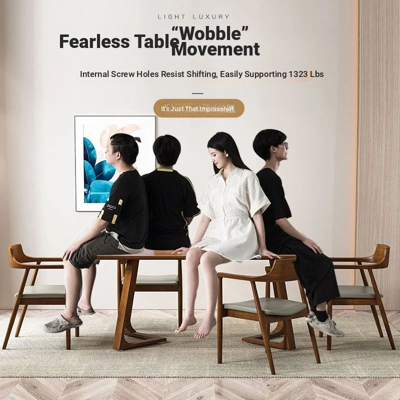 Modern Minimalist Solid Wood Dining Table and Chair Set - Expandable and Foldable Round Table for Small Homes, Perfect for Six People Enjoying Meals Together.