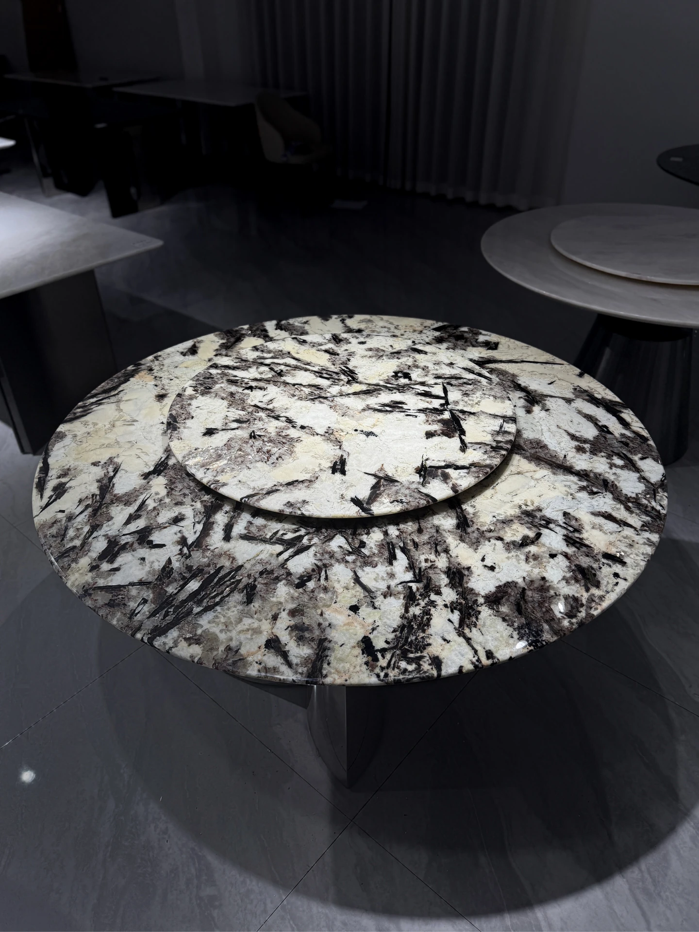 2025 New Luxury Snow Mountain Flying Fox Marble Dining Table Set - Elegant Round Table with Natural Marble Chairs for a High-End Dining Experience