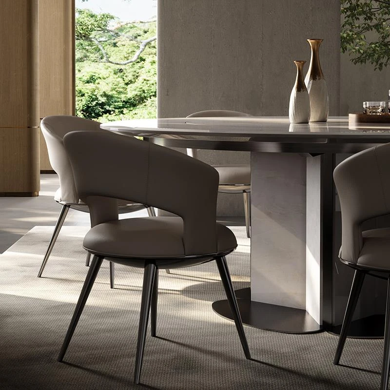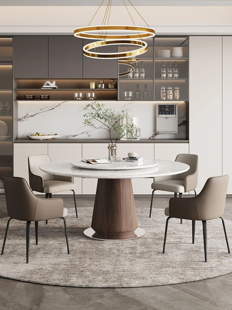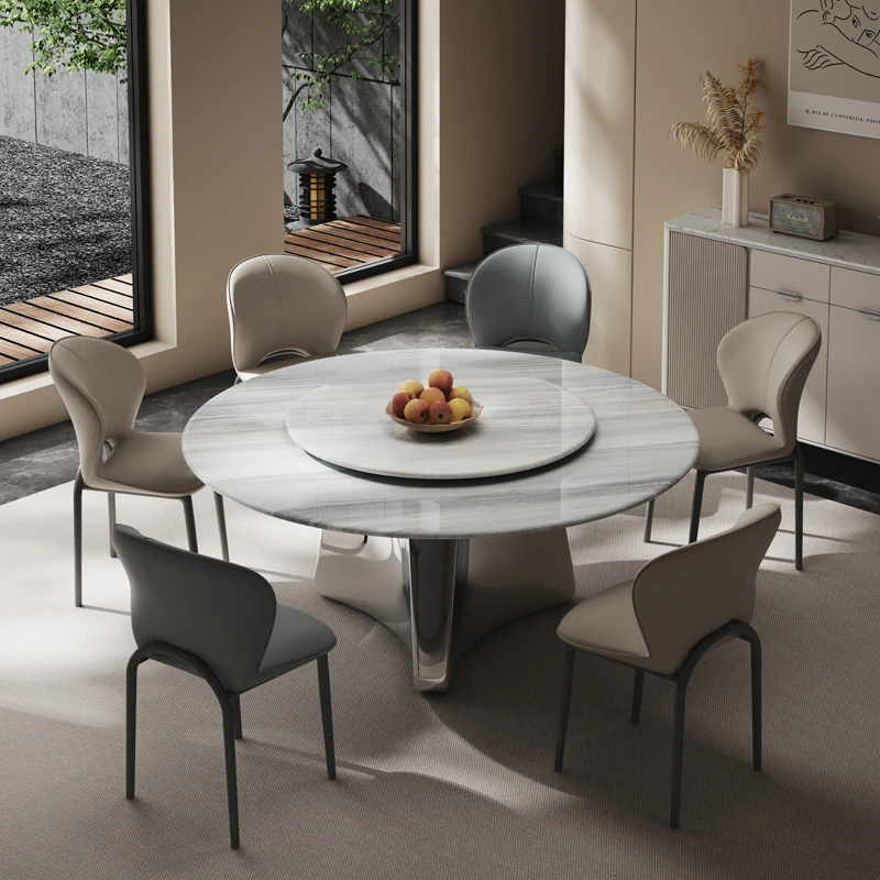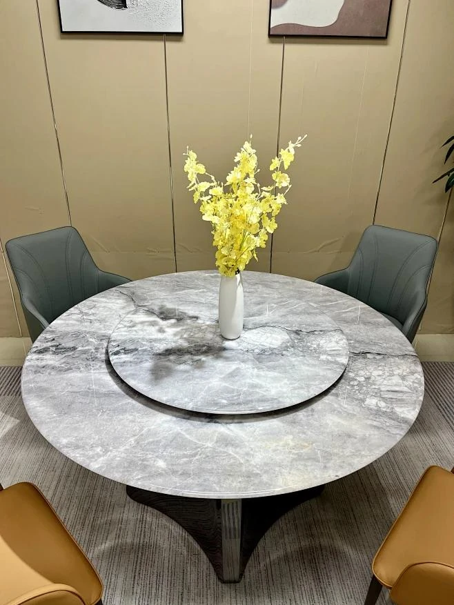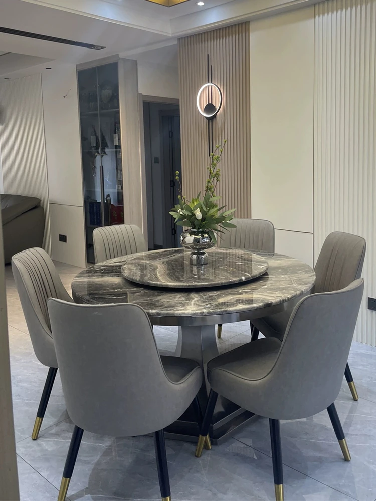 Modern Minimalist Marble Round Dining Table Set with Lazy Susan - Stylish and Functional Large Dining Table and Chairs for Home Use