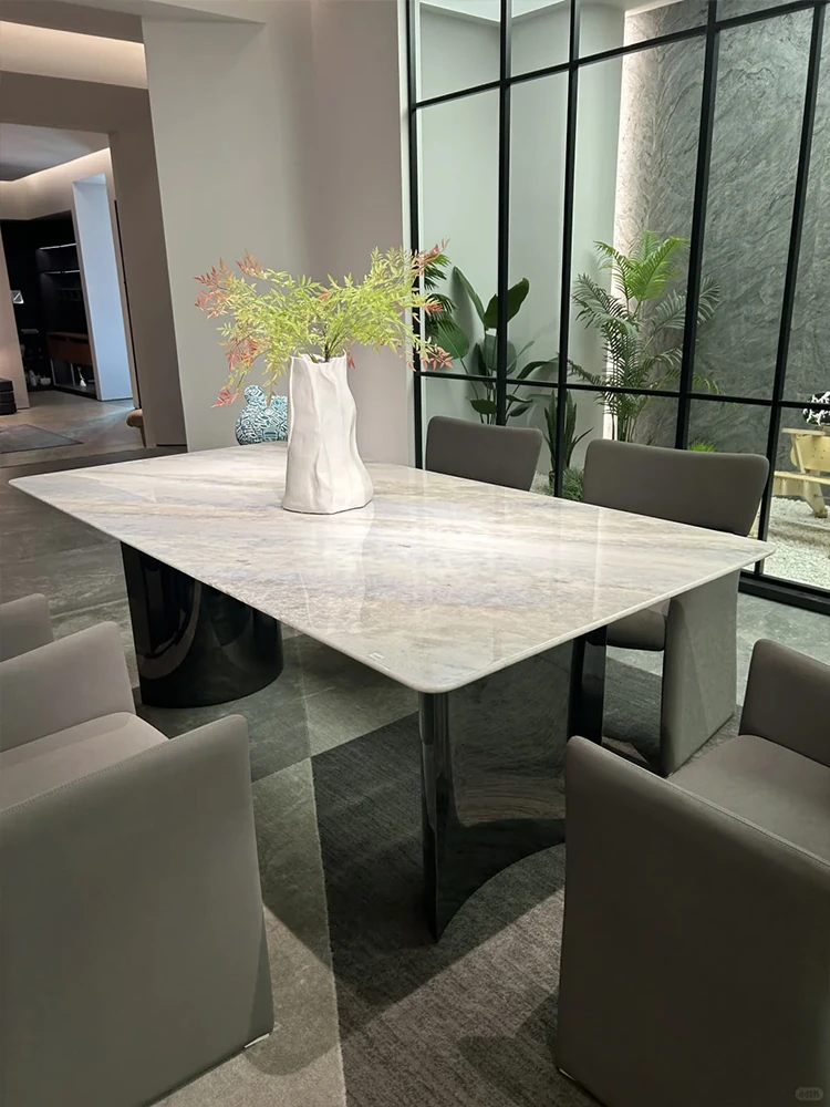 High-End Brazilian Imported Blue Crystal Natural Marble Rectangular Dining Table - Recommended on Xiaohongshu