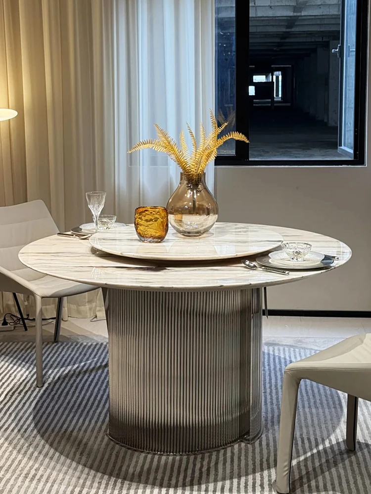 High-End Italian Modern Round Marble Dining Table with Lazy Susan - Perfect for Small Spaces, Elegant Design for Your Home!