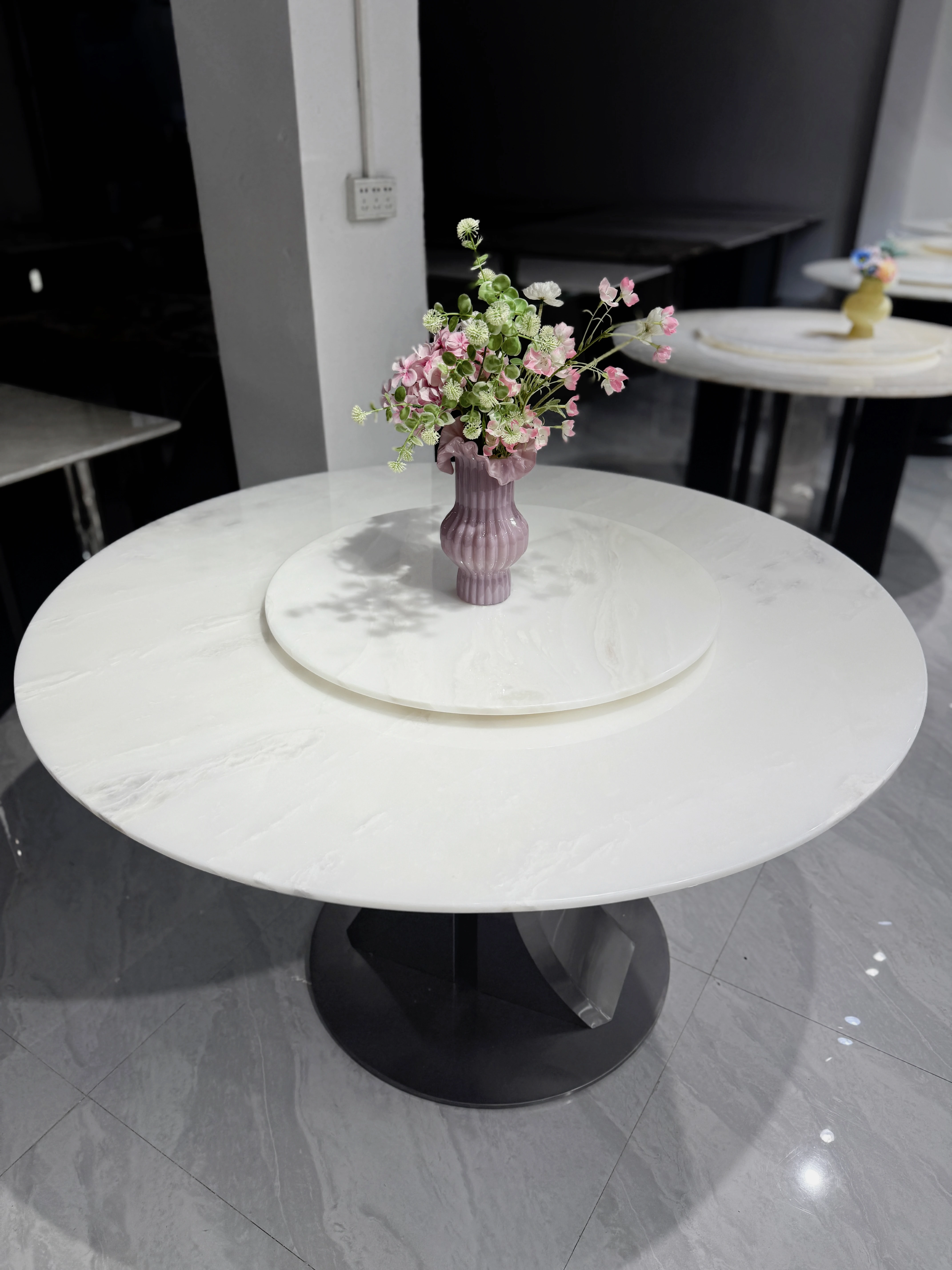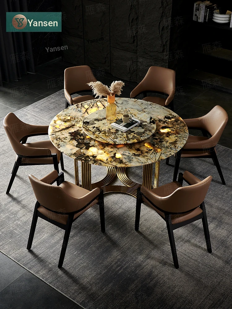 Elegant Marble Dining Table Set with Integrated Rotating Design for Villas - Complete Collection for Dining Rooms