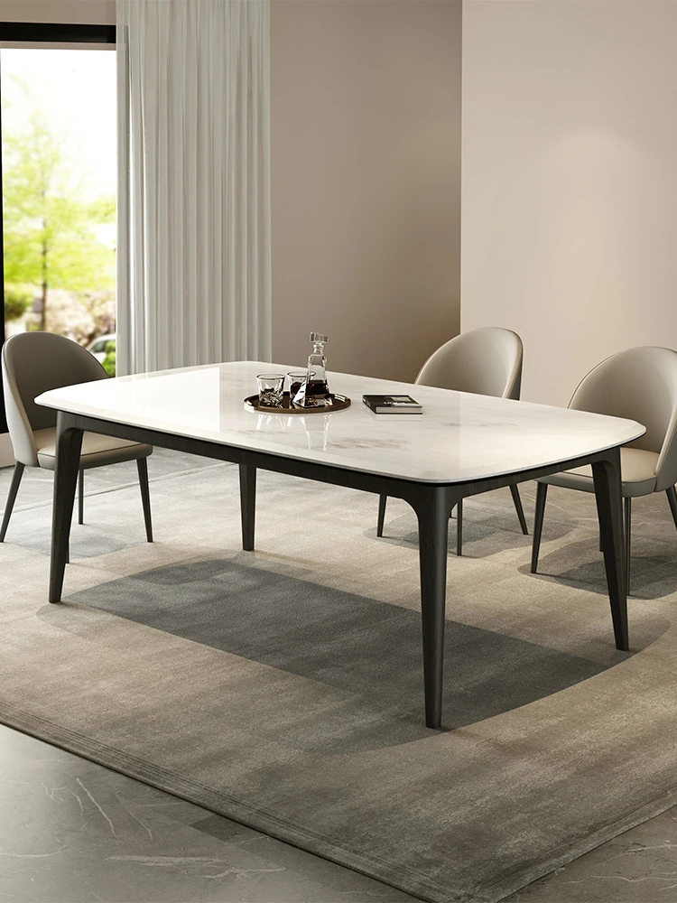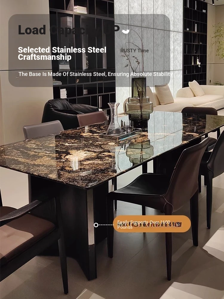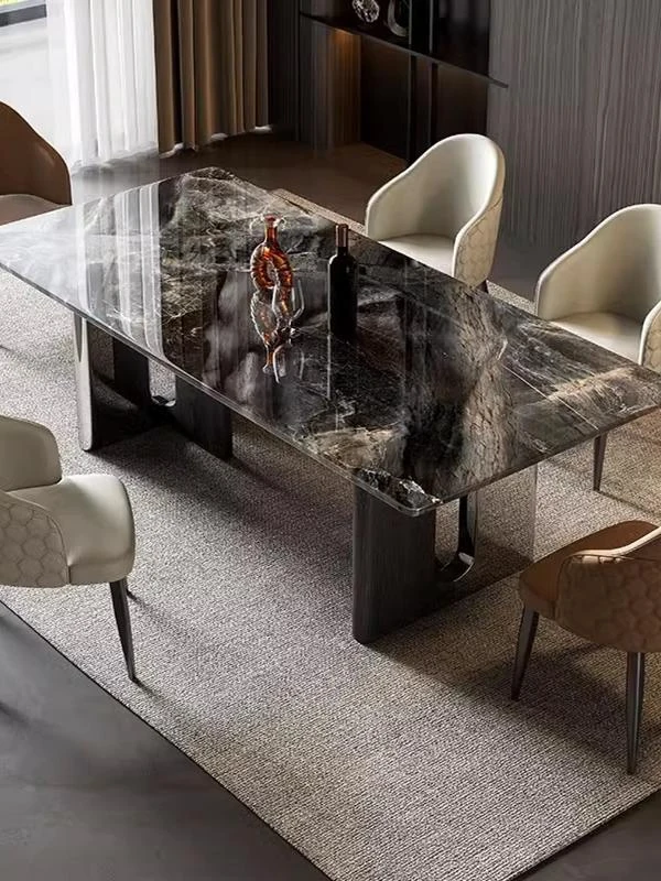 Natural Snow Mountain Flying Fox Luxury Stone Dining Table and Chair Set - Modern Minimalist Light Luxury for Villas, Rectangular Dining Table for Home Use