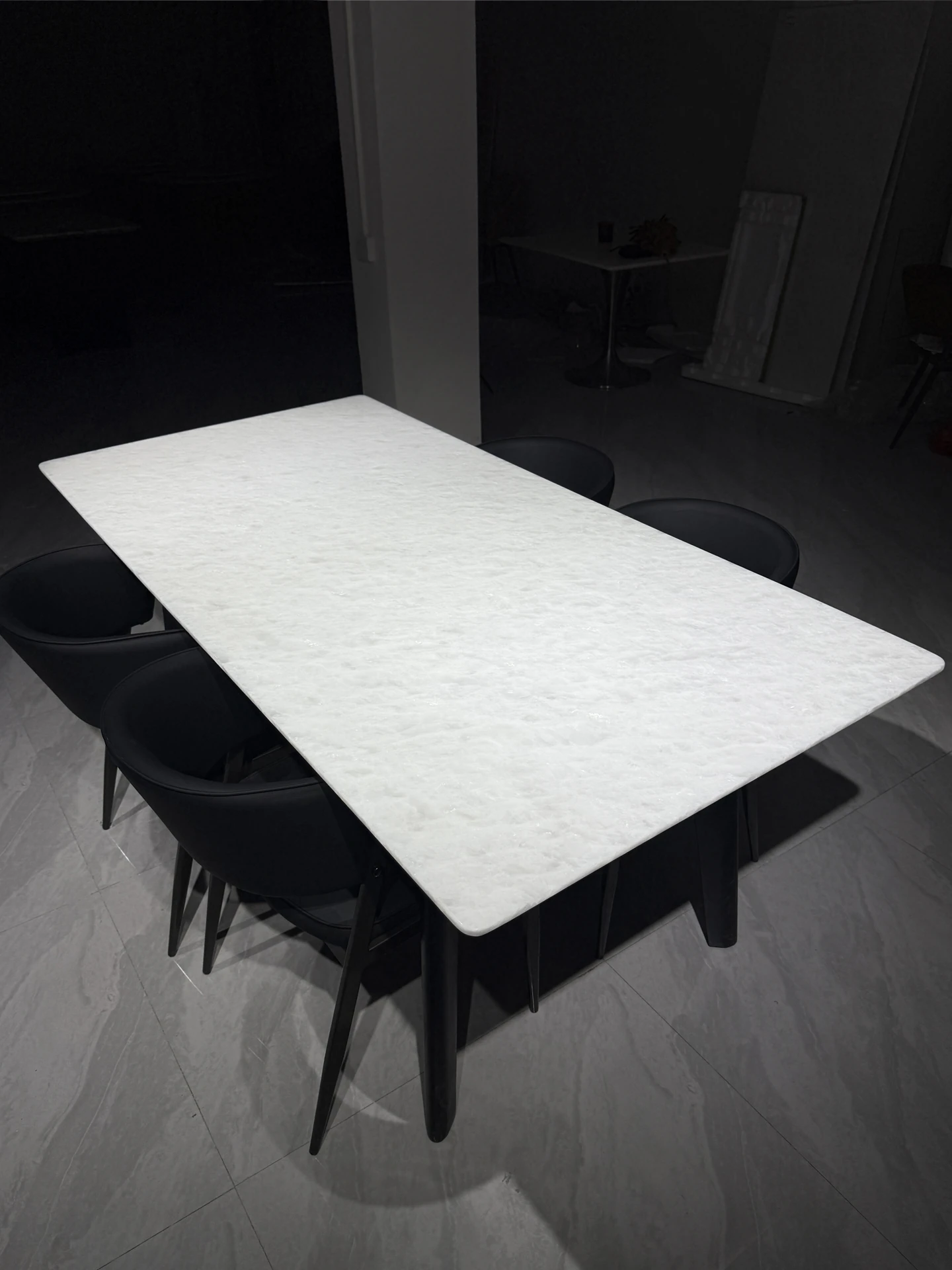 Italian Luxury Pure Natural Ice Crystal White Jade Rectangle Royal Marble Dining Table and Chair Set - Karli Ice Jade Elegance