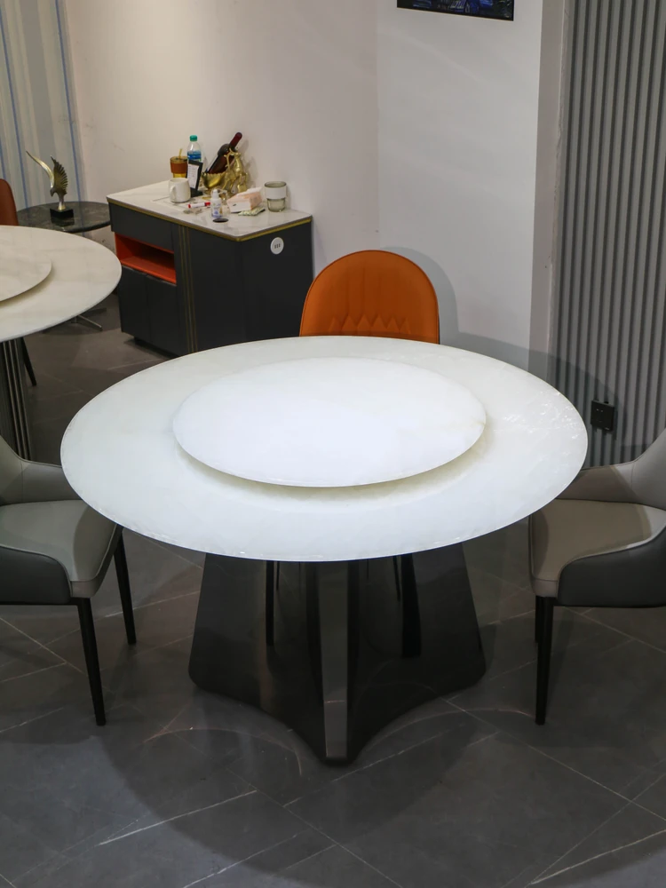 Imported Crystal White Jade Natural Luxury Marble Round Dining Table - Elegant and Modern Design for Home Use - Perfect for Stylish Dining Experiences