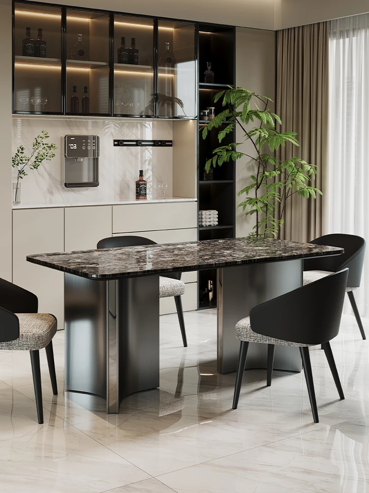 2025 Italian Minimalist Natural Luxury Stone Dining Table and Chair Set - Rectangular Marble Platinum Diamond High-End Villa Dining Table
