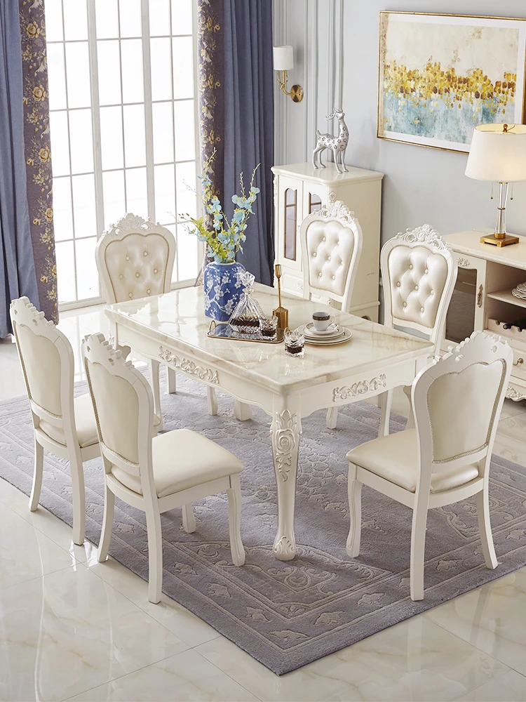 モダンでシンプルな欧風デザインの長方形大理石ダイニングテーブルセット!小型住宅にもぴったりな実木製の食卓。スタイリッシュな空間を演出し、家族や友人との楽しいひとときをお届けします。