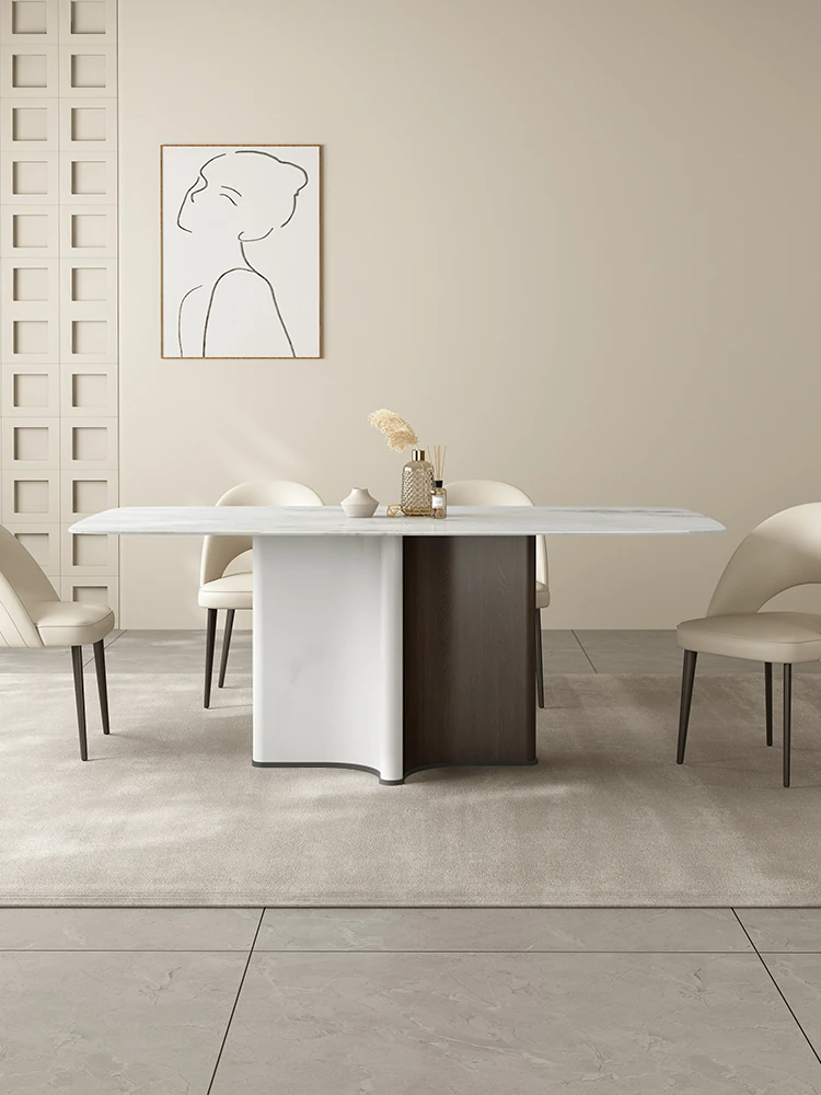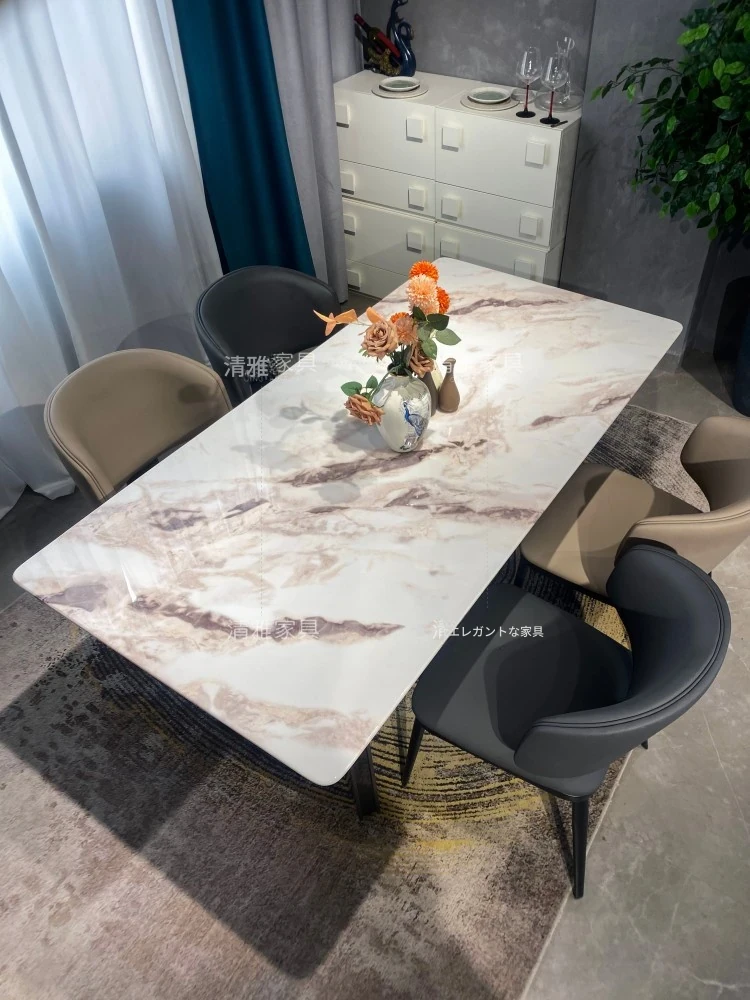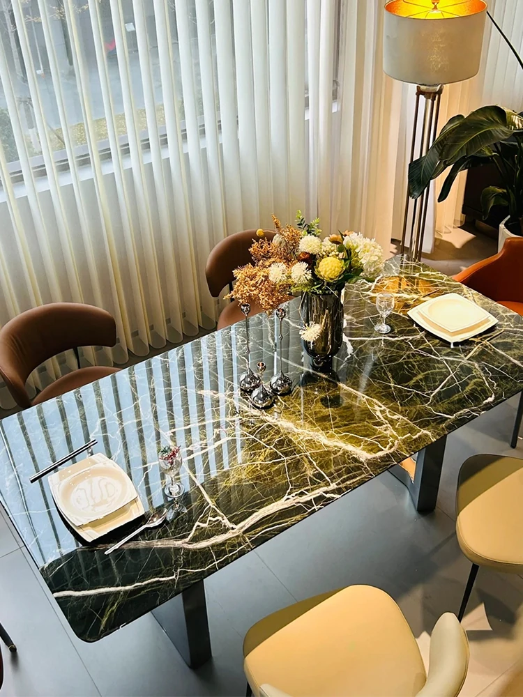 現代的シンプルな天然大理石ダイニングテーブル|ラグジュアリーで洗練されたデザイン|小さな家庭にもぴったりな長方形テーブル|高級感あふれるおしゃれな食卓を演出!