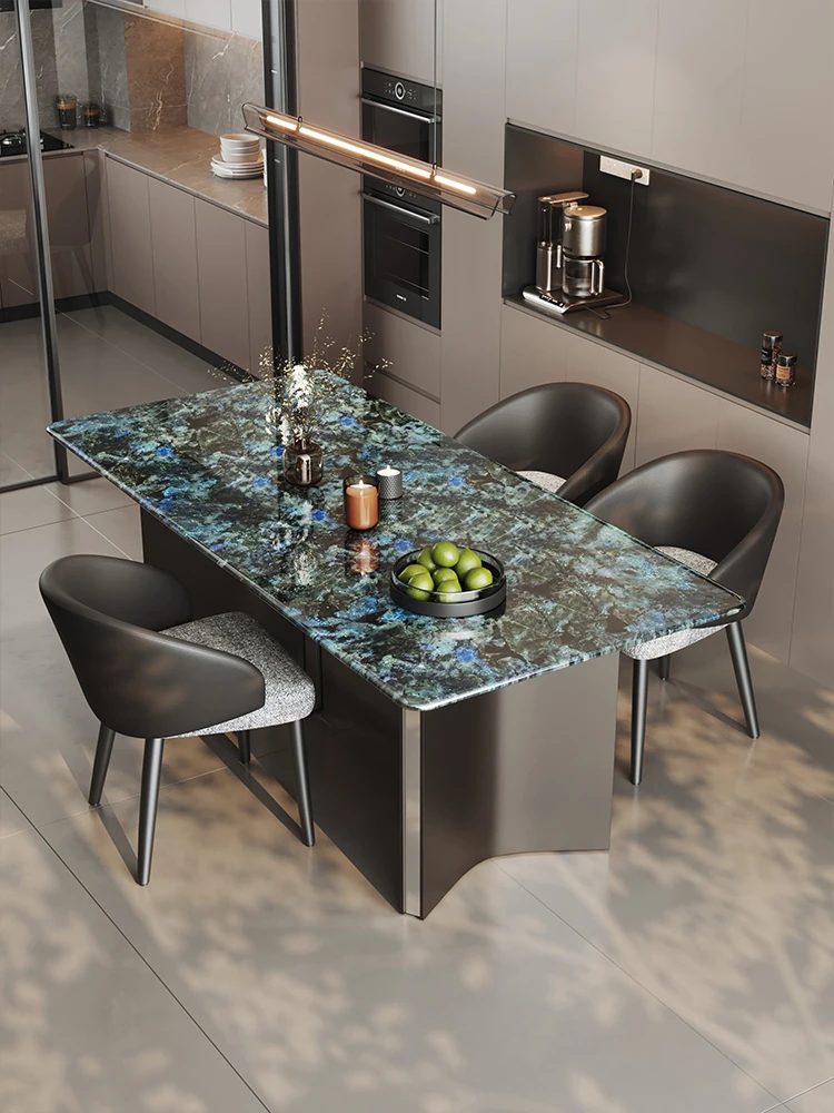 COSICA天然国産大理石ブルージェイド高級家庭用ダイニングテーブル、ラグジュアリーなデザイン、別荘スタイルのコンビネーションテーブルで、優雅な食事空間を演出!