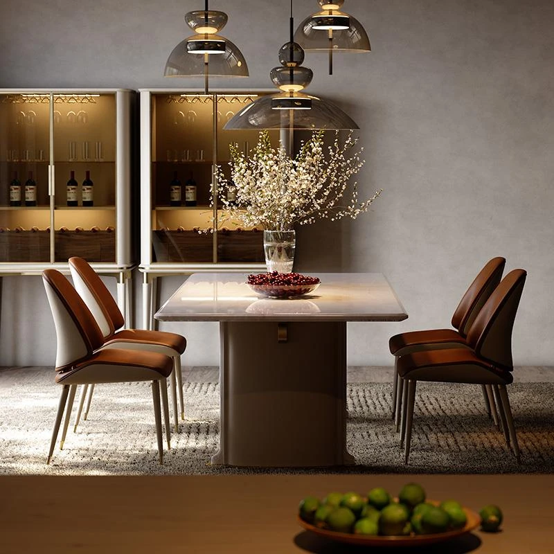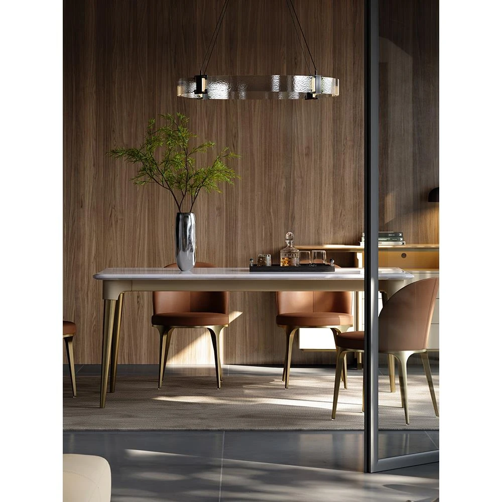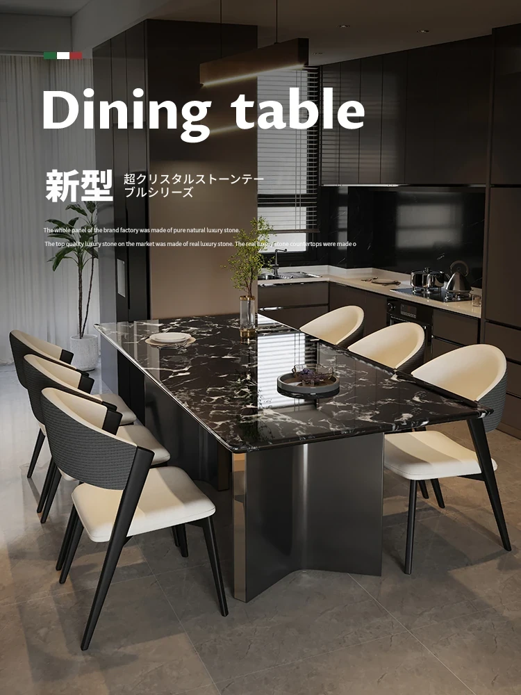 デザイン全案実現!軽やかなラグジュアリー感の現代的な天然大理石ダイニングテーブル。新しいデザインで、広々とした住まいにぴったりの家庭用食卓。スタイリッシュな空間を演出し、食事の時間を特別なものにします。